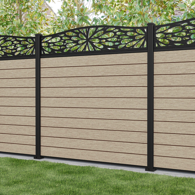 Fusion Blossom Curved Top Fence Panel Light Oak - with our aluminium posts