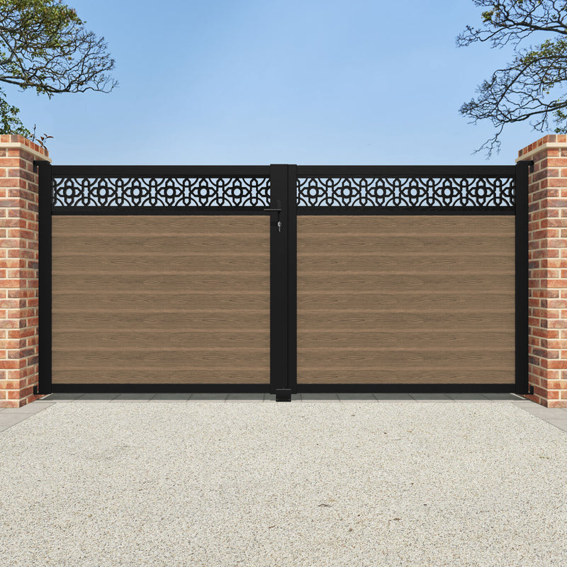 Classic Nabila Straight Top Driveway Gate Teak - Top Screen
