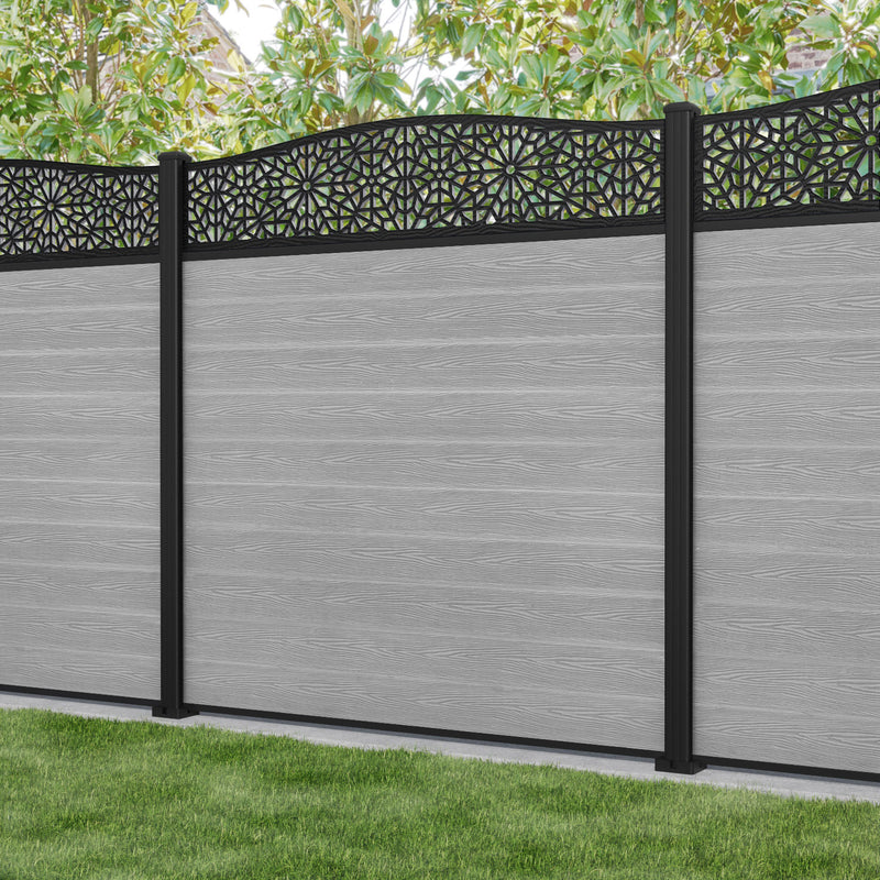 Classic Alnara Curved Top Fence Panel Light Grey - with our aluminium posts
