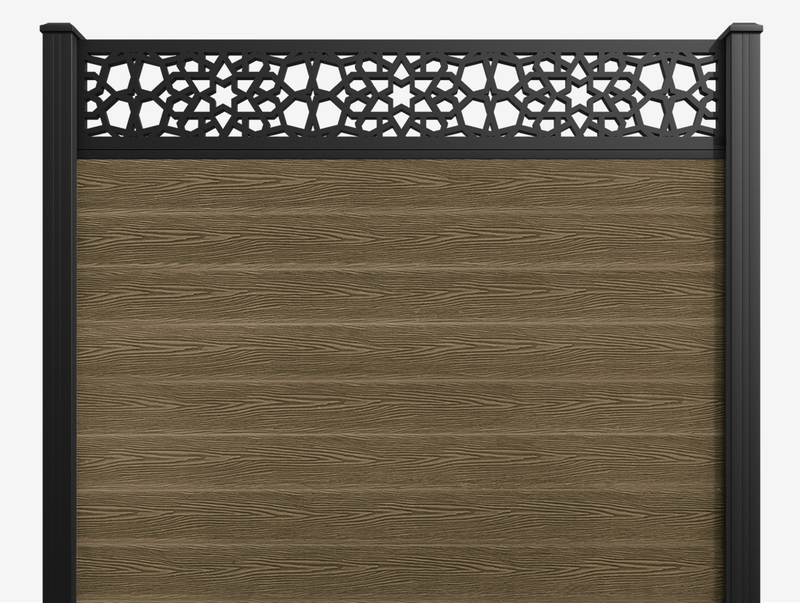 Classic Nazira Fence Panel Dark Oak - with our aluminium posts