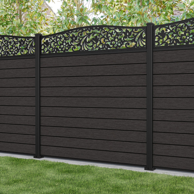 Fusion Eden Curved Top Fence Panel Dark Oak - with our aluminium posts