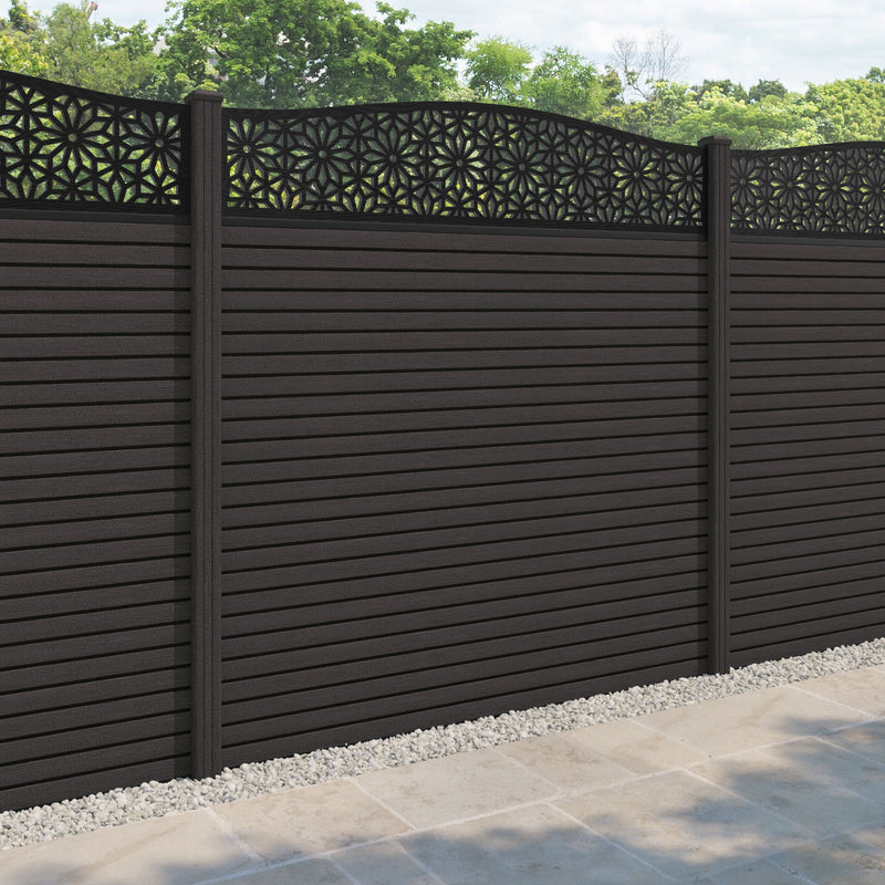 Hudson Narwa Curved Top Fence Panel Dark Oak - with our composite posts