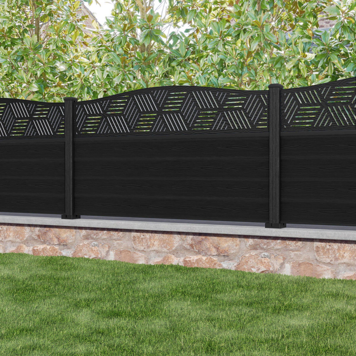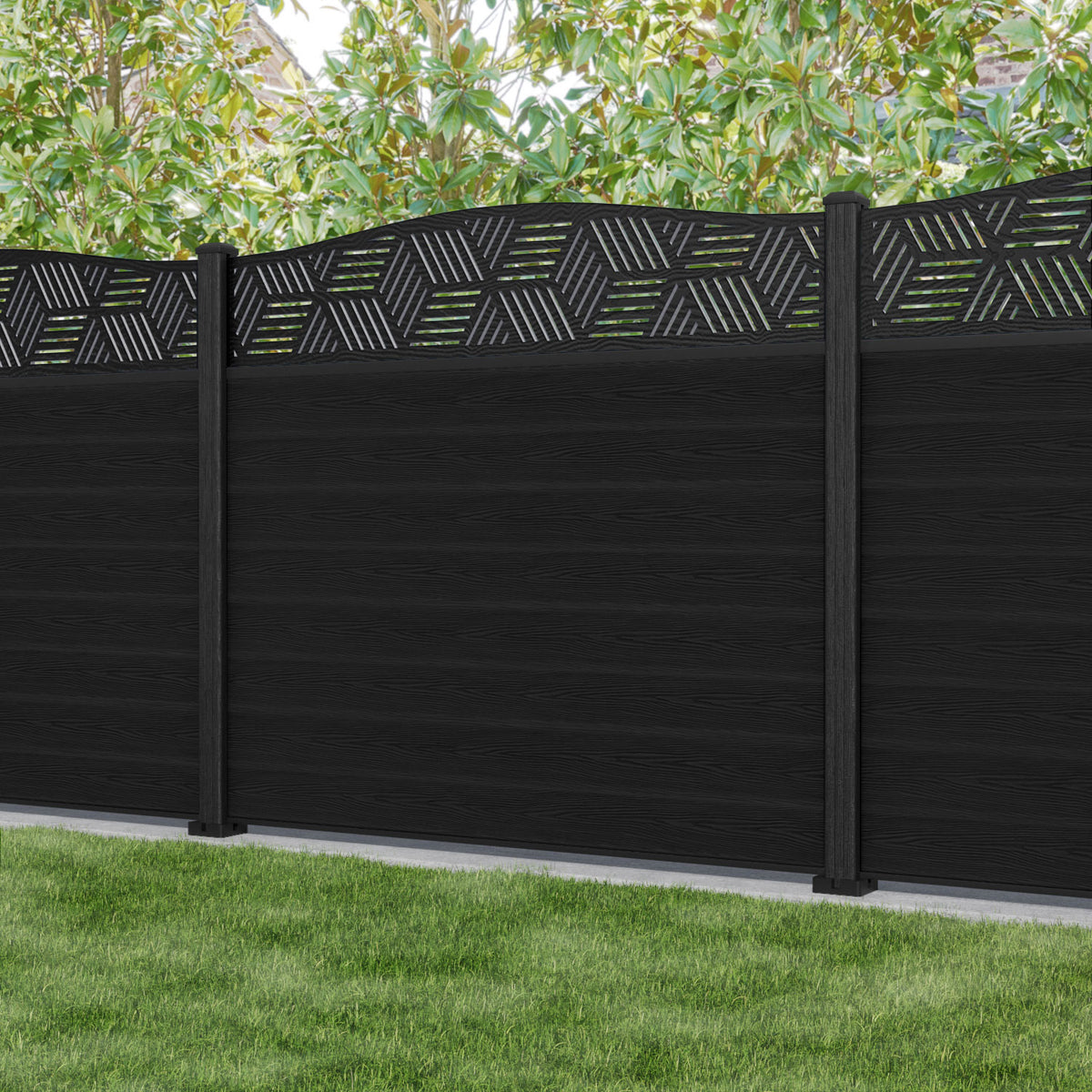 Classic Cubed Curved Top Fence Panel Black - with our composite posts