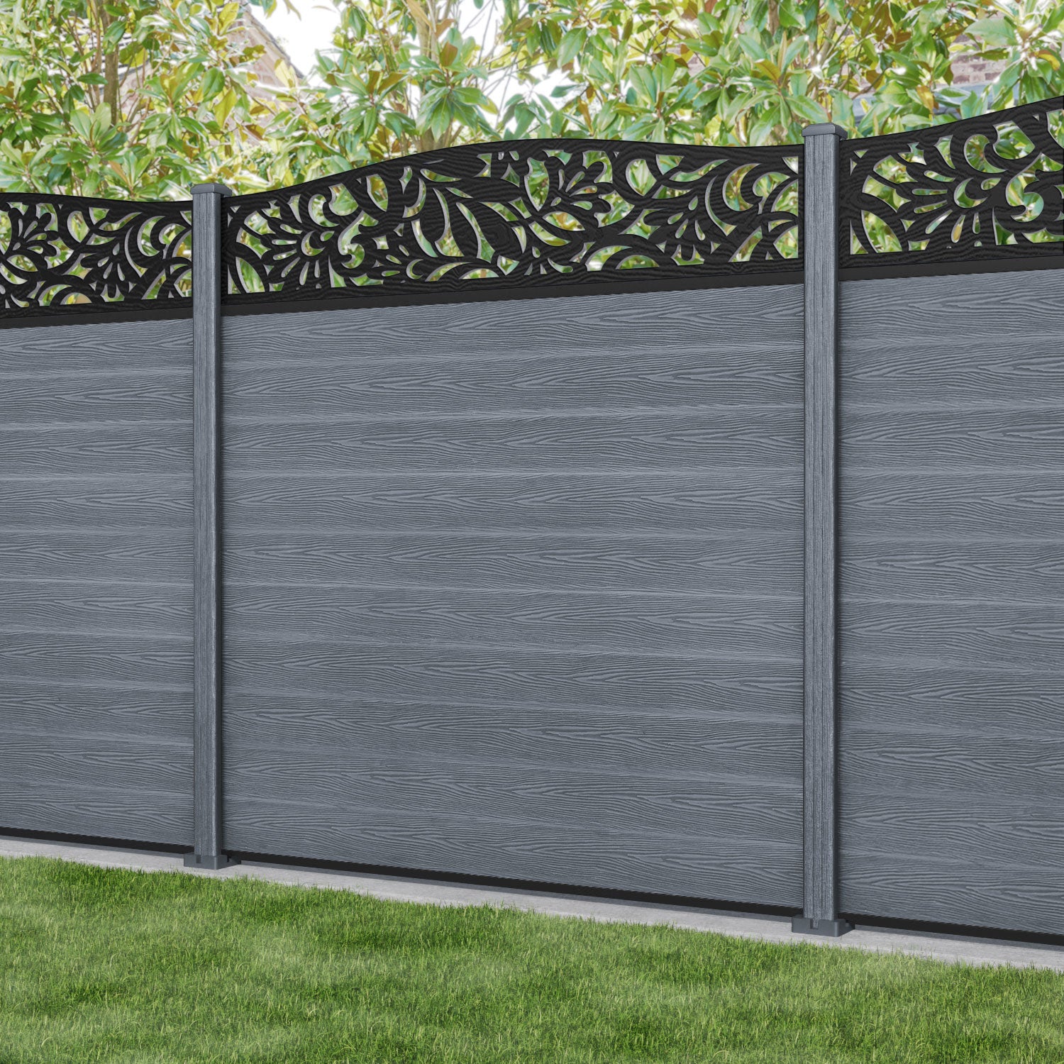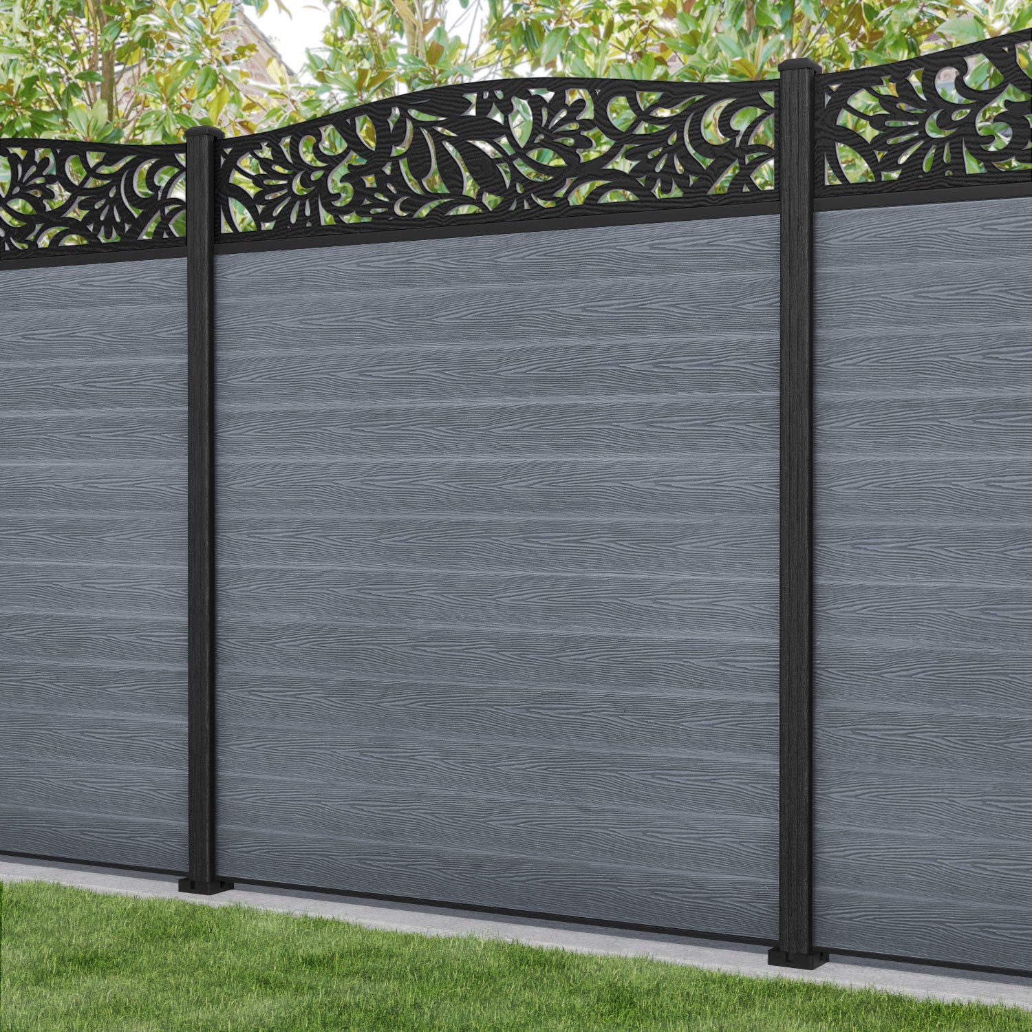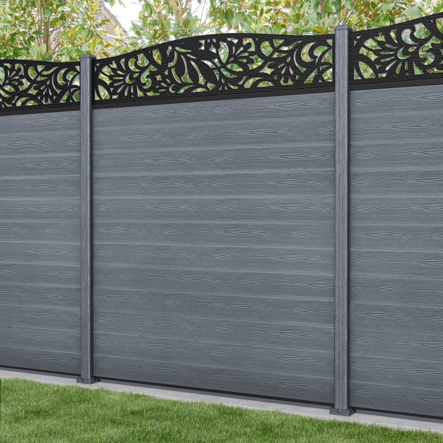 Classic Heritage Curved Top Fence Panel - Anthracite - with our composite posts