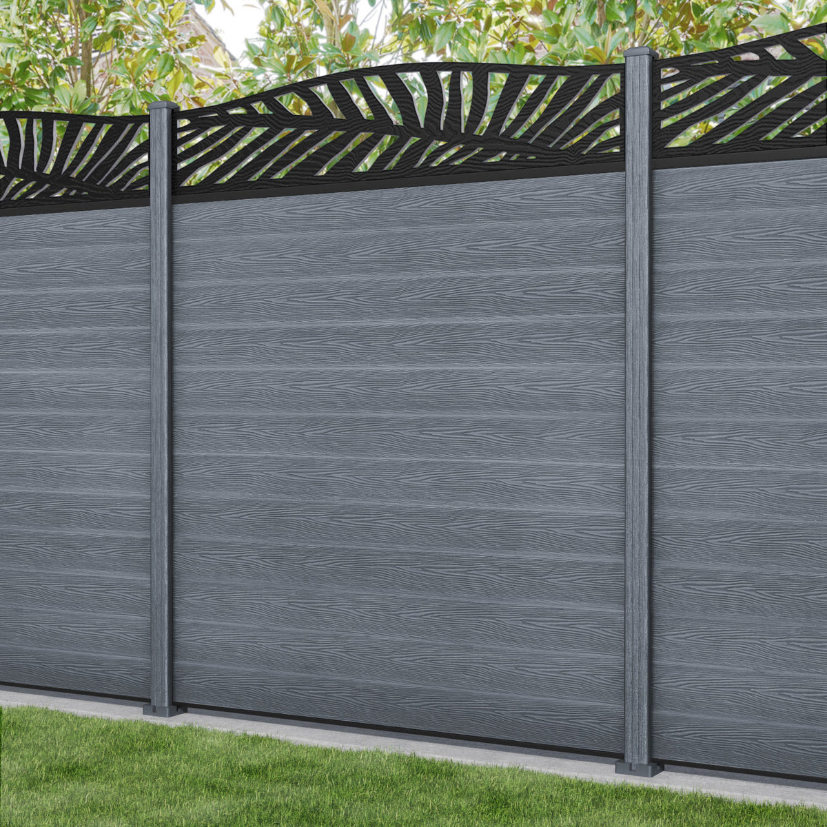 Classic Palm Curved Top Fence Panel Anthracite - with our composite posts