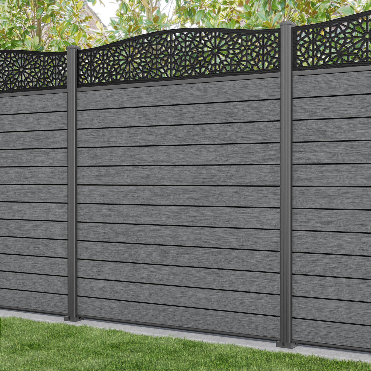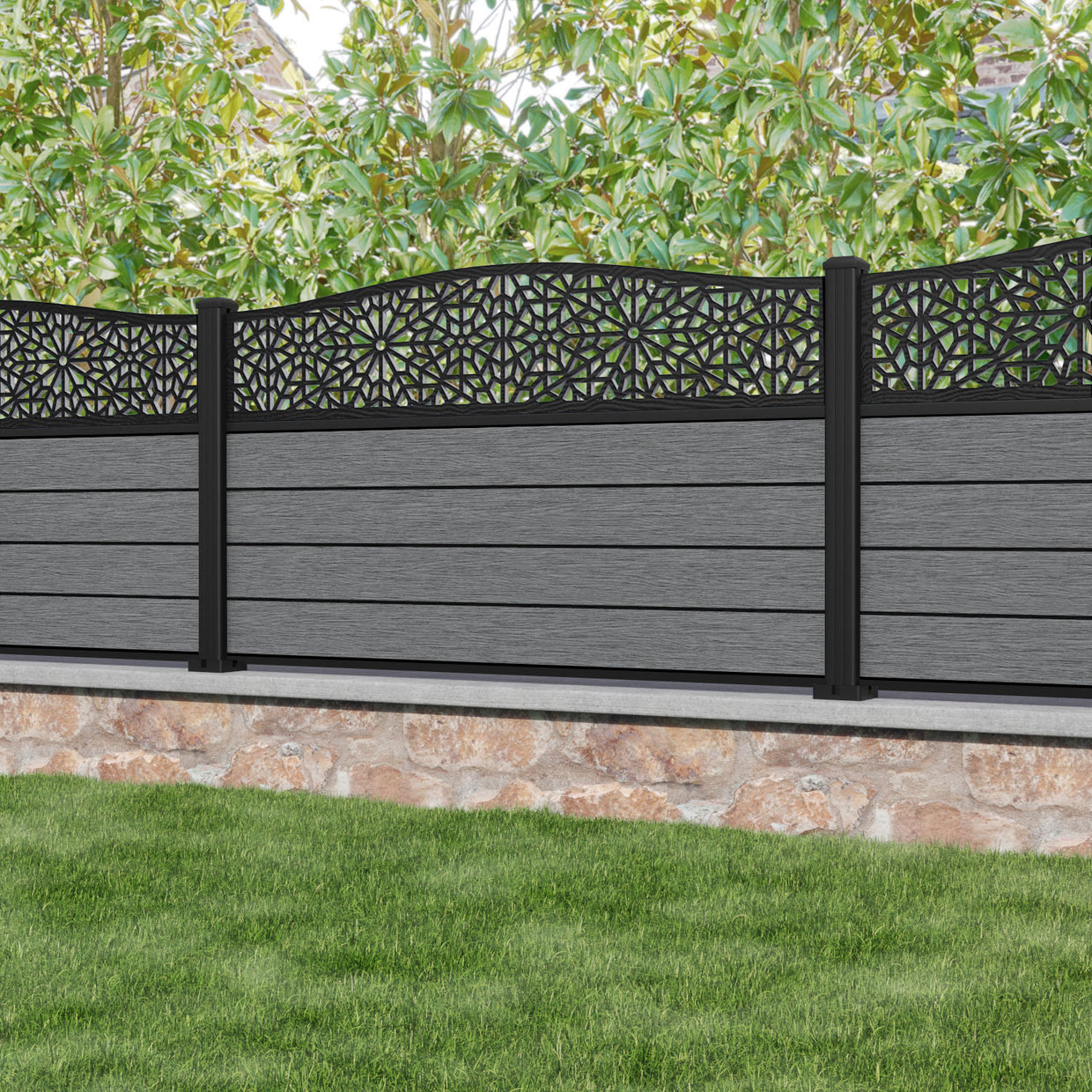 Fusion Alnara Curved Top Fence Panel Mid Grey - with our aluminium posts