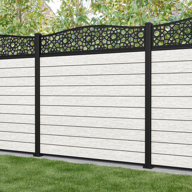 Fusion Ambar Curved Top Fence Panel Light Stone - with our aluminium posts