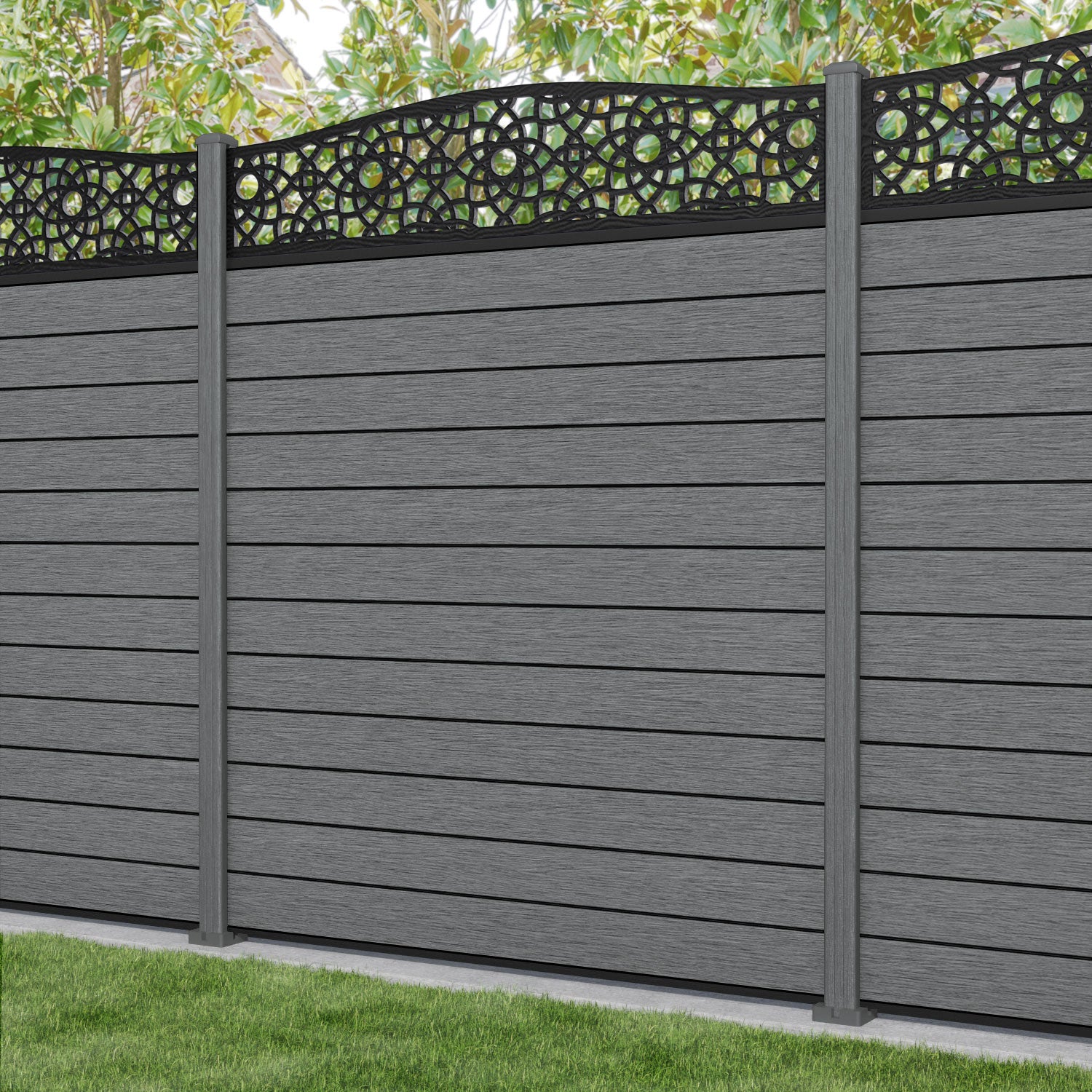 Fusion Ambar Curved Top Fence Panel Mid Grey - with our composite posts