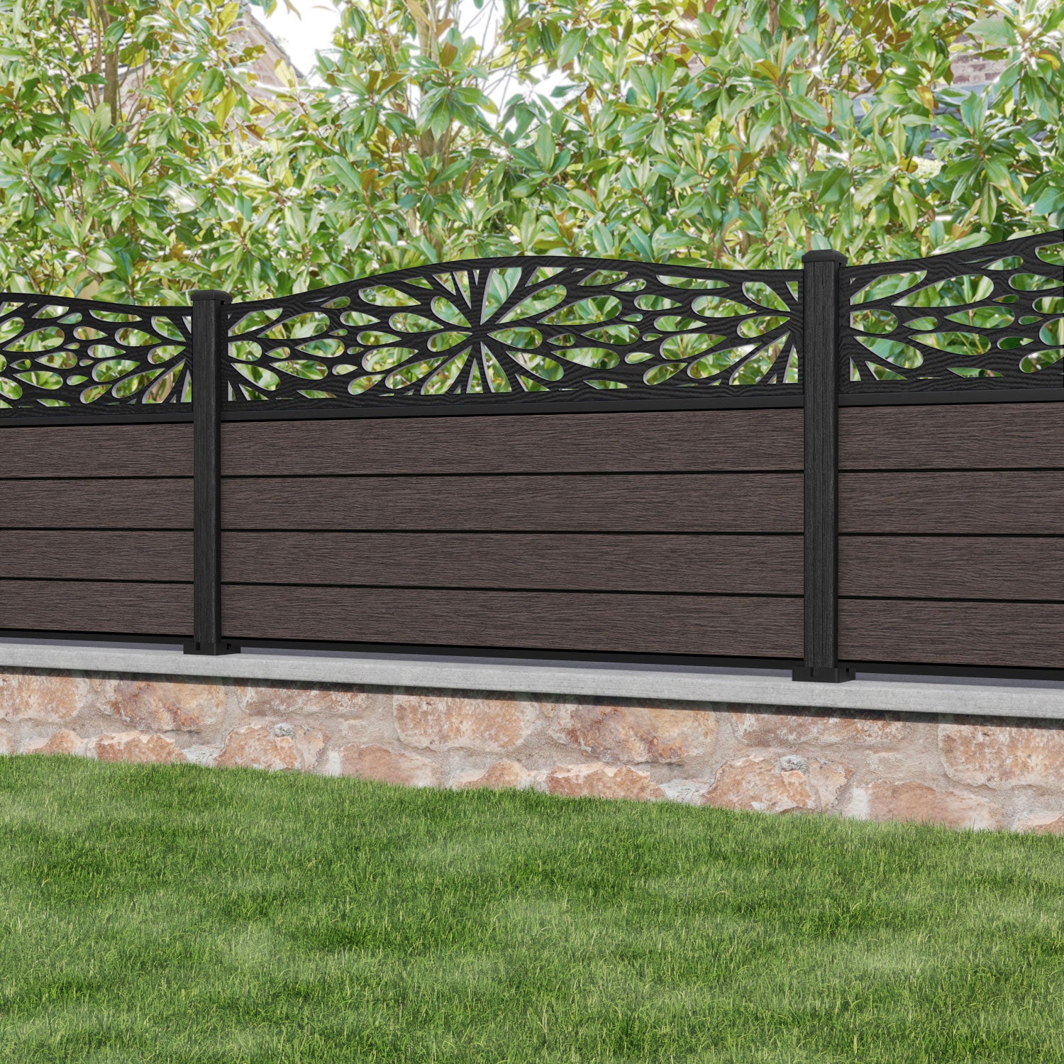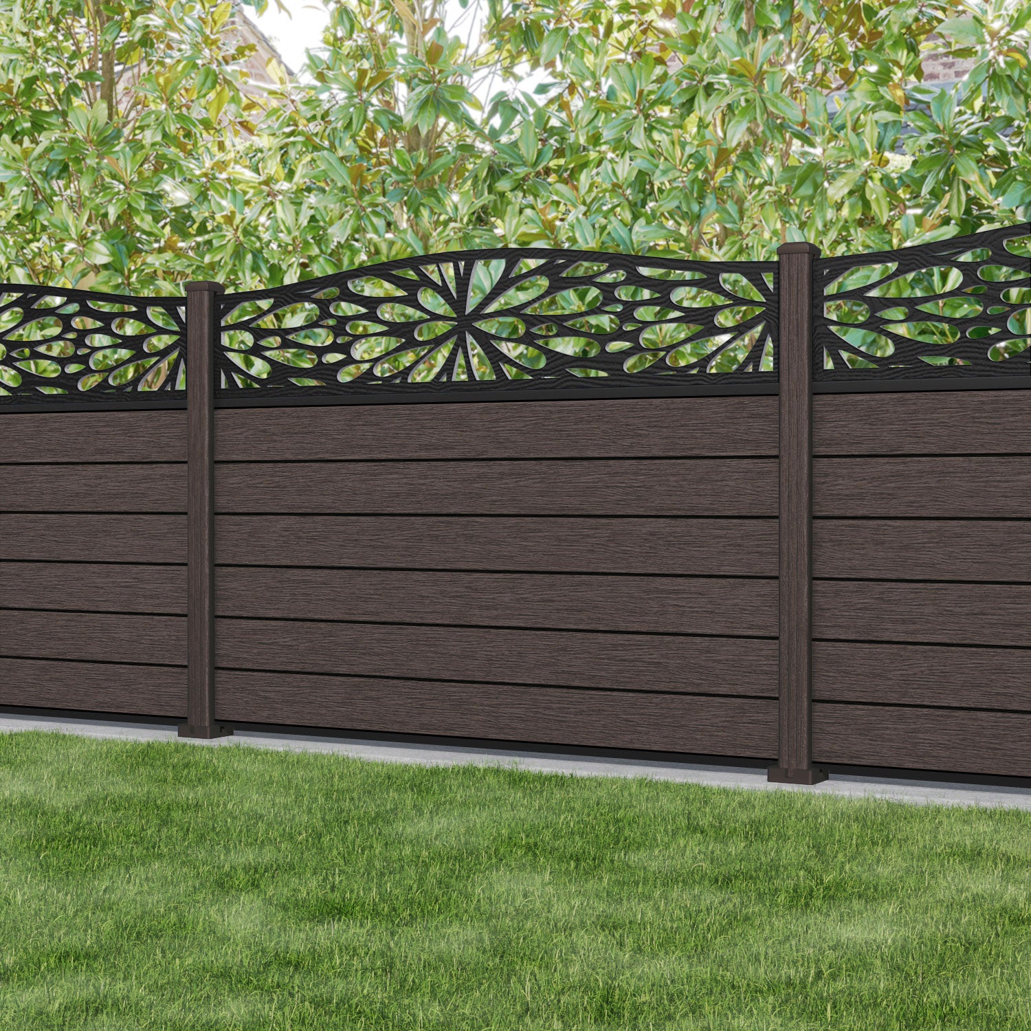 Fusion Blossom Curved Top Fence Panel Mid Brown - with our composite posts