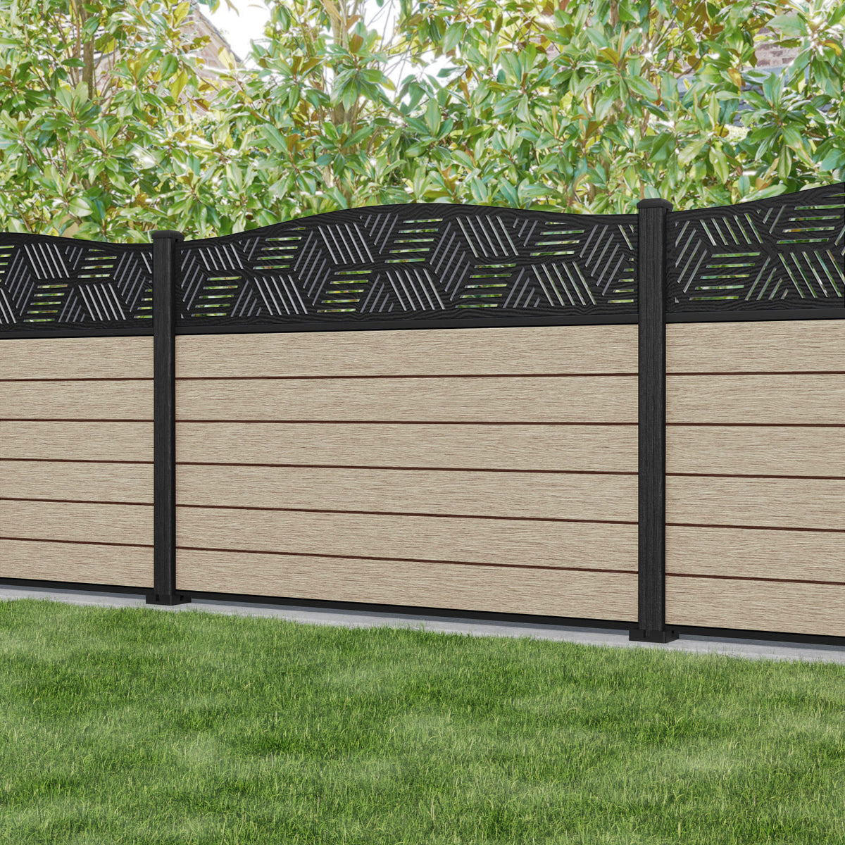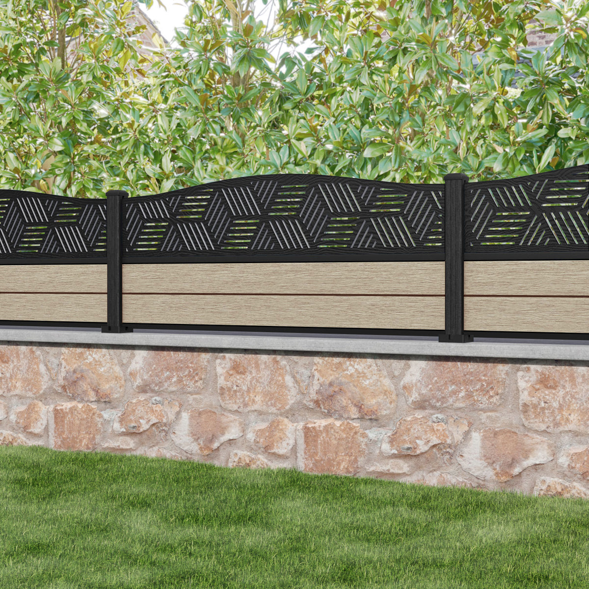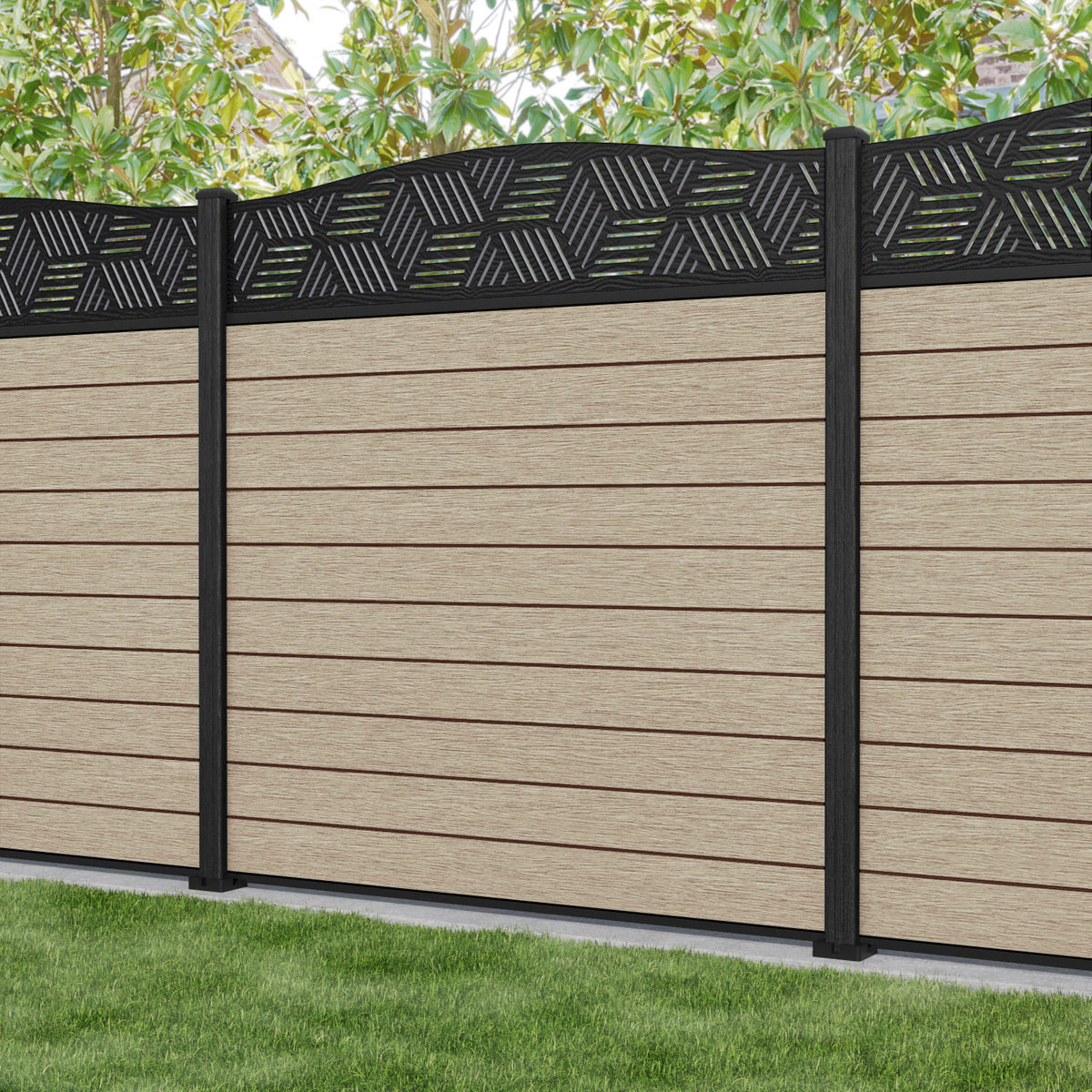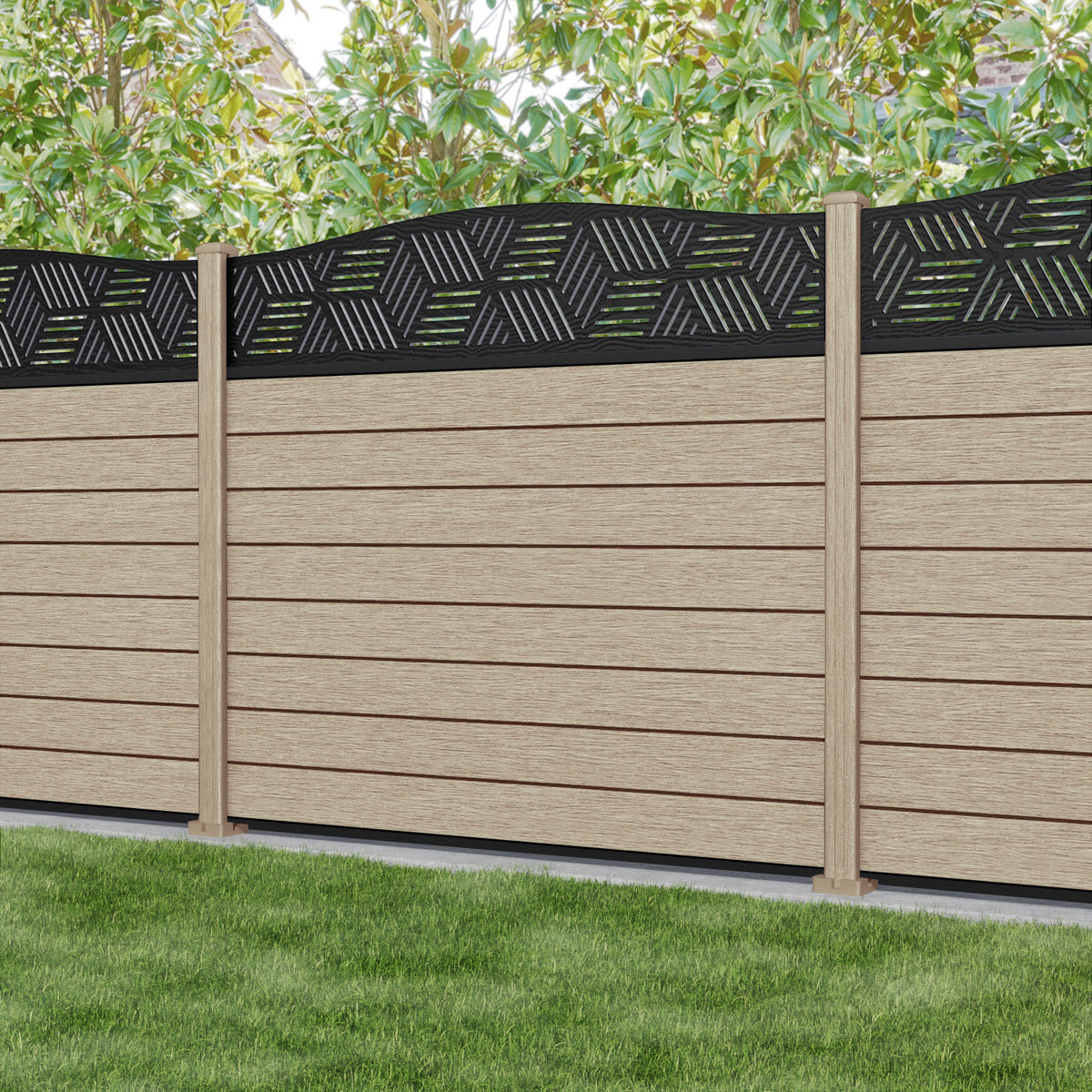 Fusion Cubed Curved Top Fence Panel Light Oak - with our composite posts