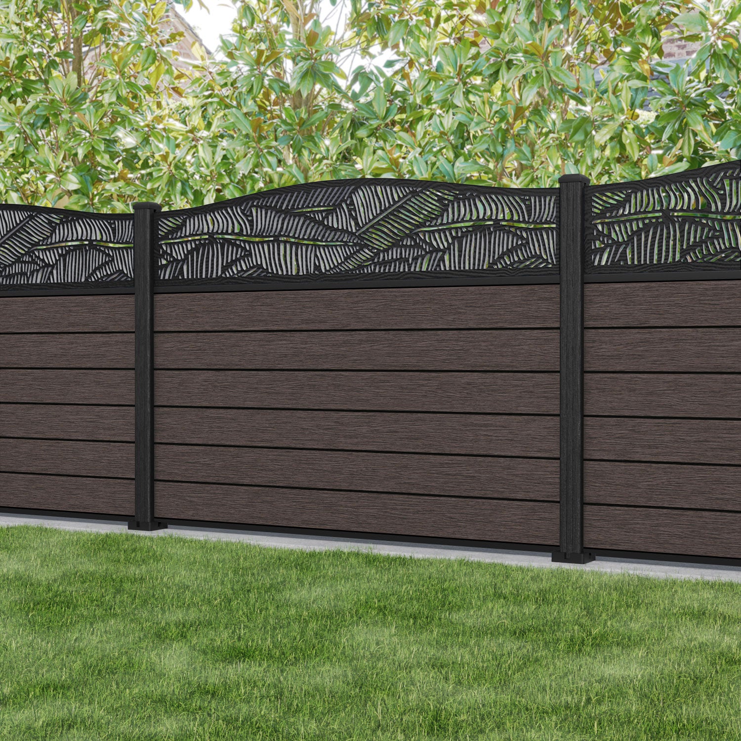 Fusion Feather Curved Top Fence Panel Mid Brown - with our composite posts