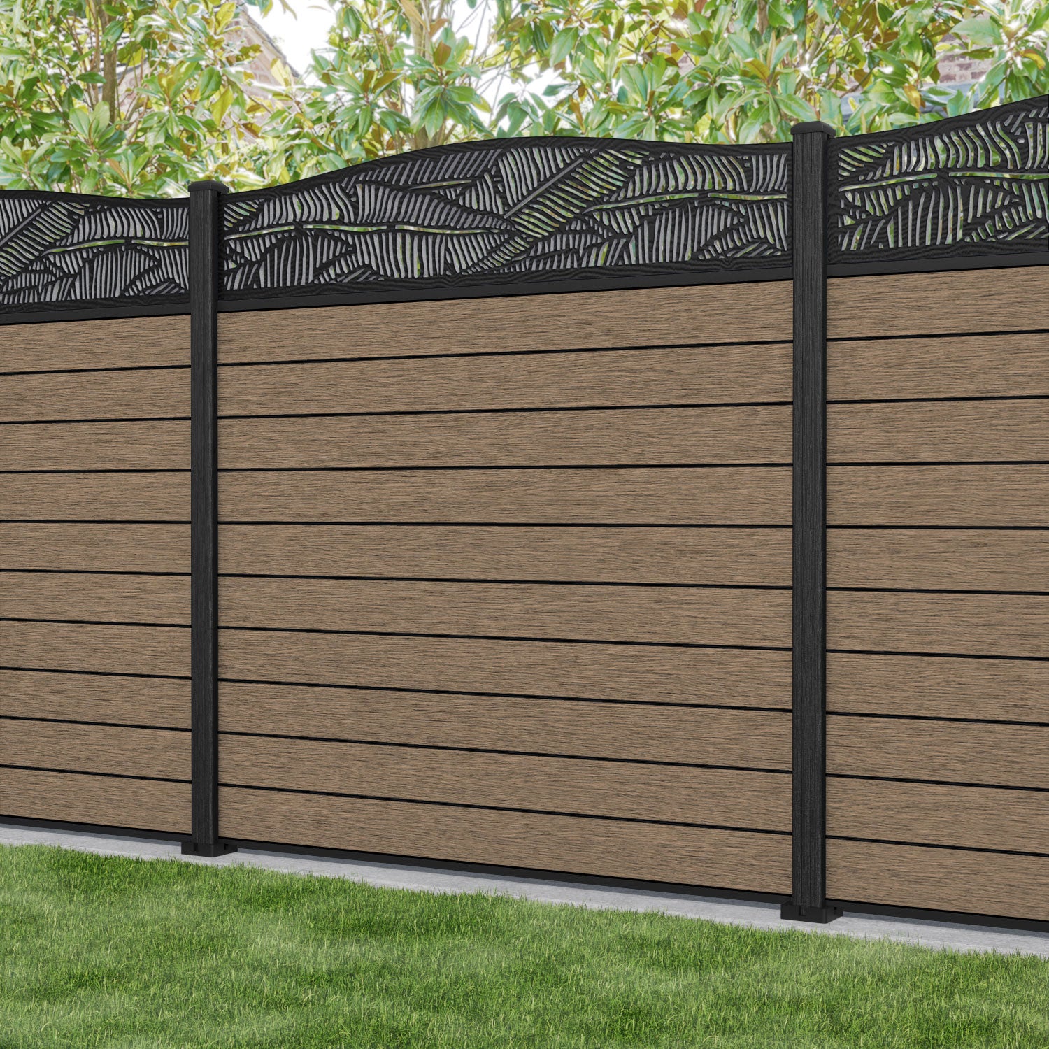 Fusion Feather Curved Top Fence Panel Teak - with our composite posts