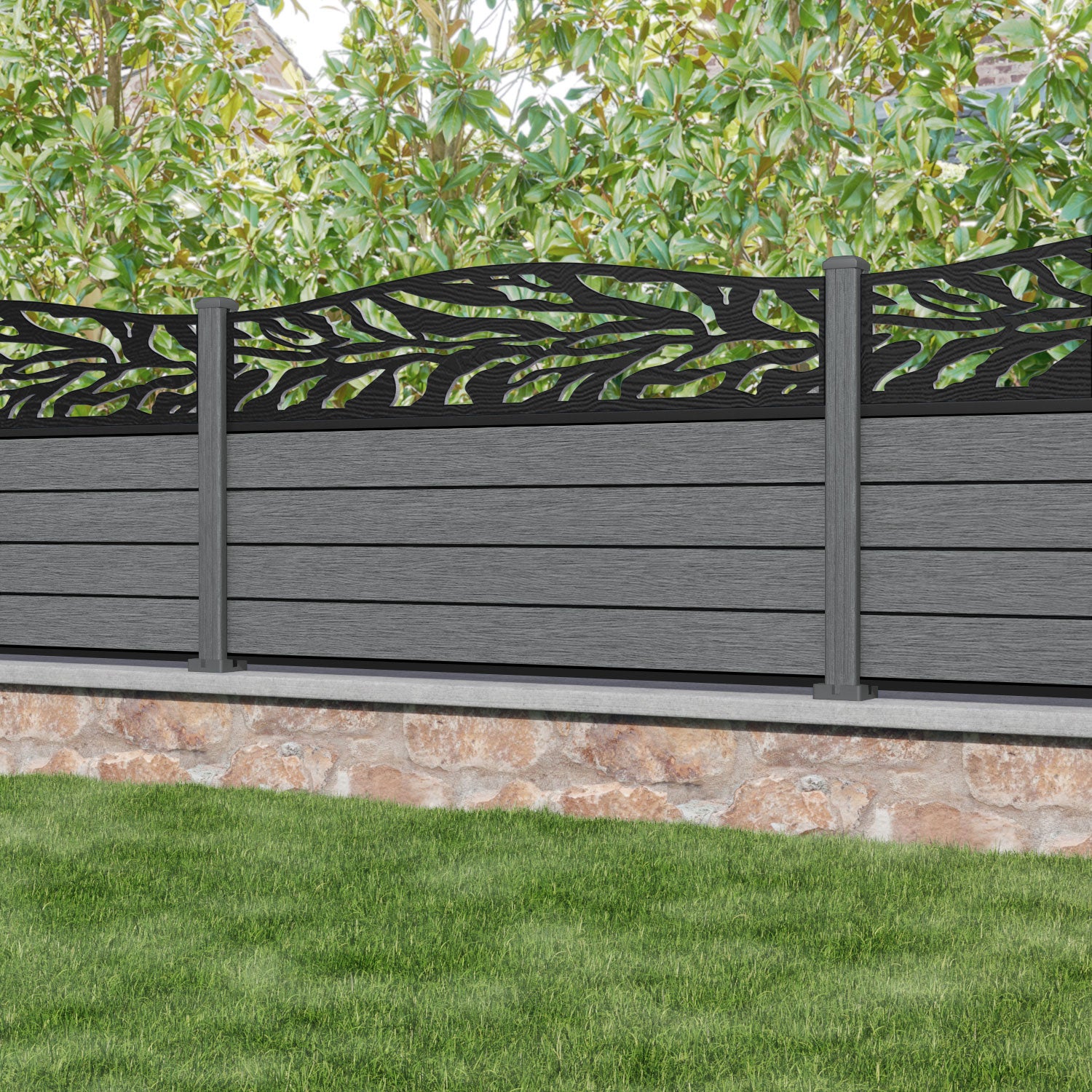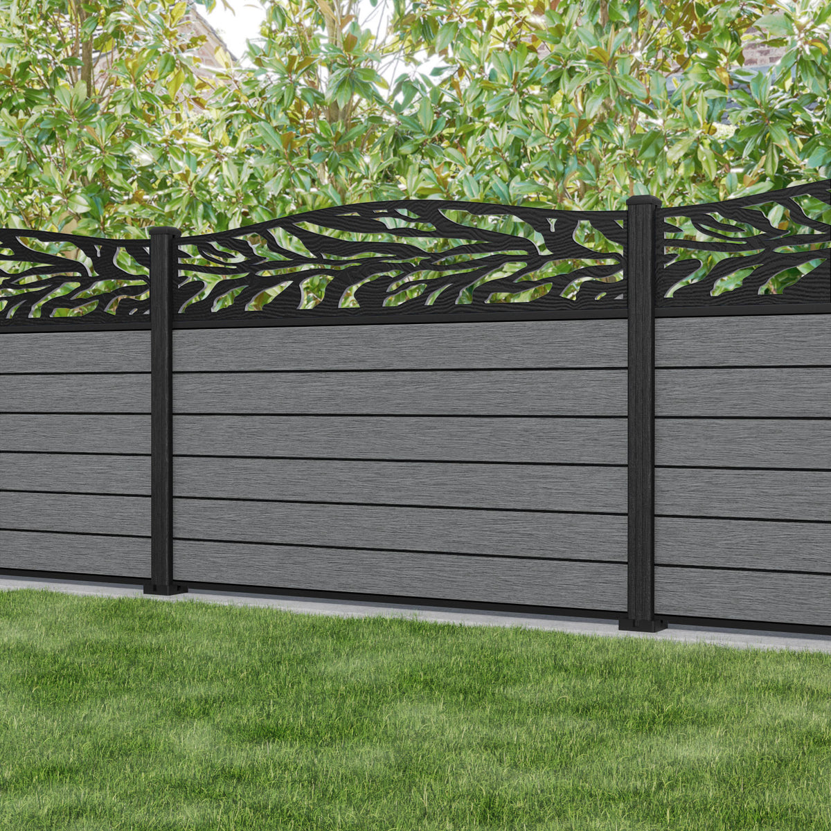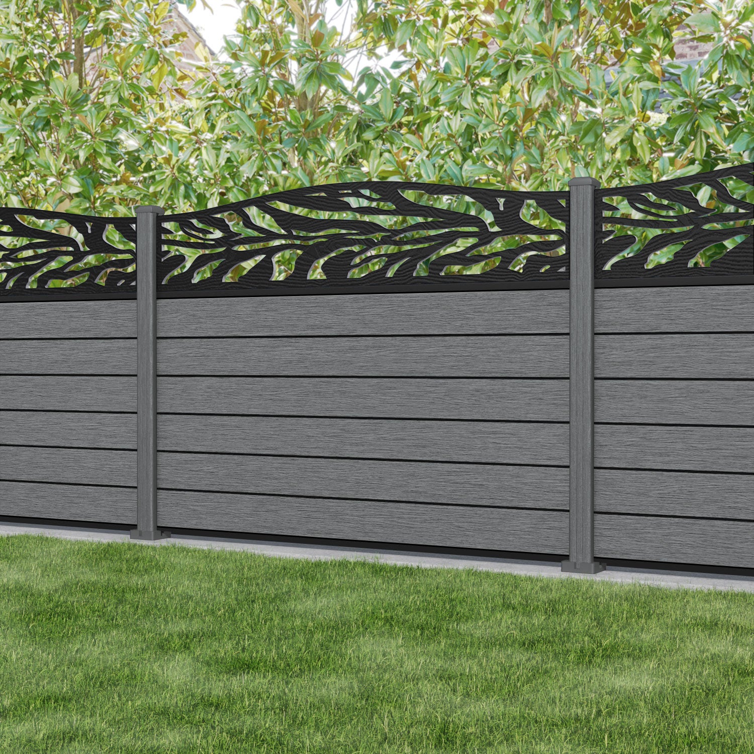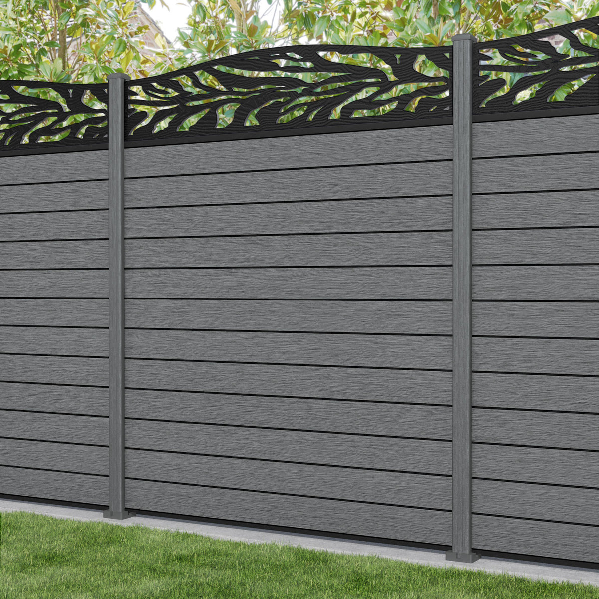 Fusion Malawi Curved Top Fence Panel Mid Grey - with our composite posts
