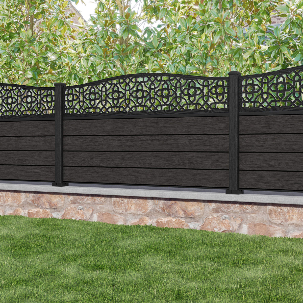 Reference: Fusion Nabila Curved Top Fence Panel - Dark Oak - with our composite posts