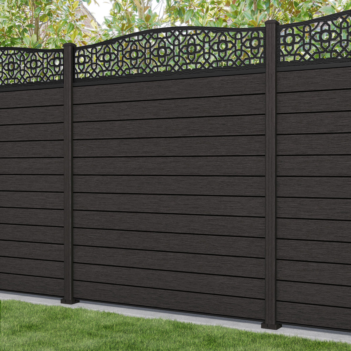 Fusion Nabila Curved Top Fence Panel - Dark Oak - with our composite posts