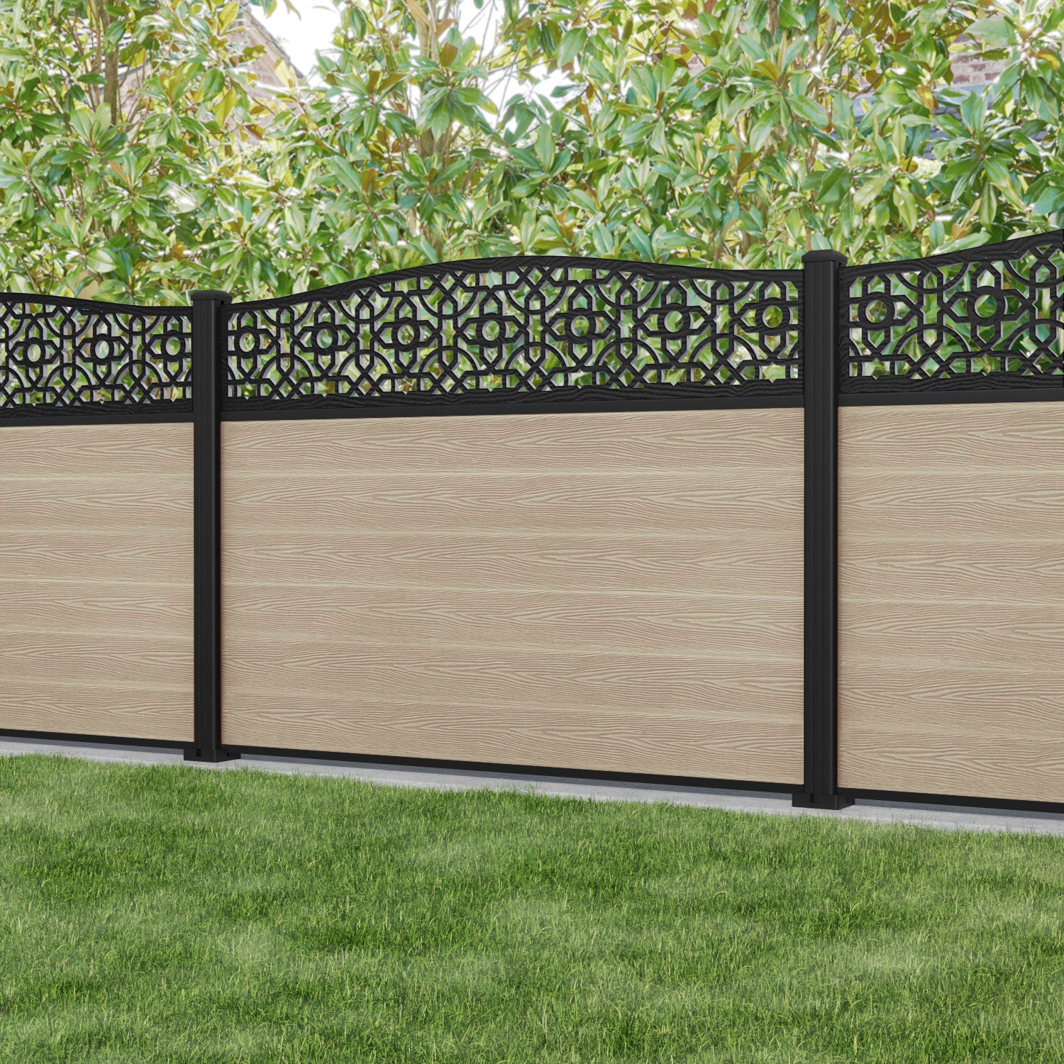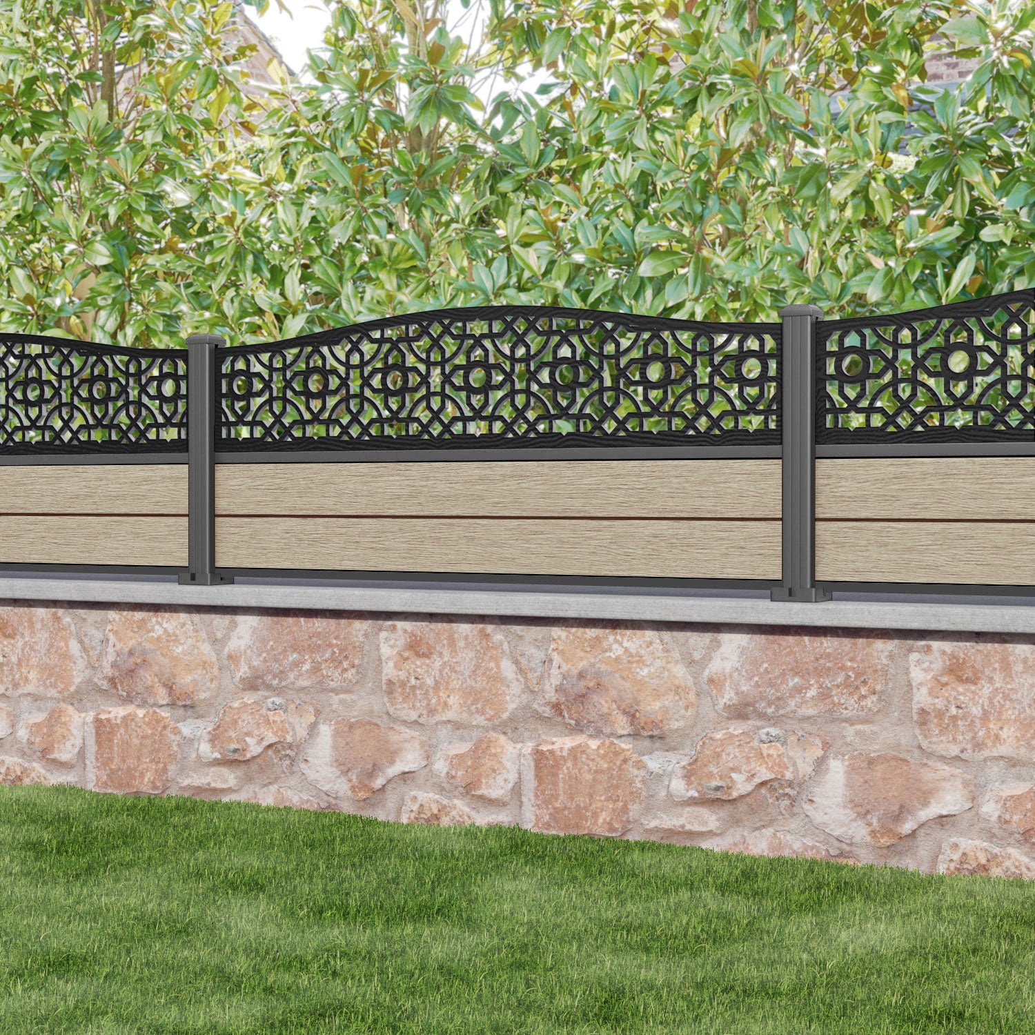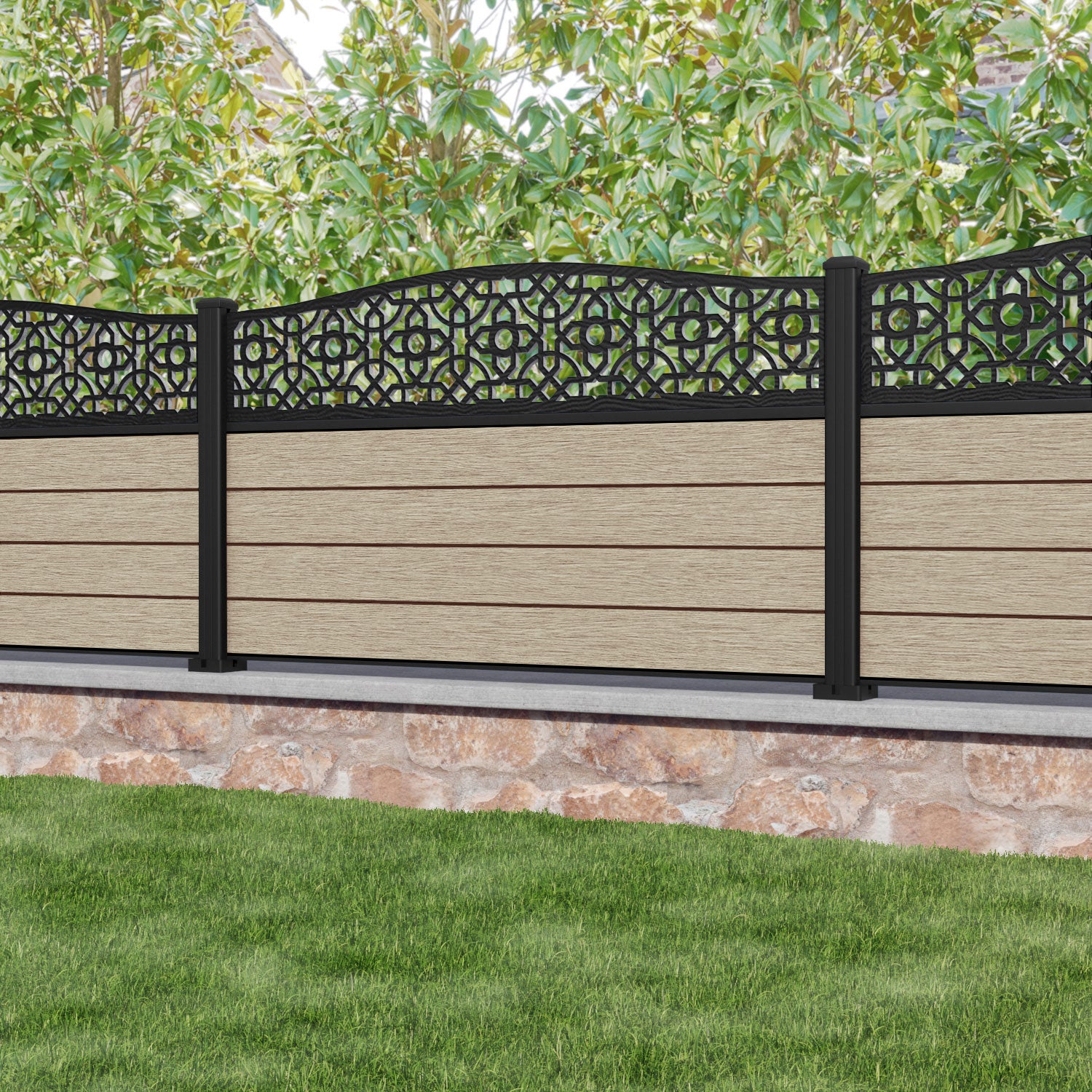 Fusion Nabila Curved Top Fence Panel Light Oak - with our aluminium posts