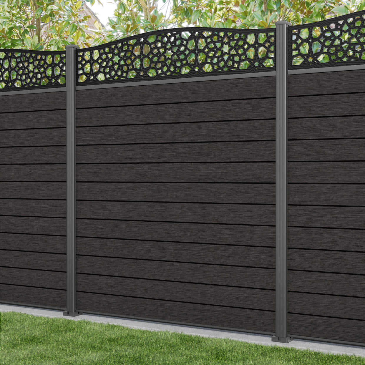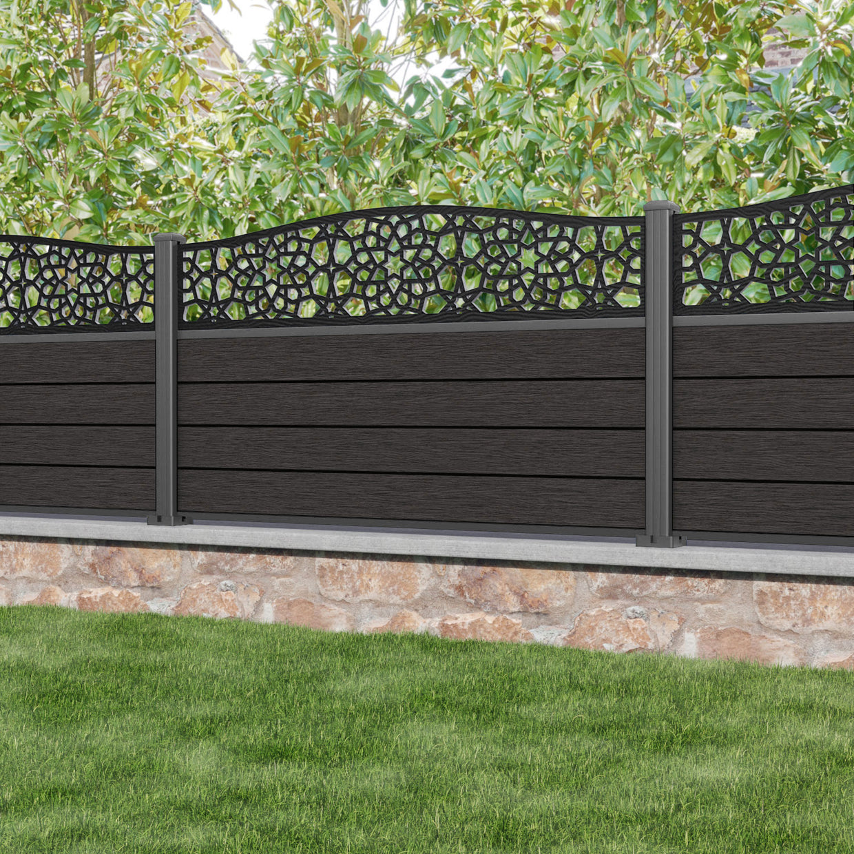 Fusion Nazira Curved Top Fence Panel Dark Oak - with our aluminium posts