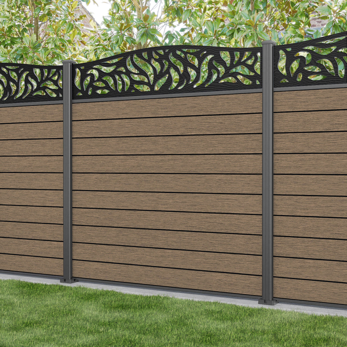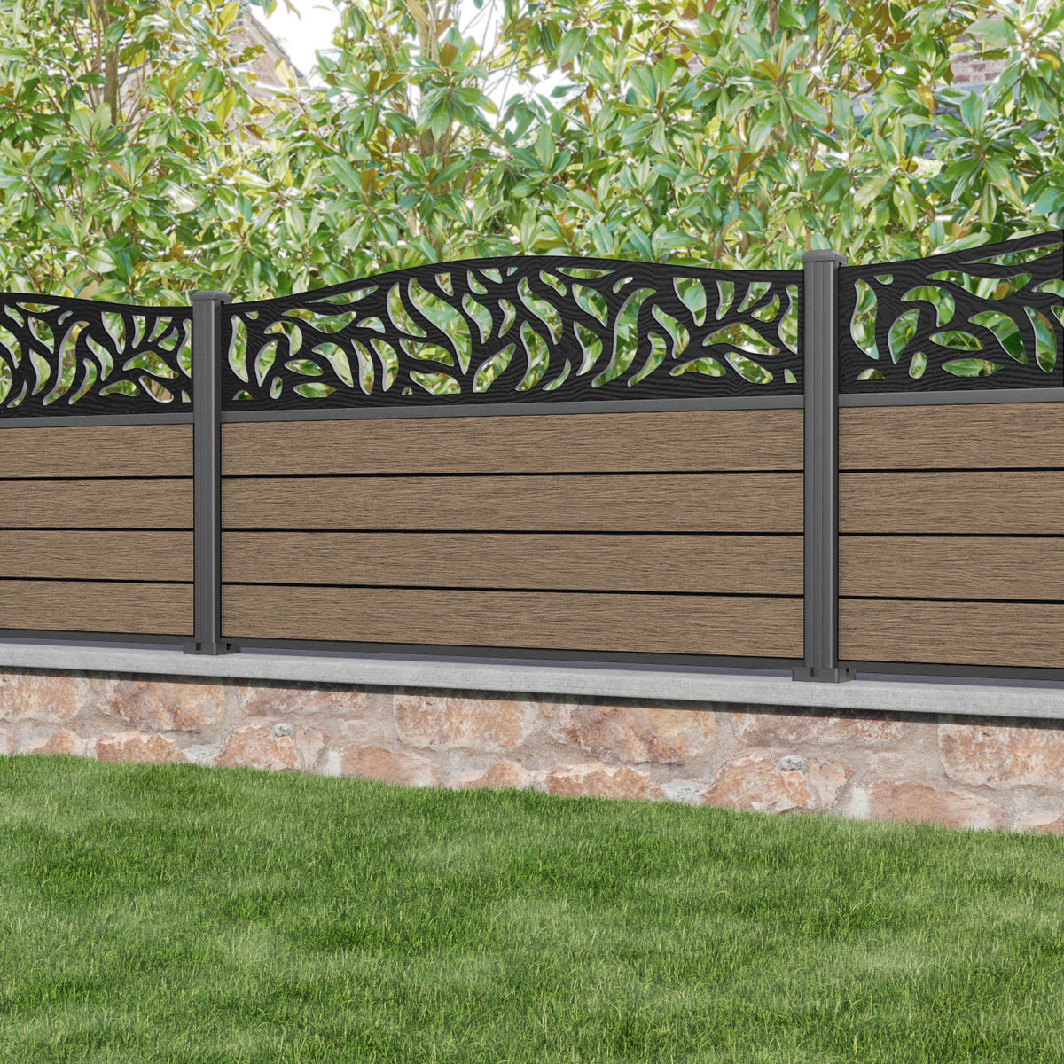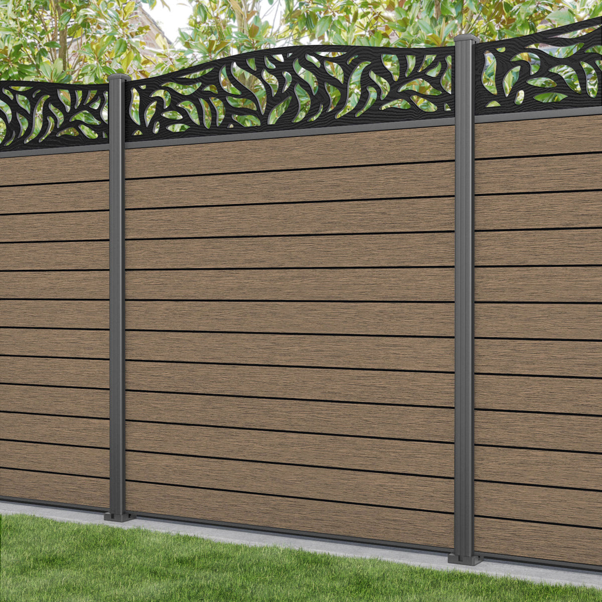 Fusion Plume Curved Top Fence Panel - Teak - with our aluminium posts