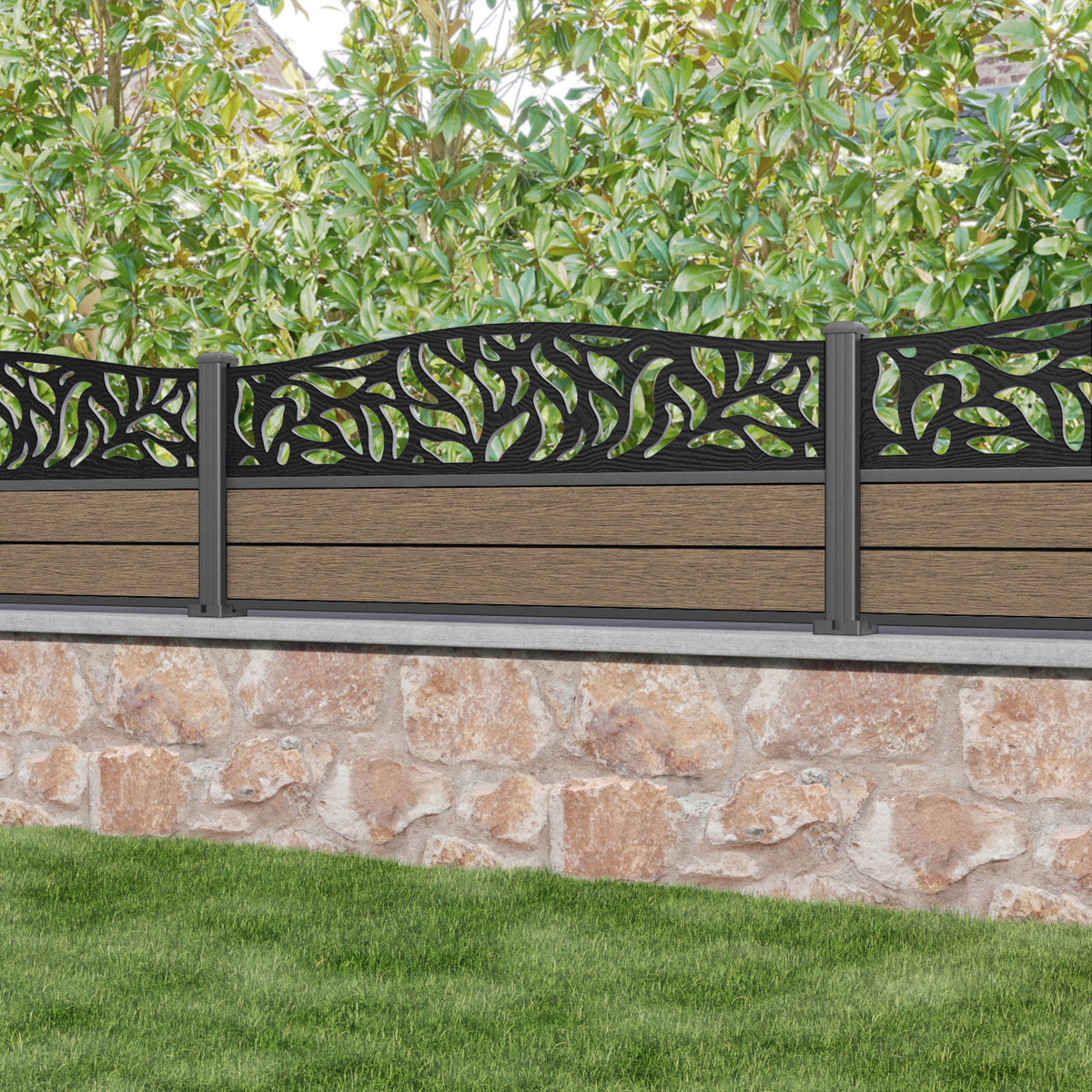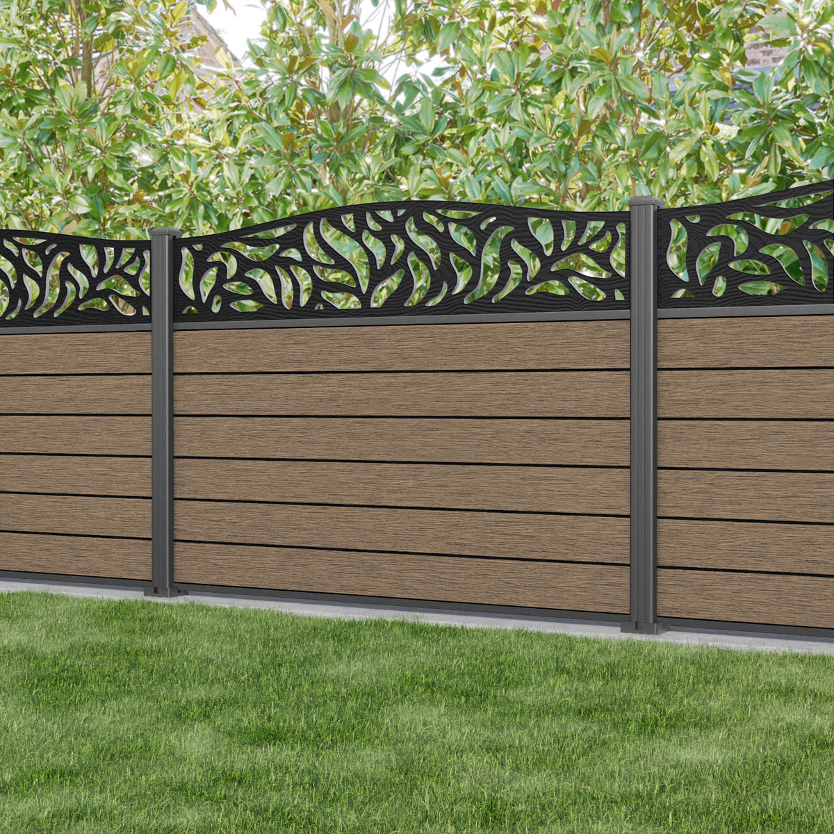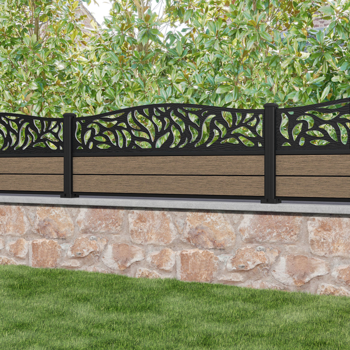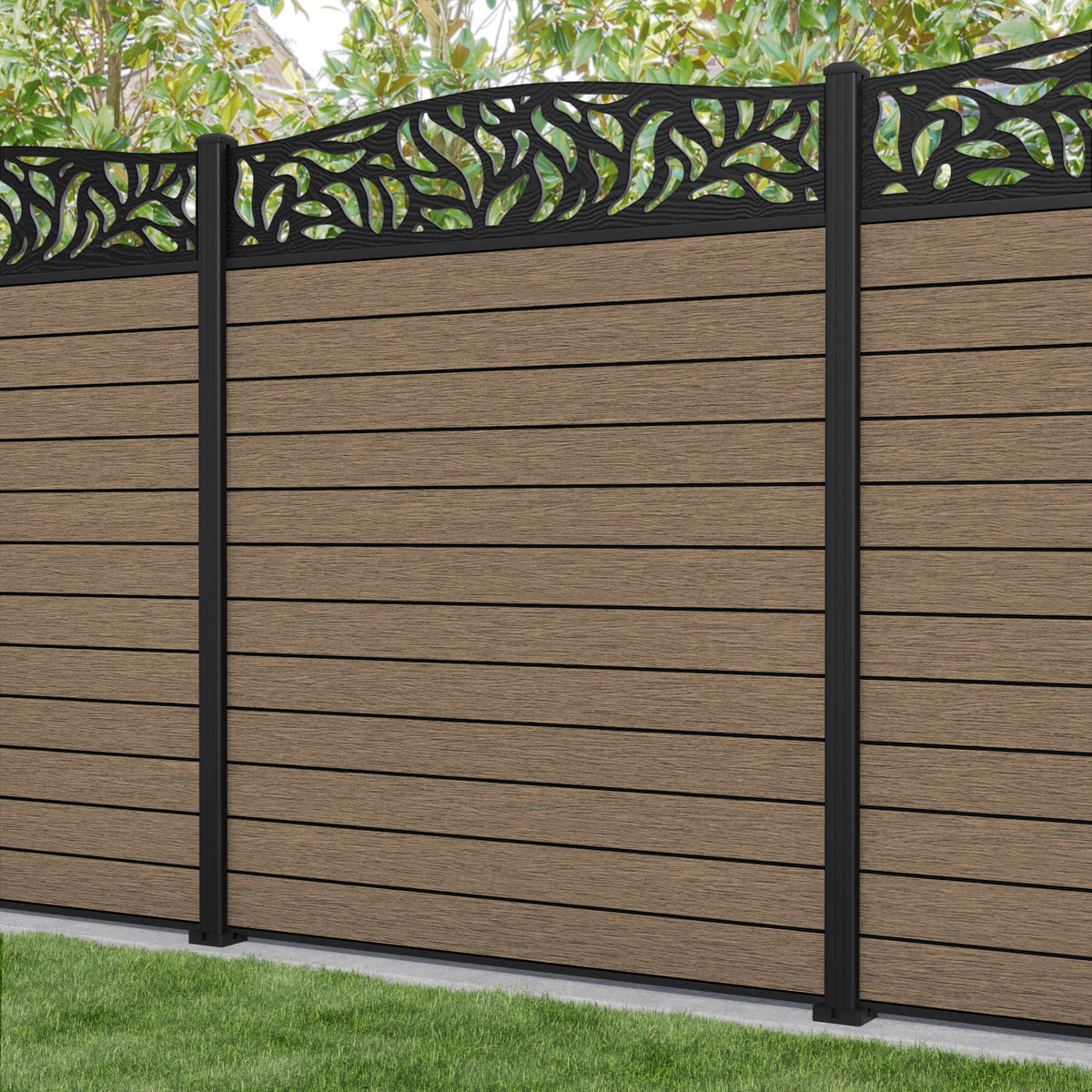 Fusion Plume Curved Top Fence Panel - Teak - with our aluminium posts