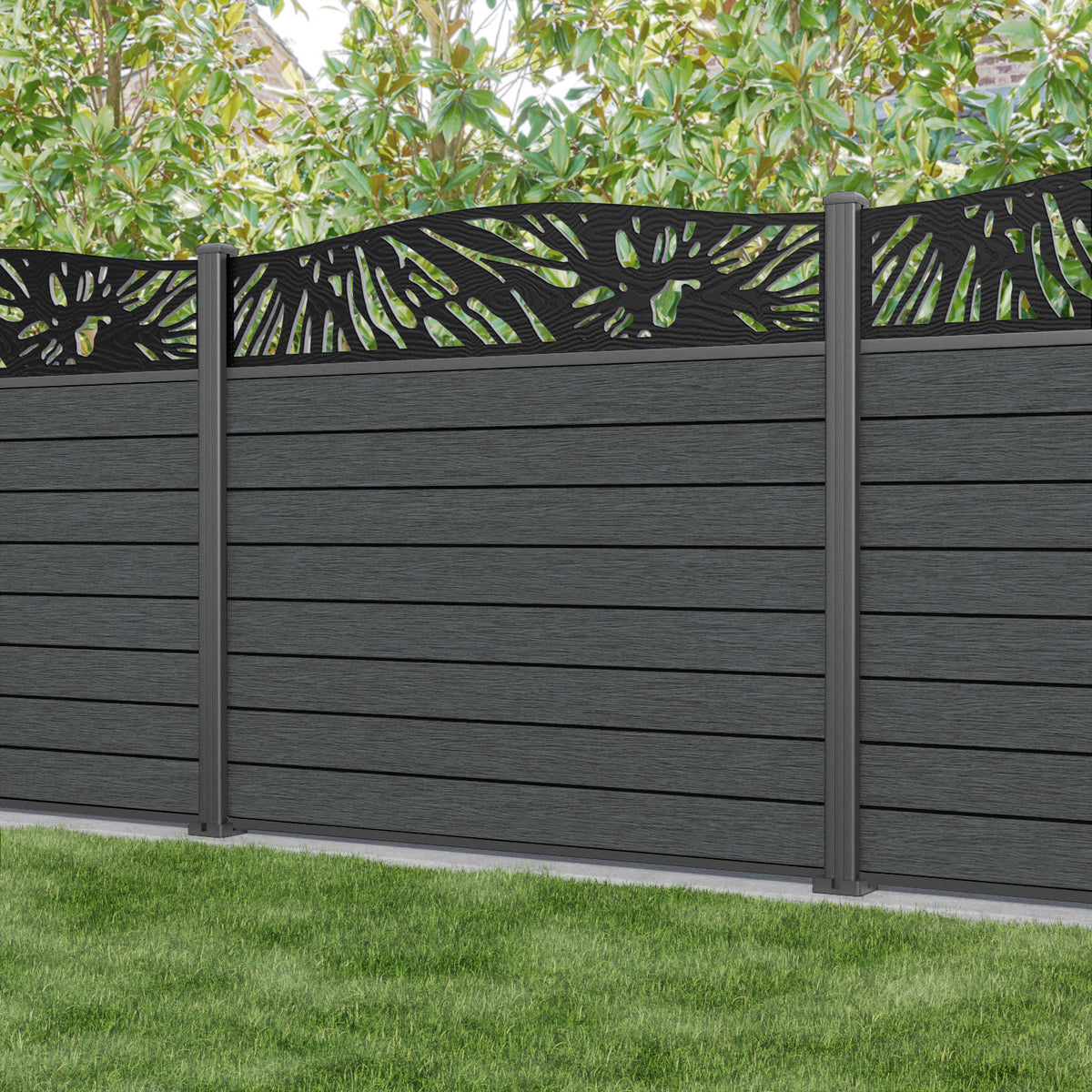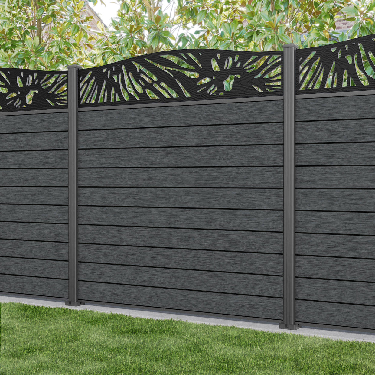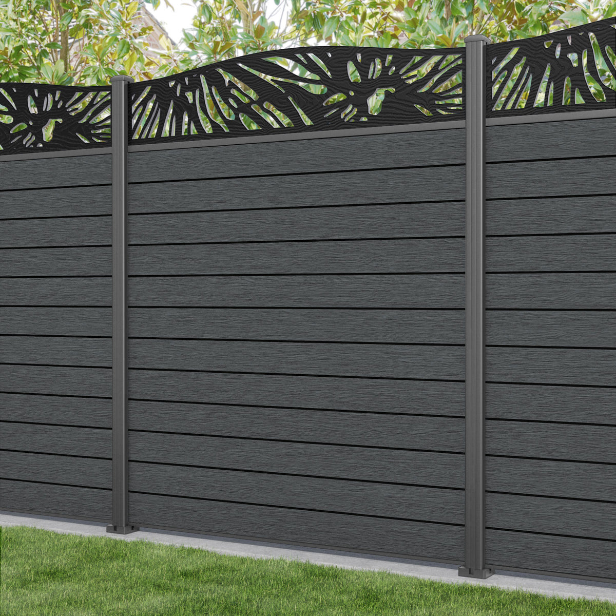 Fusion Poppy Curved Top Fence Panel Dark Grey - with our aluminium posts