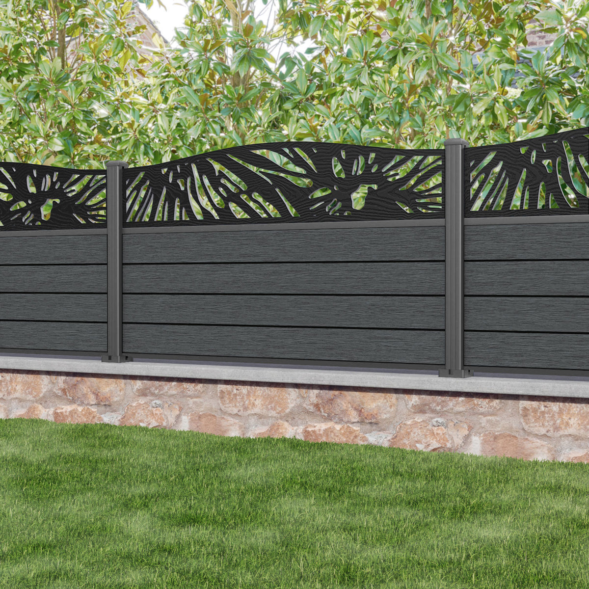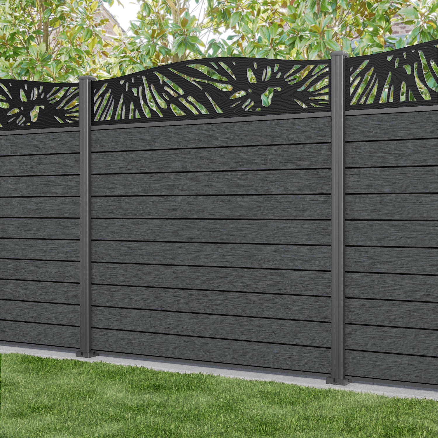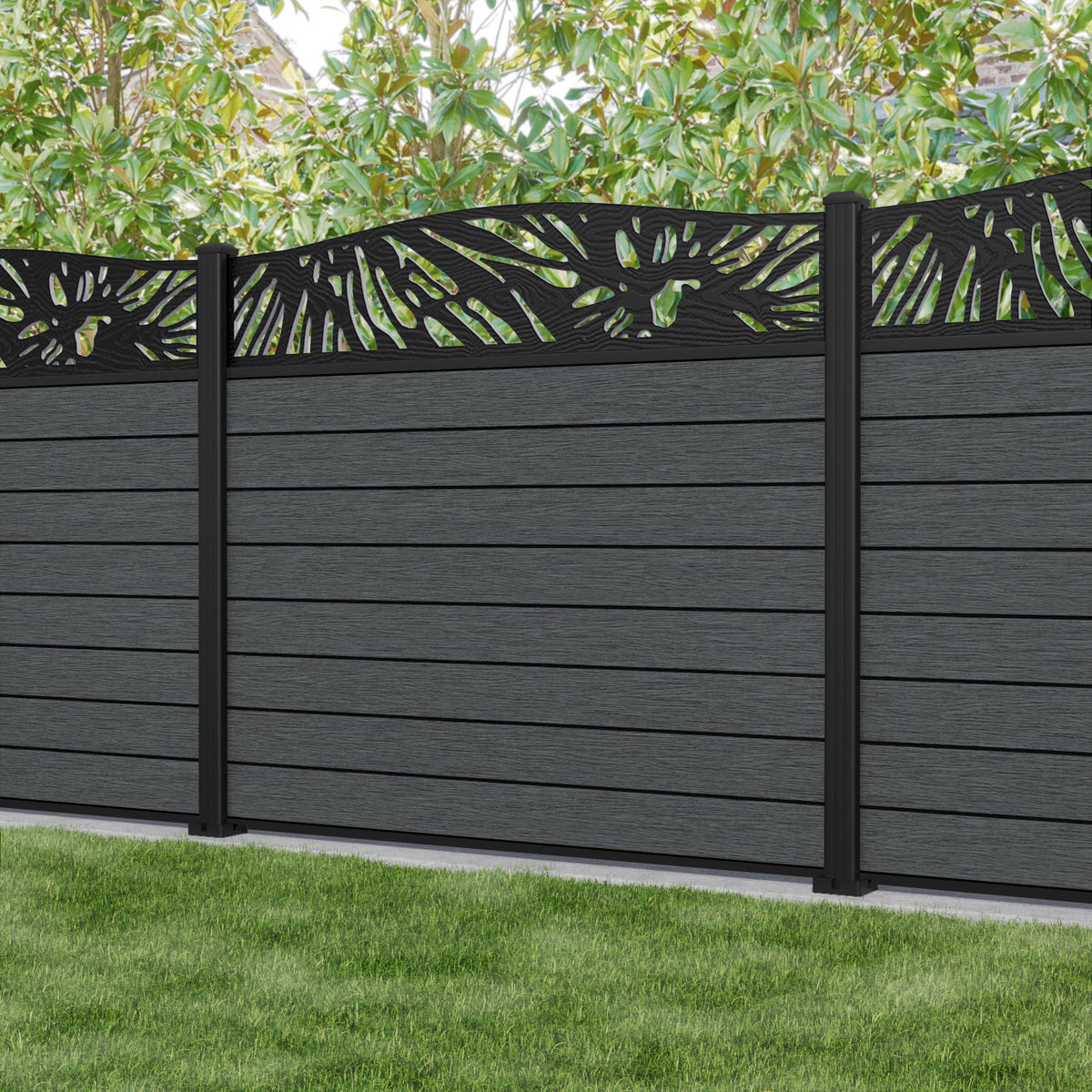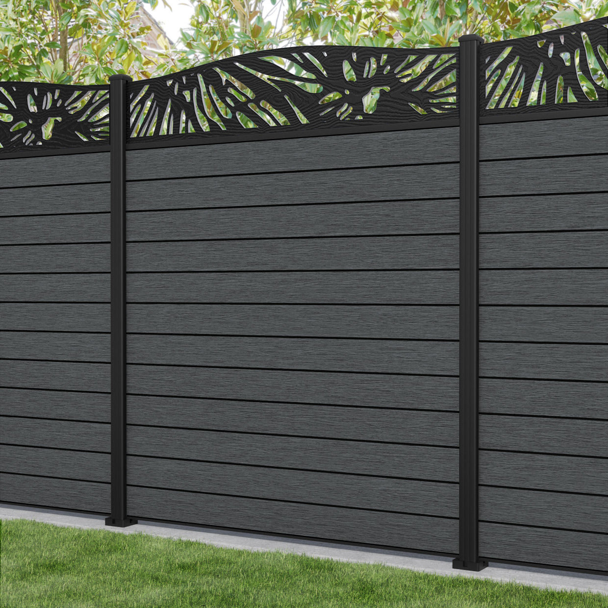 Fusion Poppy Curved Top Fence Panel Dark Grey - with our aluminium posts