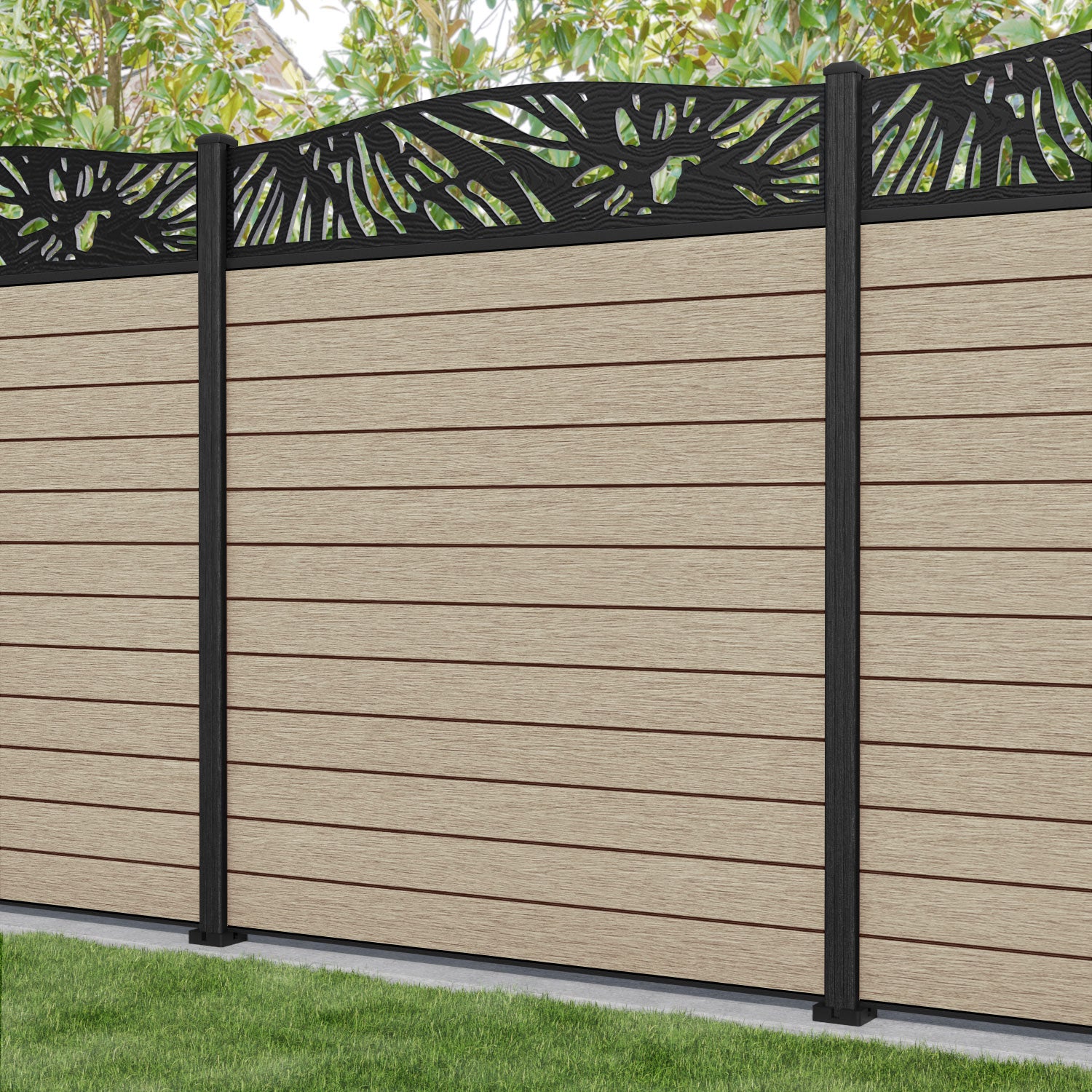 Fusion Poppy Curved Top Fence Panel Light Oak - with our composite posts