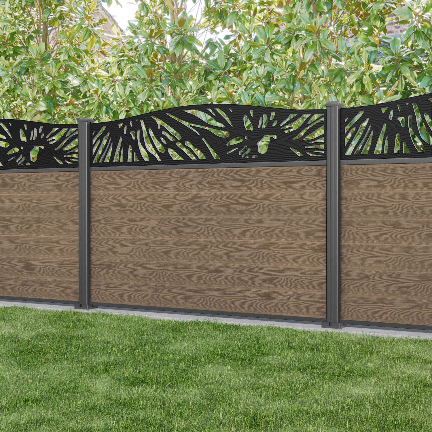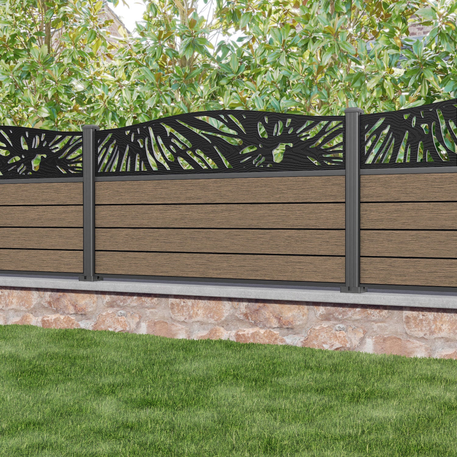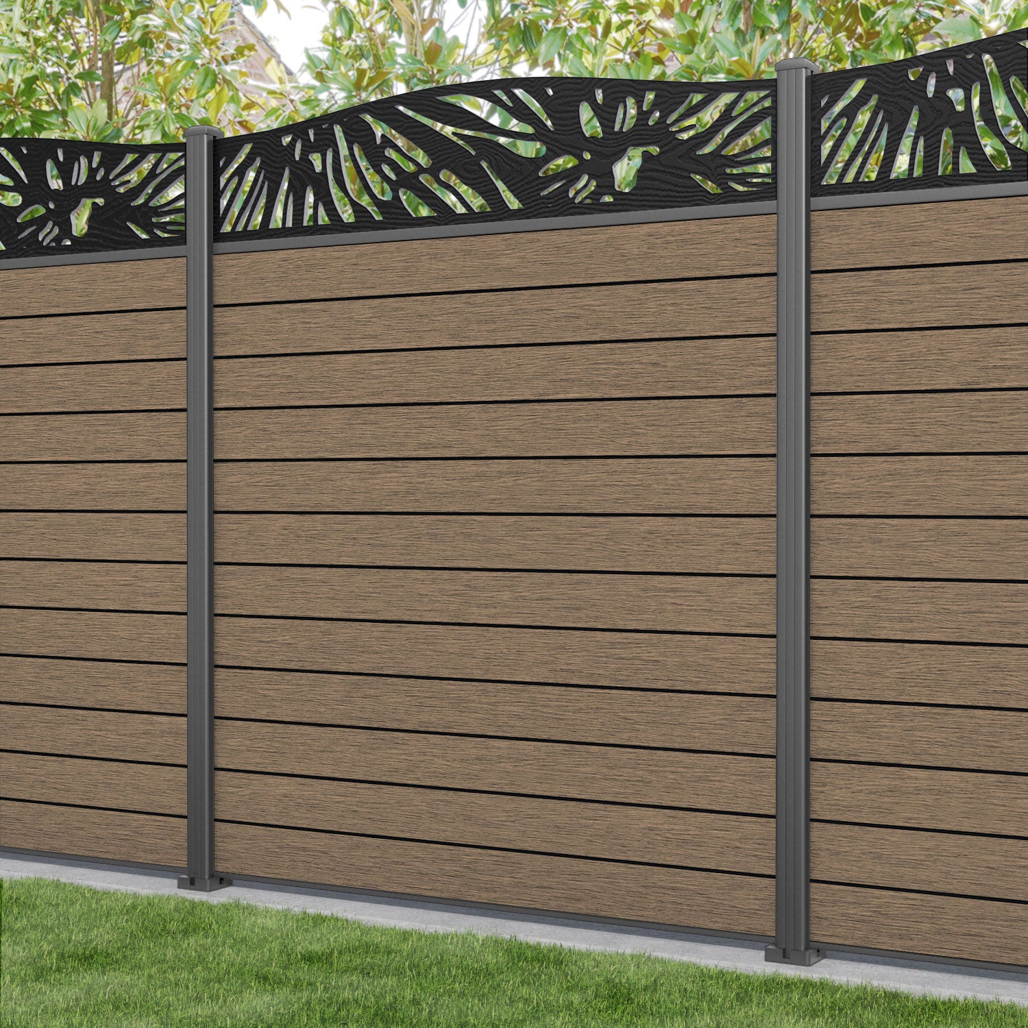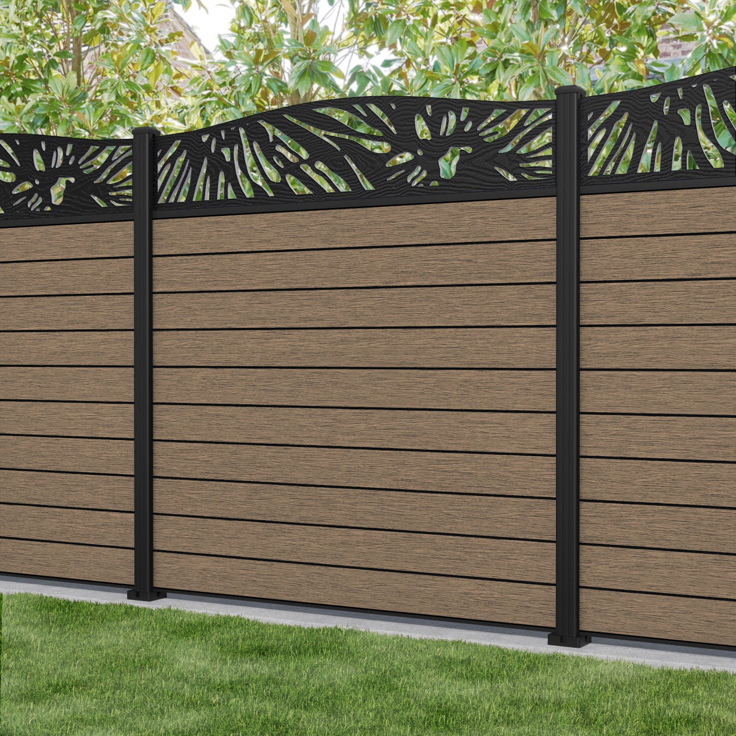 Fusion Poppy Curved Top Fence Panel Teak - with our aluminium posts