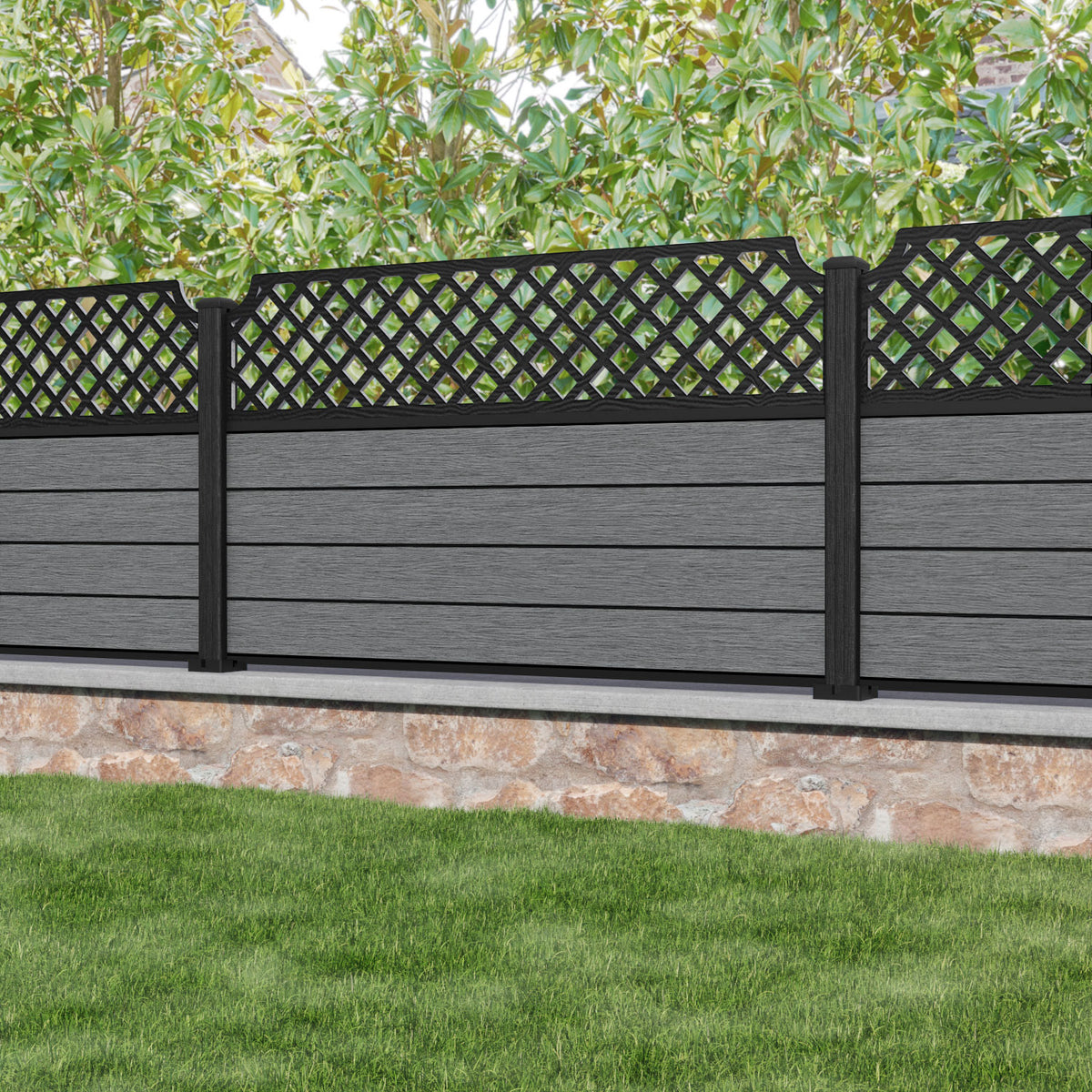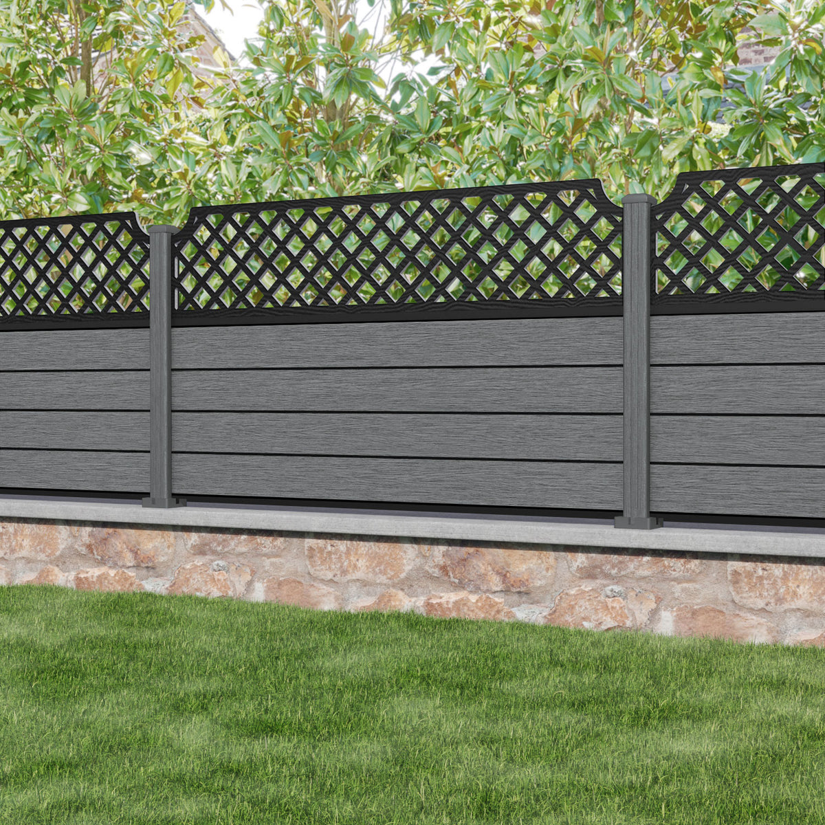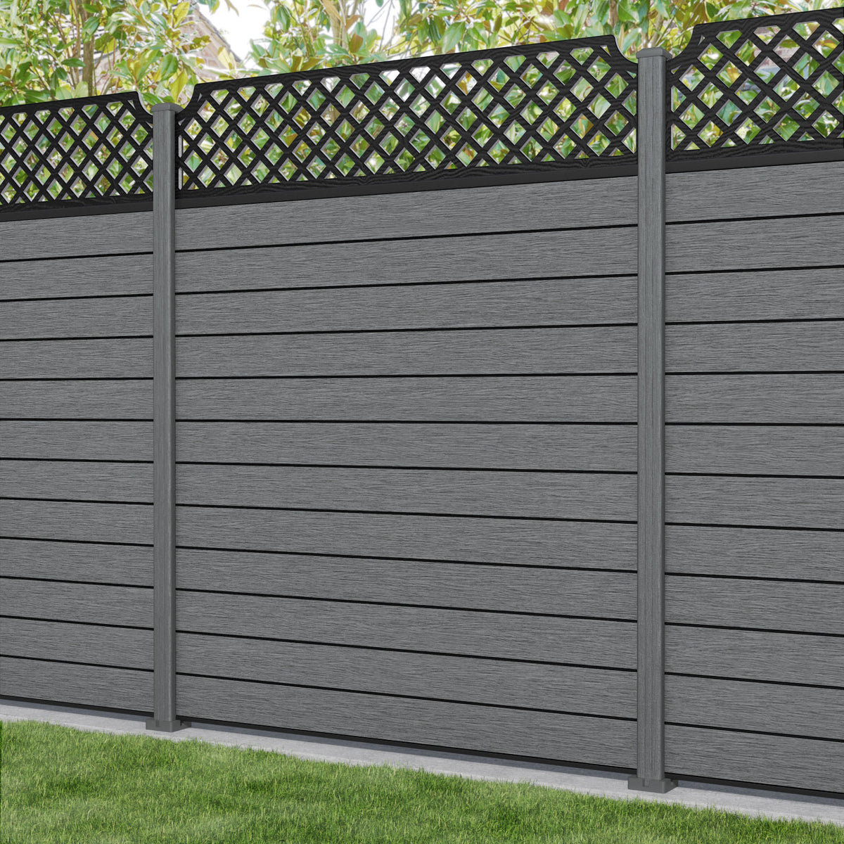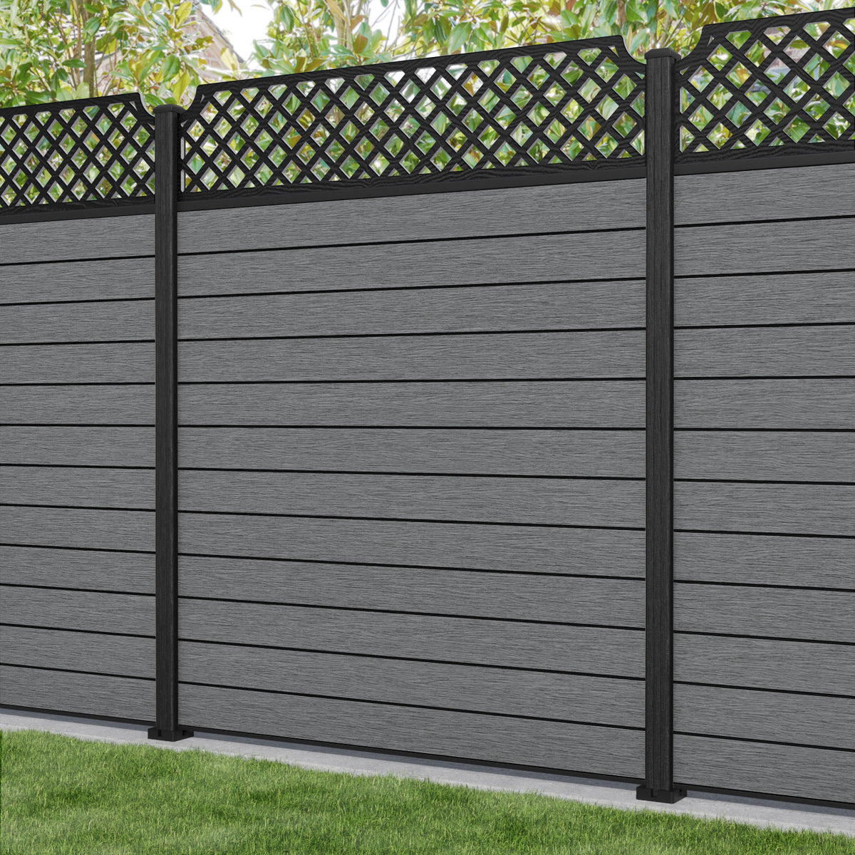 Fusion Regal Hive Fence Panel Mid Grey - with our composite posts