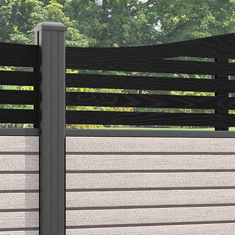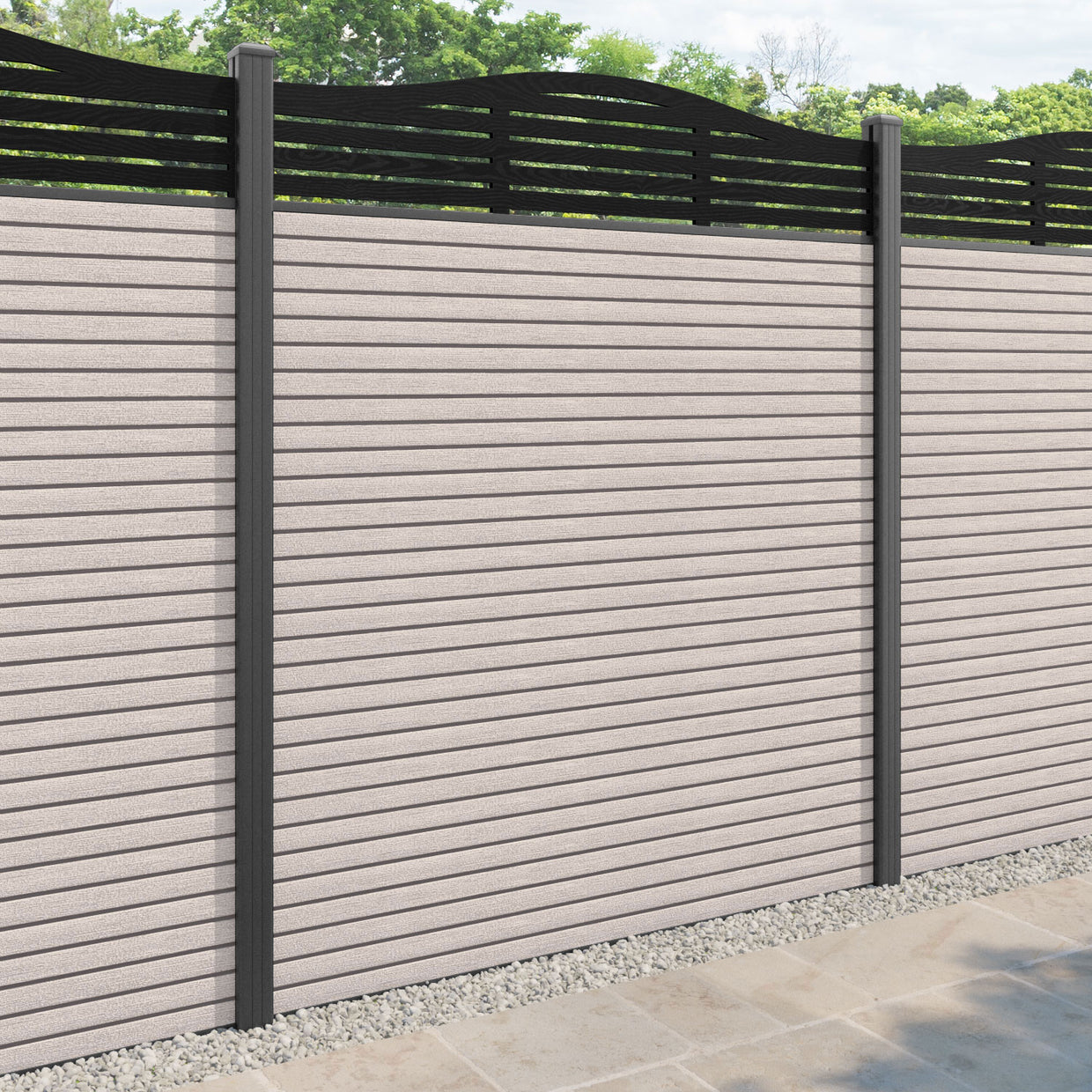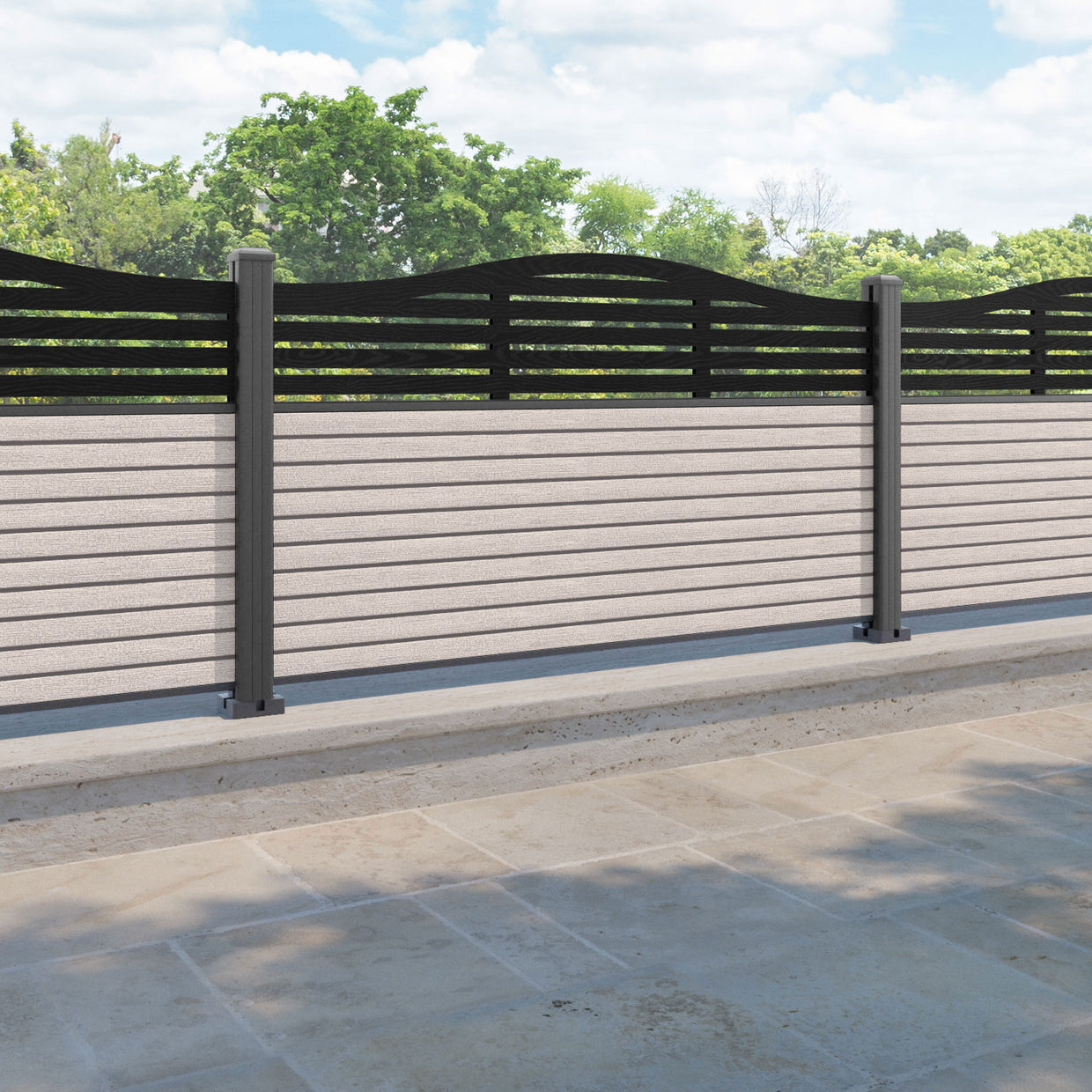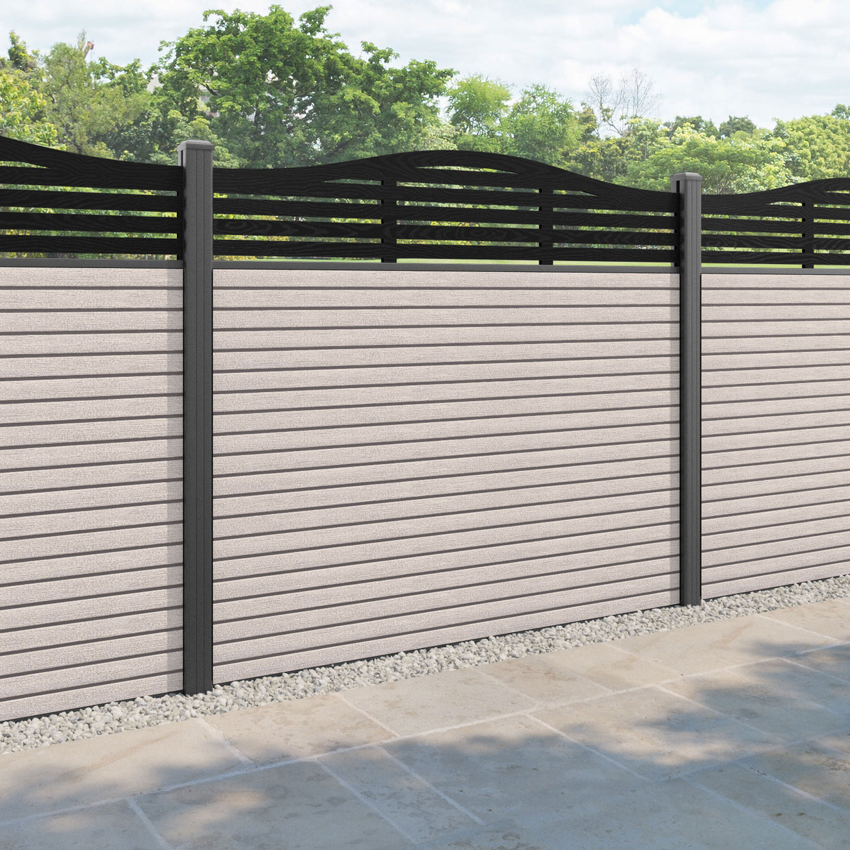 Hudson Aspen Curved Top Fence Panel Mid Stone - with our aluminium posts