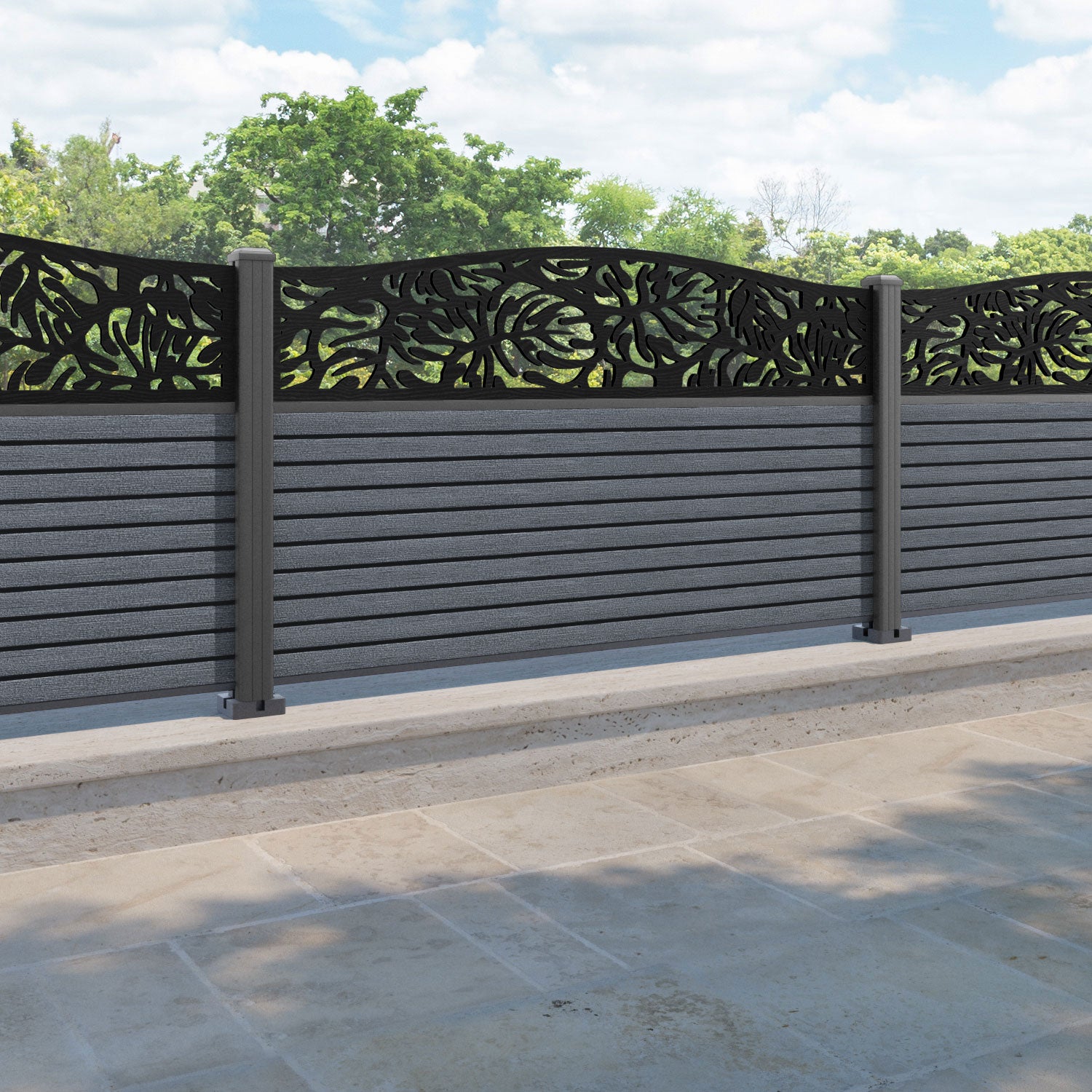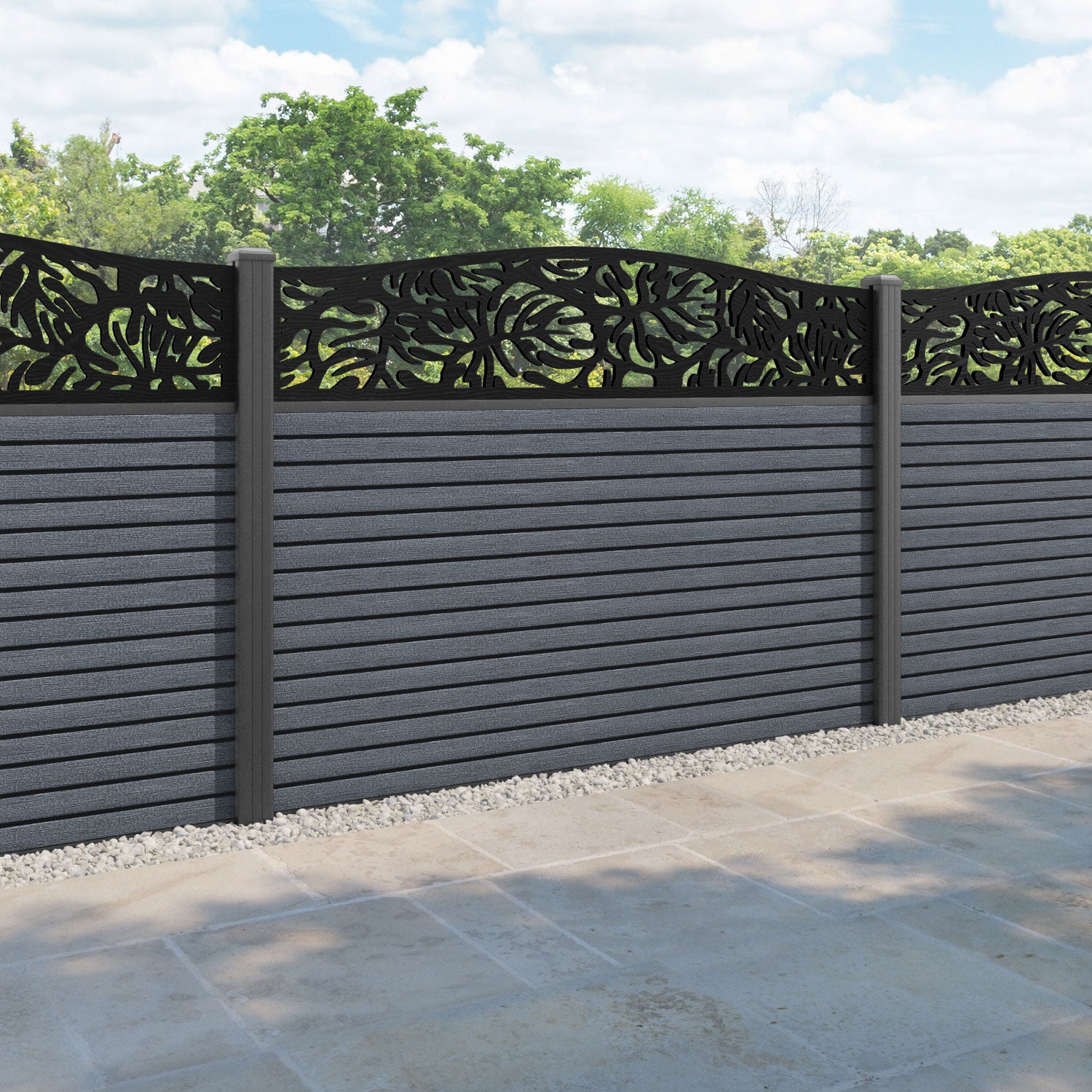 Hudson Botanic Curved Top Fence Panel Anthracite - with our aluminium posts