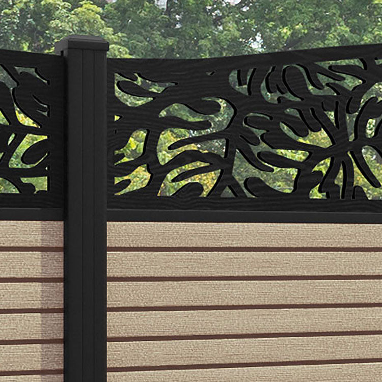 Hudson Botanic Curved Top Fence Panel Light Oak - with our aluminium posts