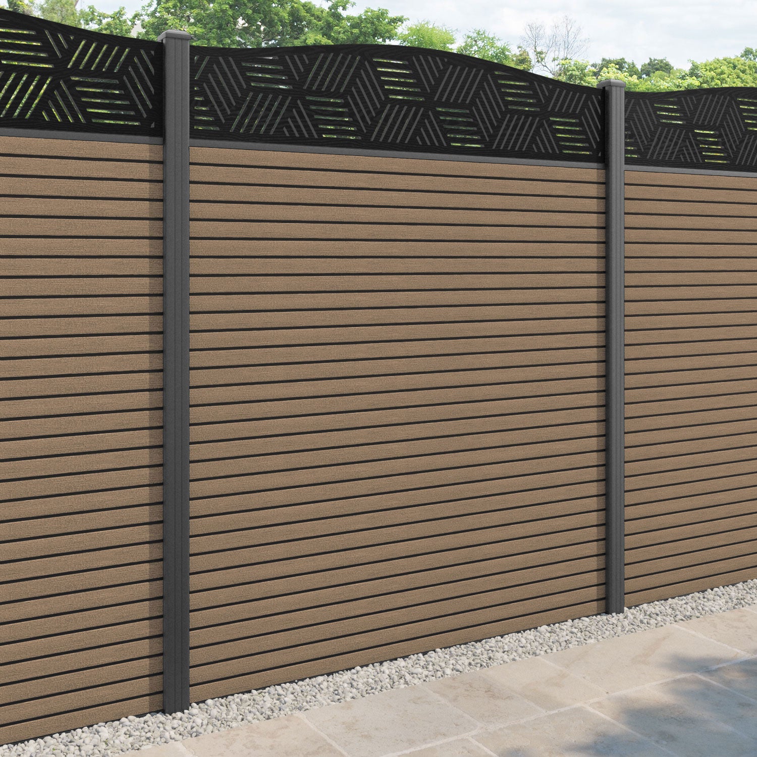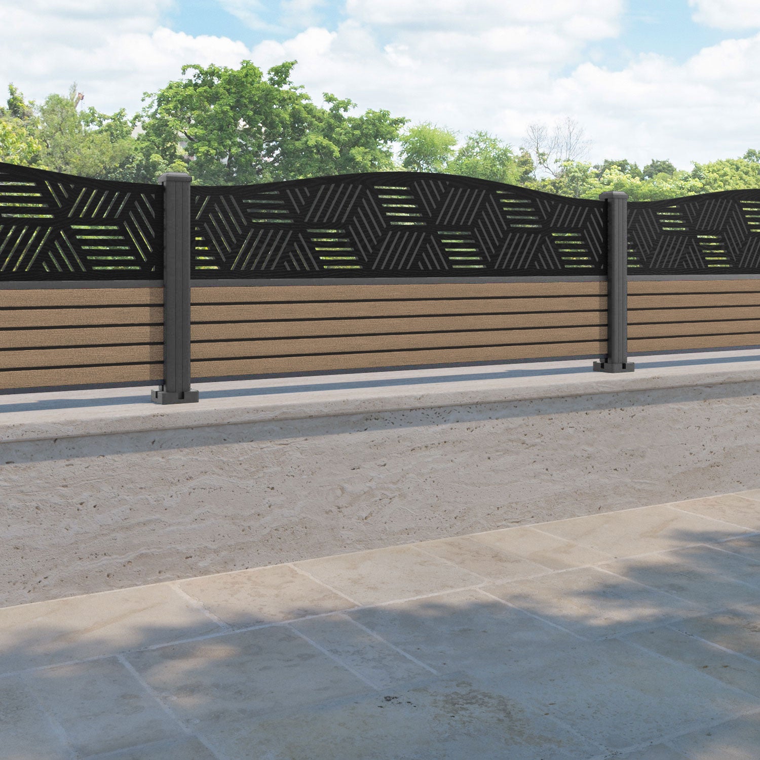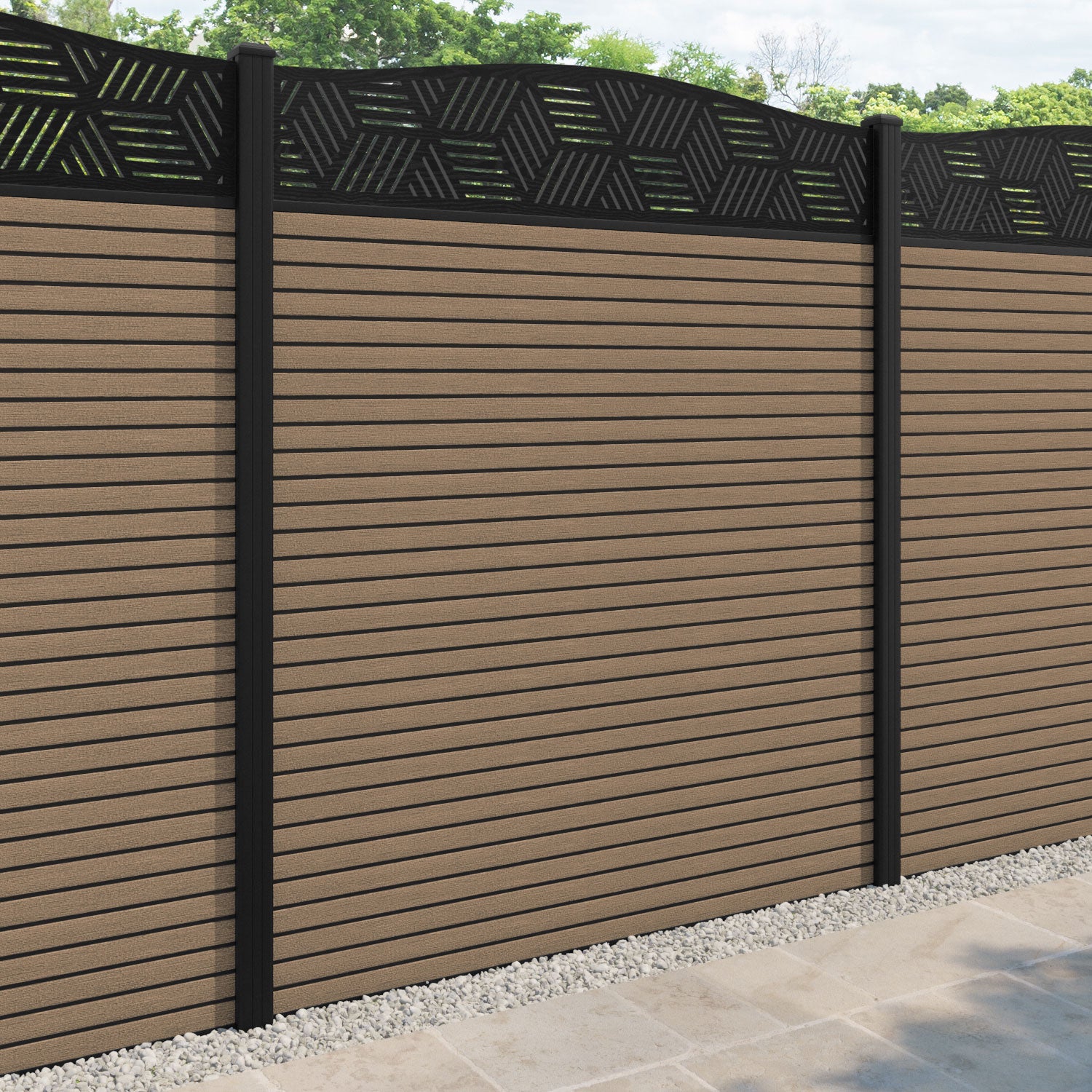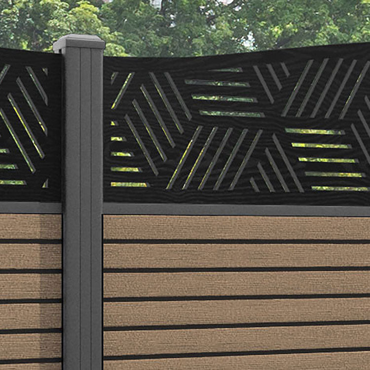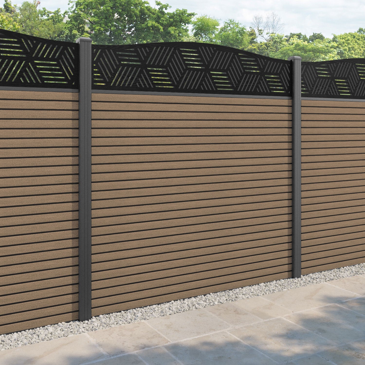 Hudson Cubed Curved Top Fence Panel Teak - with our aluminium posts