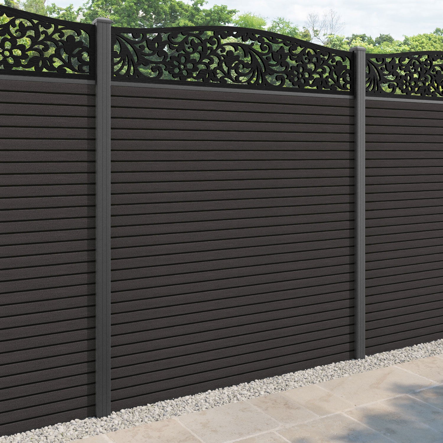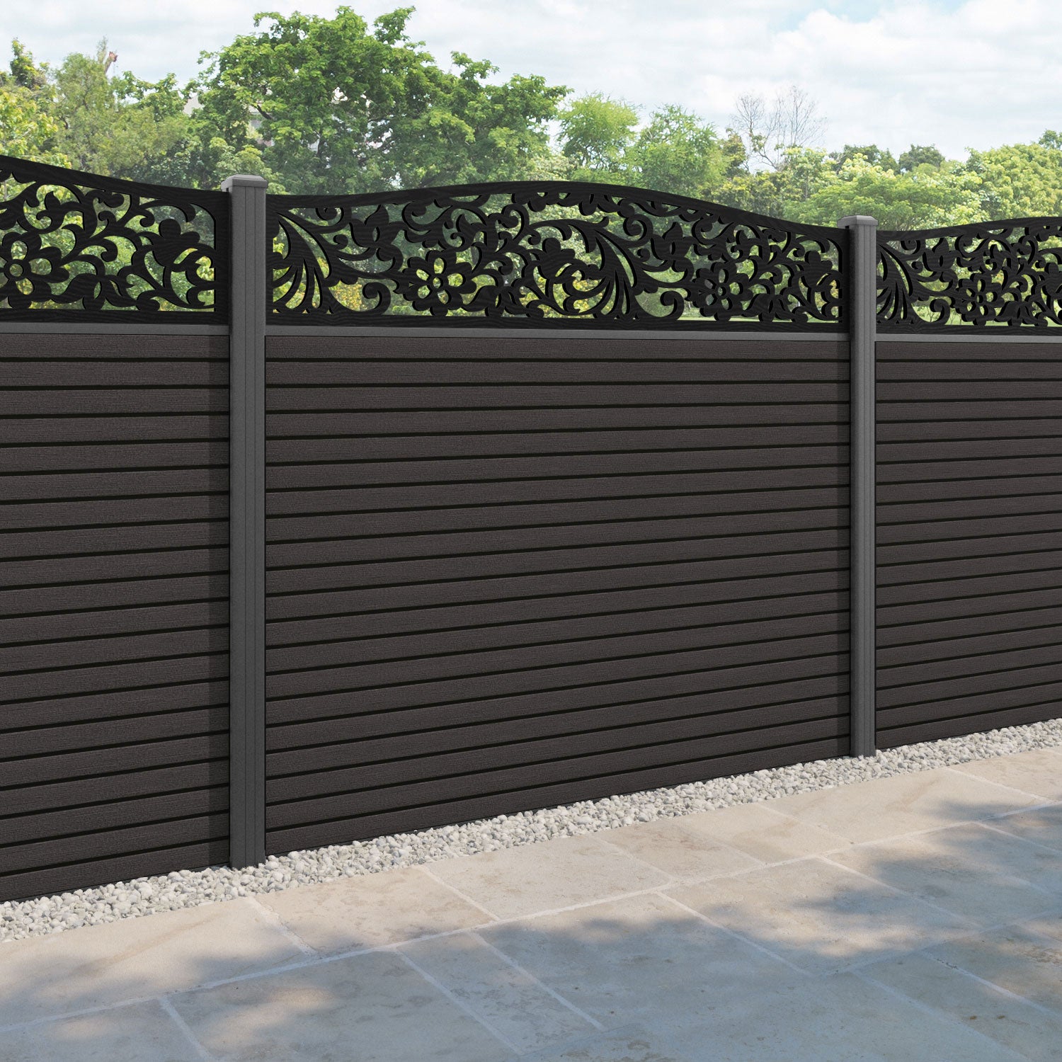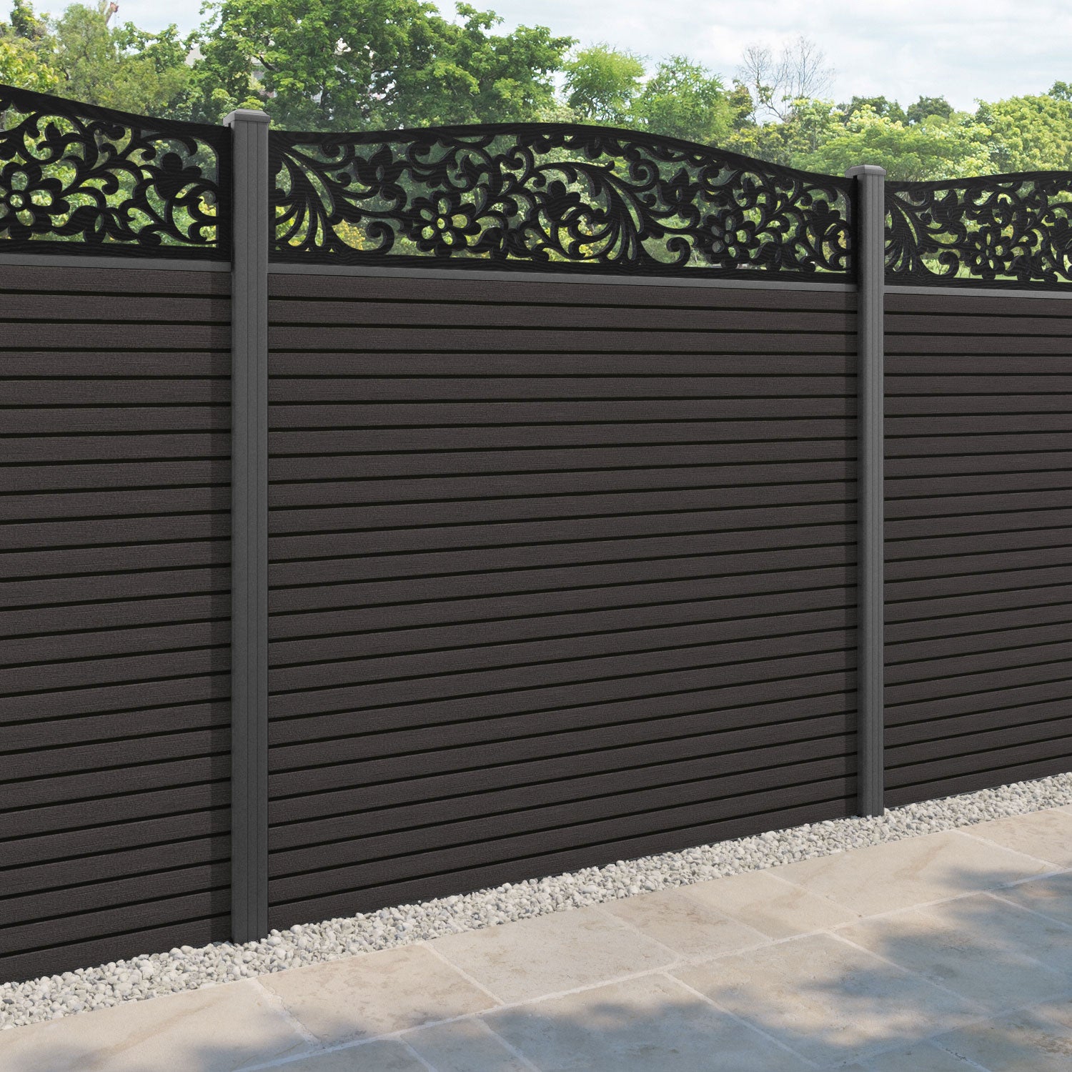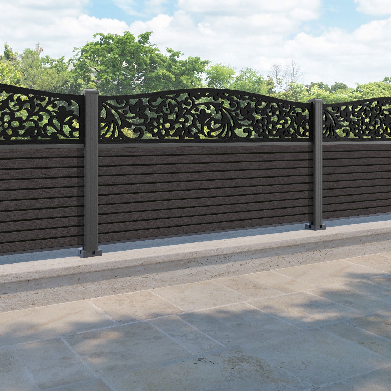 Hudson Eden Curved Top Fence Panel Dark Oak - with our aluminium posts
