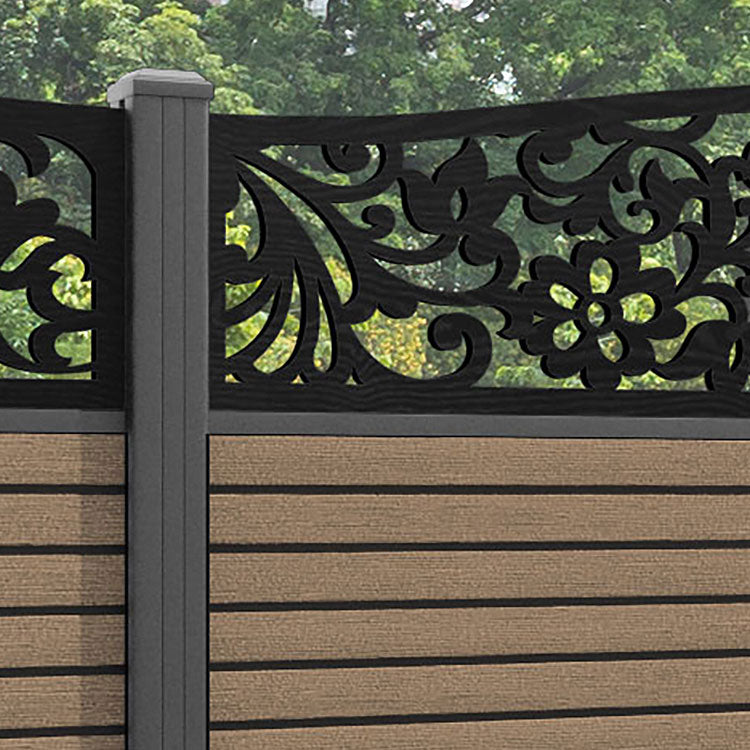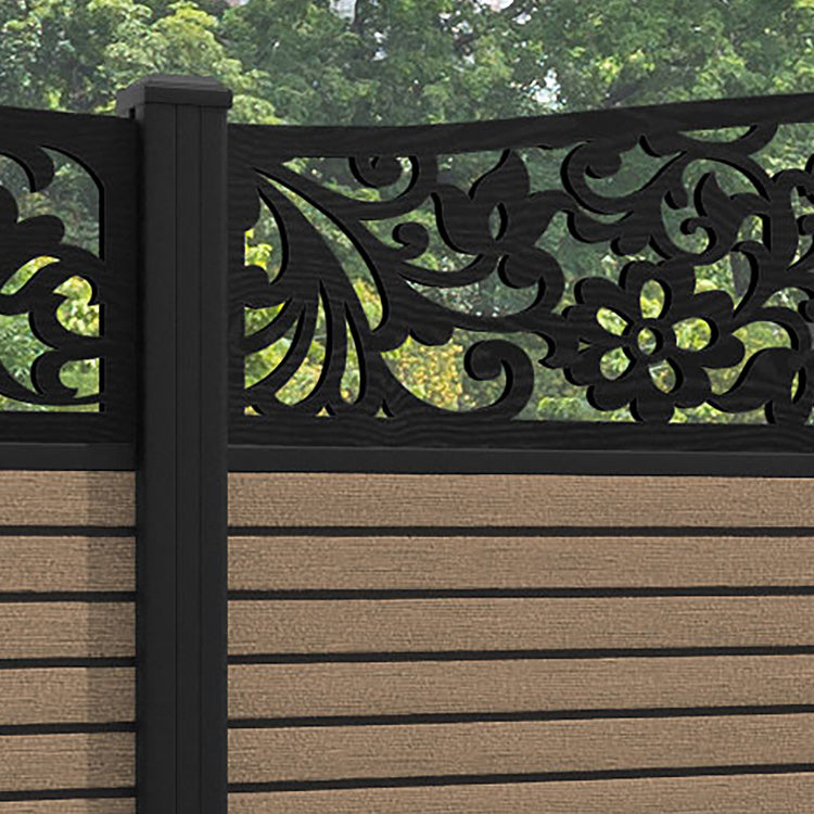 Hudson Eden Curved Top Fence Panel Teak - with our aluminium posts