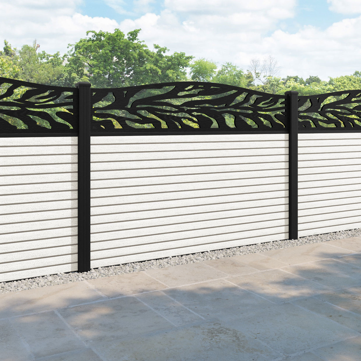 Hudson Malawi Curved Top Fence Panel Light Stone - with our aluminium posts