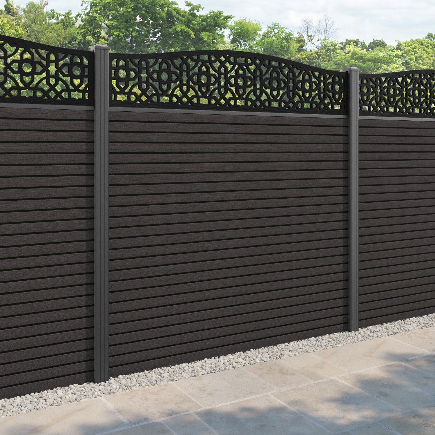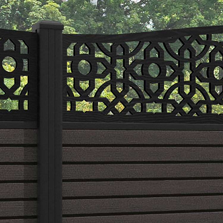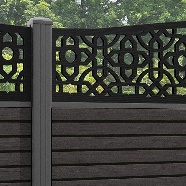 Hudson Nabila Curved Top Fence Panel Dark Oak - with our aluminium posts