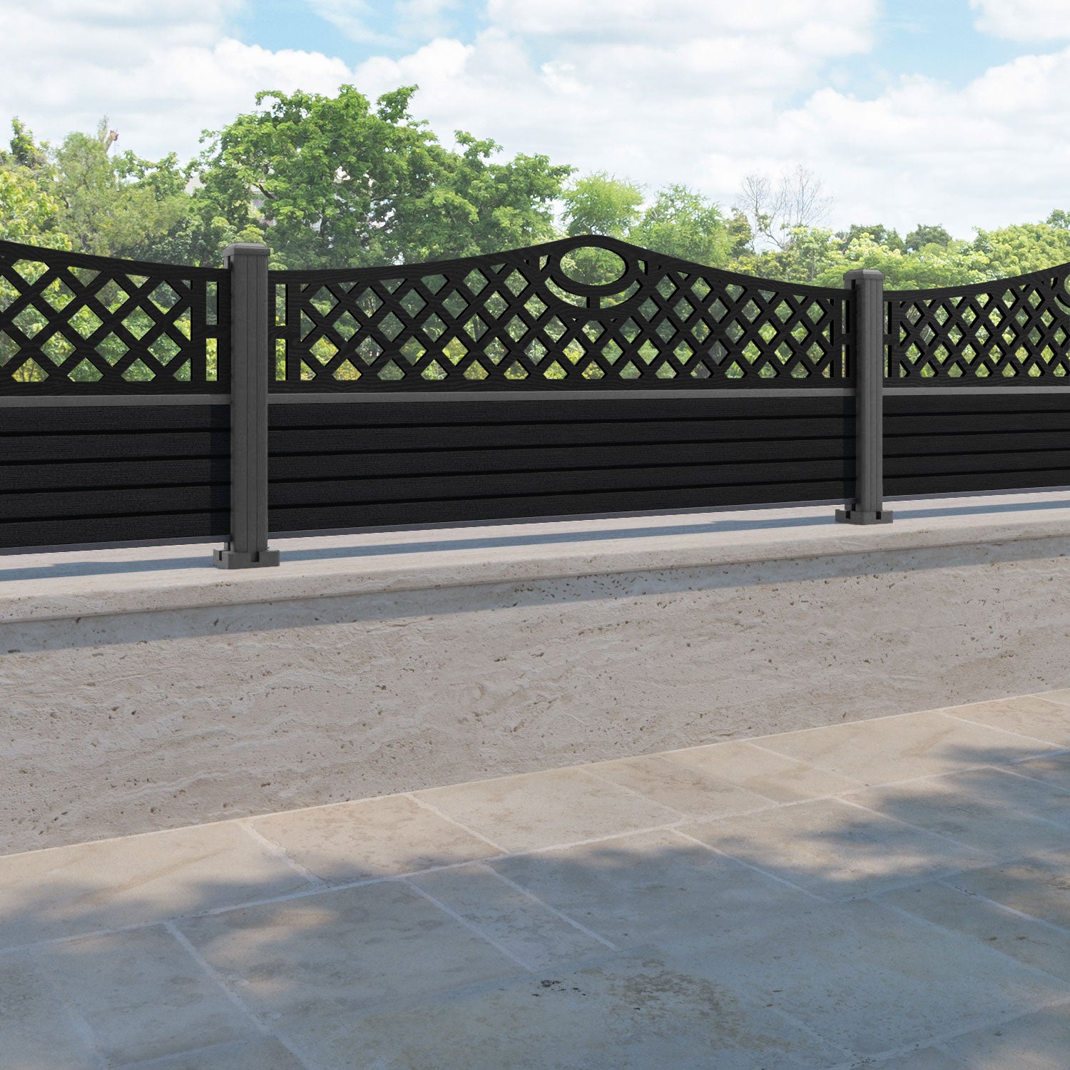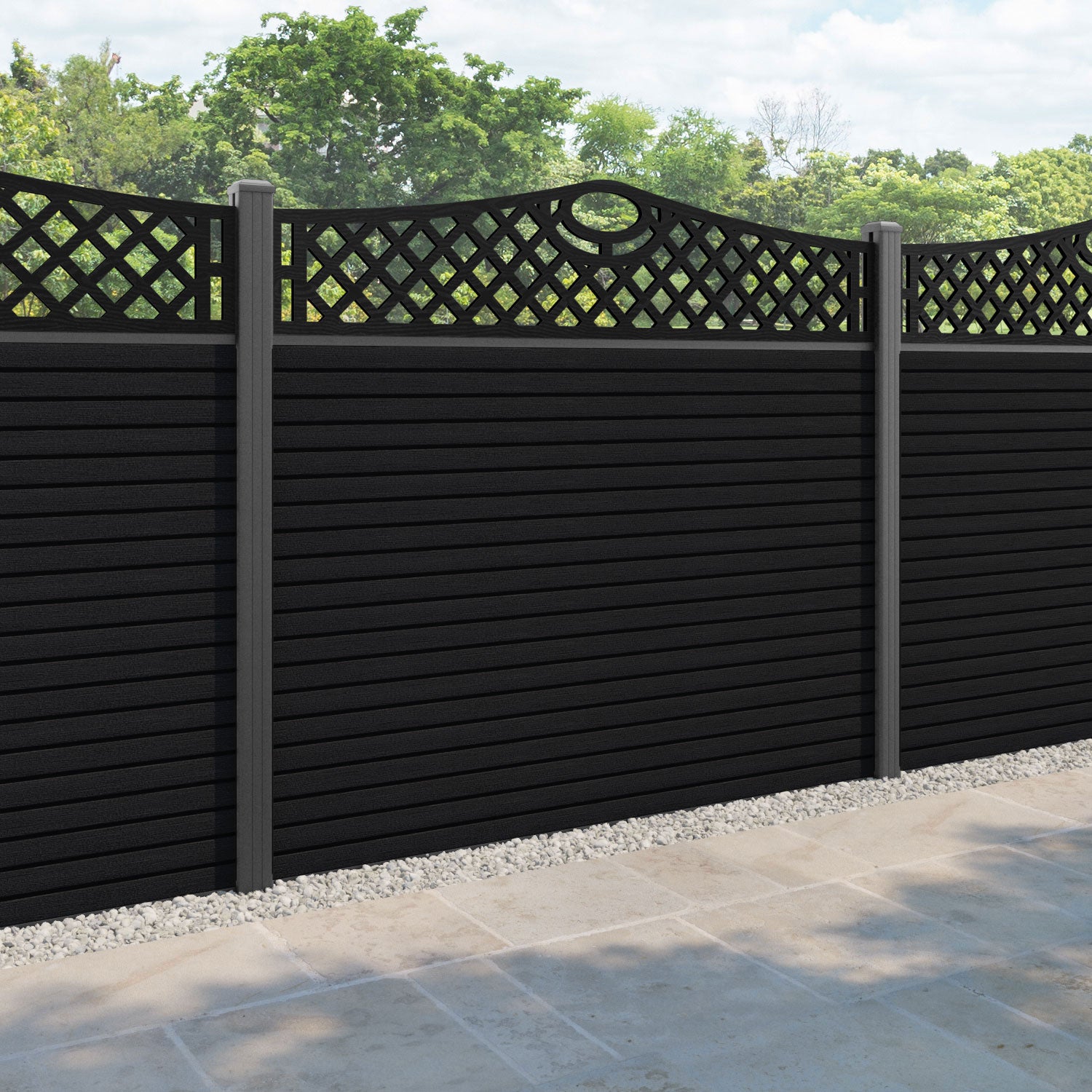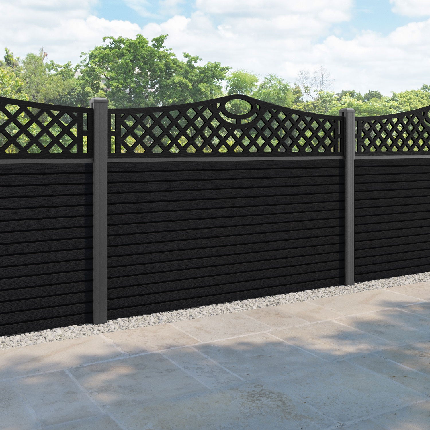Hudson Oxford Curved Top Fence Panel Black - with our aluminium posts