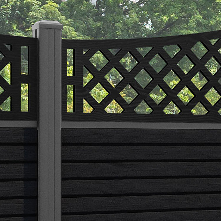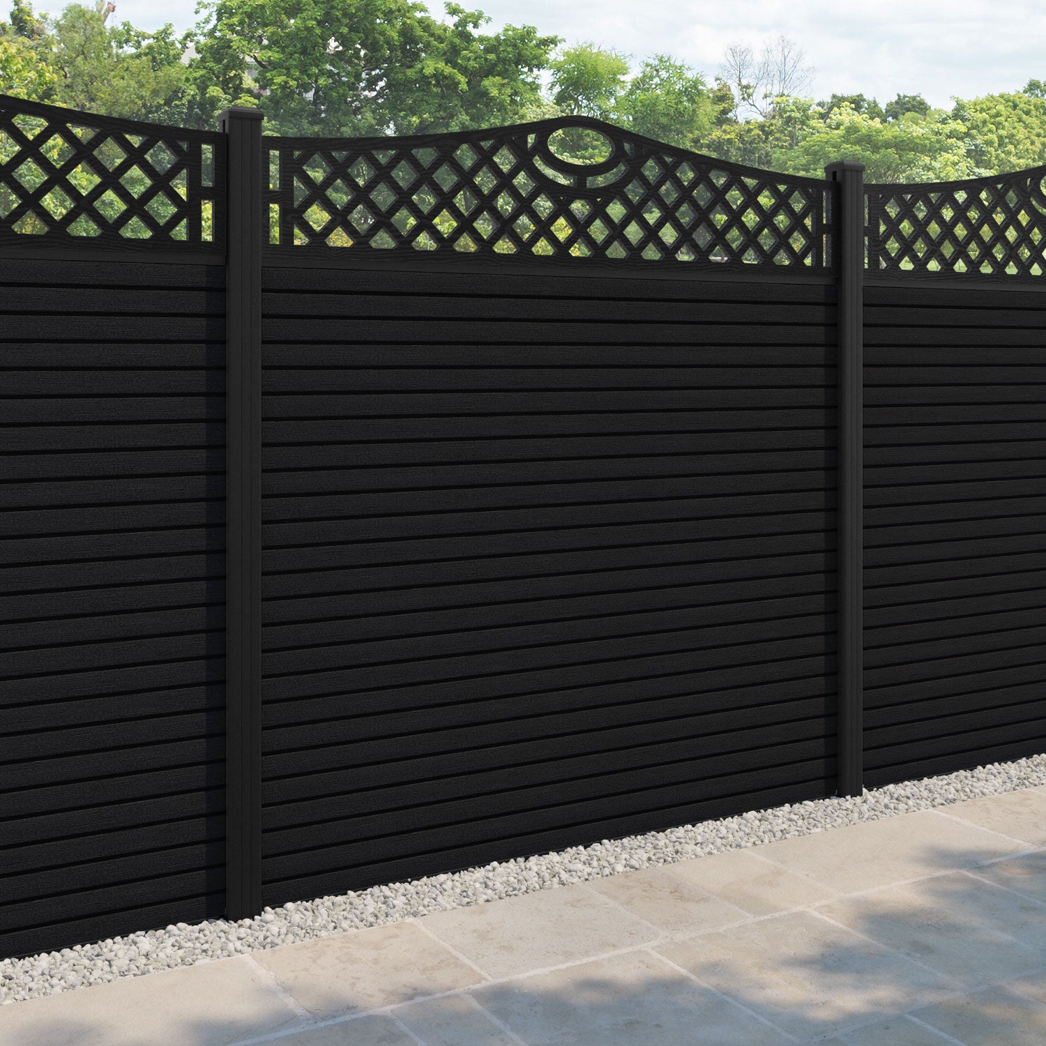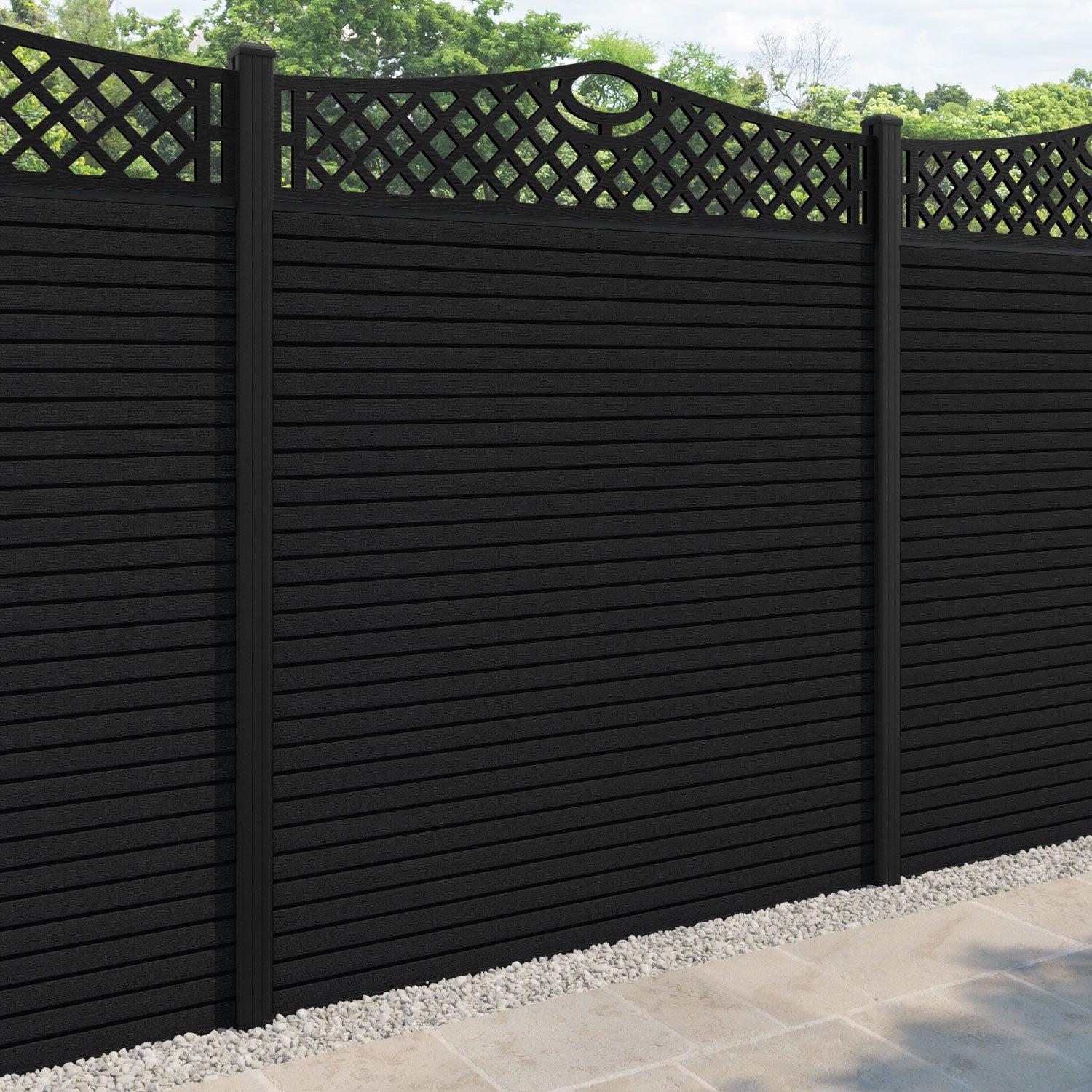 Hudson Oxford Curved Top Fence Panel Black - with our aluminium posts