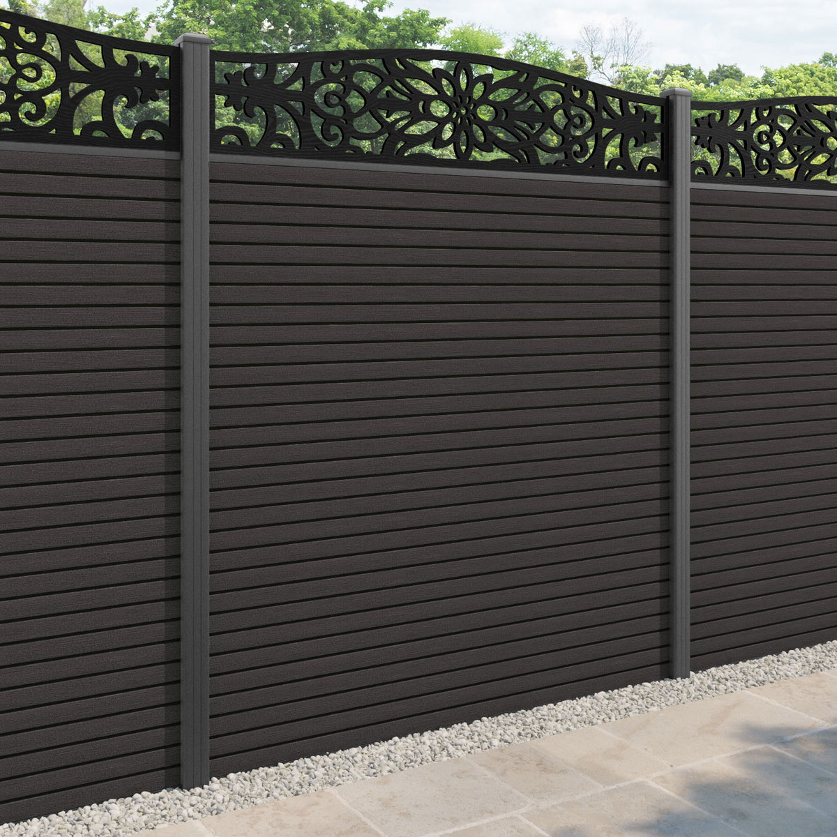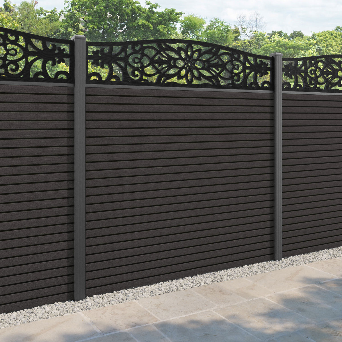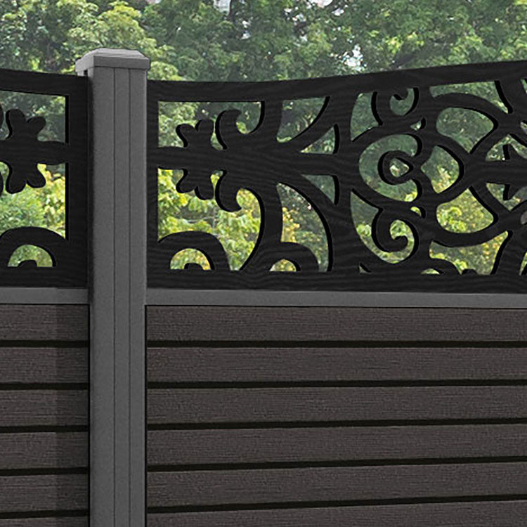 Hudson Windsor Curved Top Fence Panel Dark Oak - with our aluminium posts
