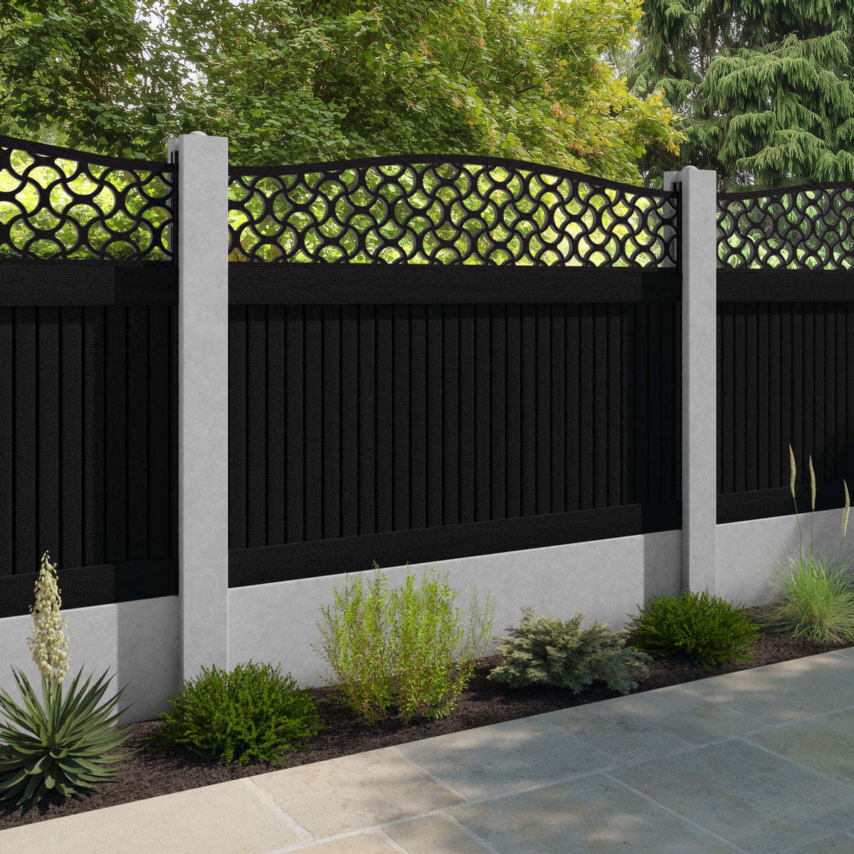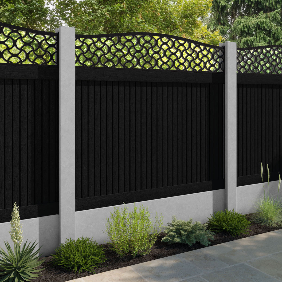 Virtis Vida Curved Top Fence Panel Black - for existing concrete posts