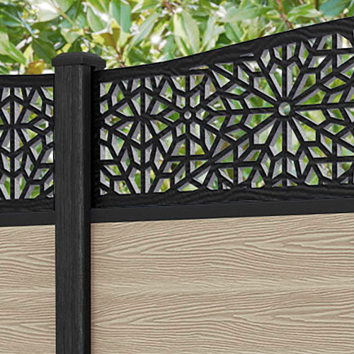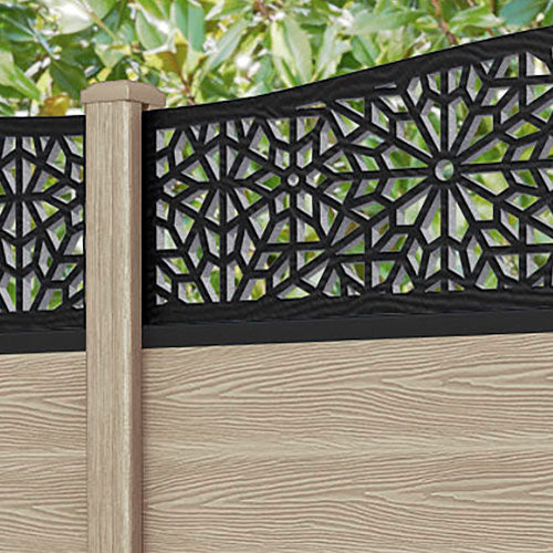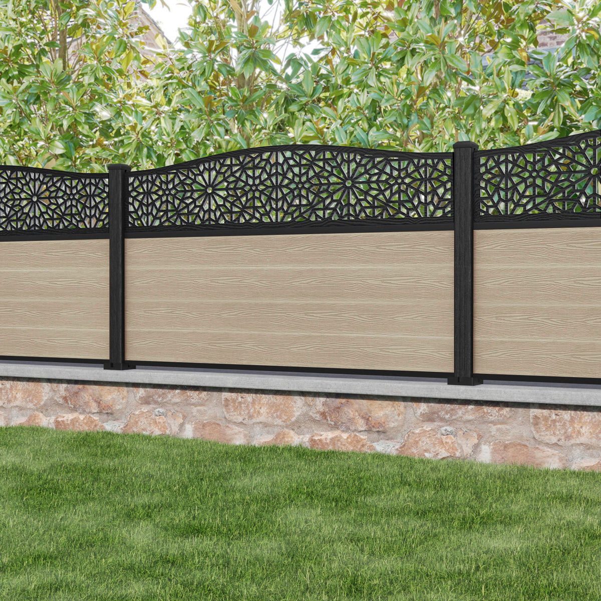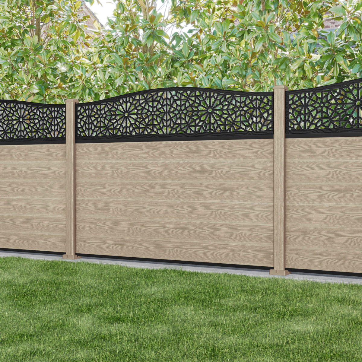 Classic Alnara Curved Top Fence Panel Light Oak - with our composite posts