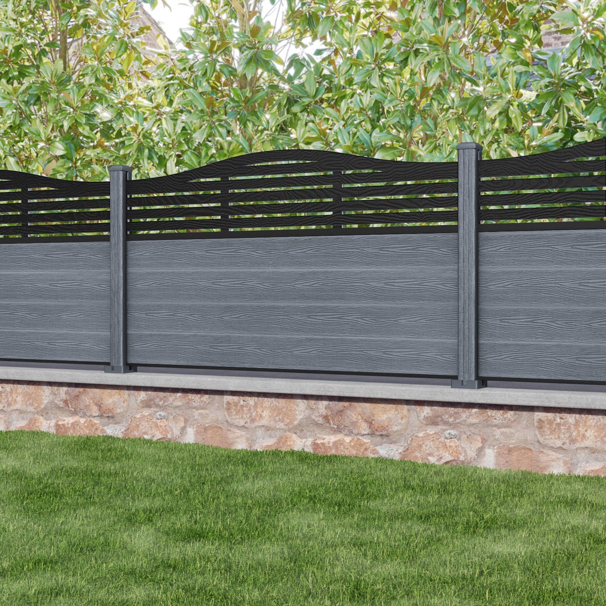 Classic Aspen Curved Top Fence Panel Anthracite - with our composite posts