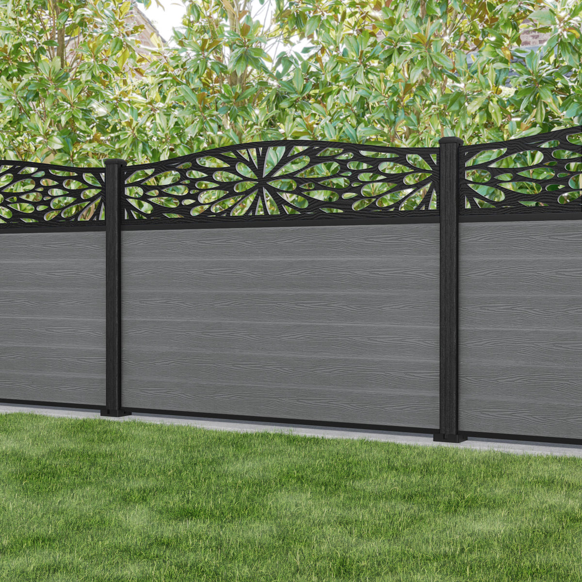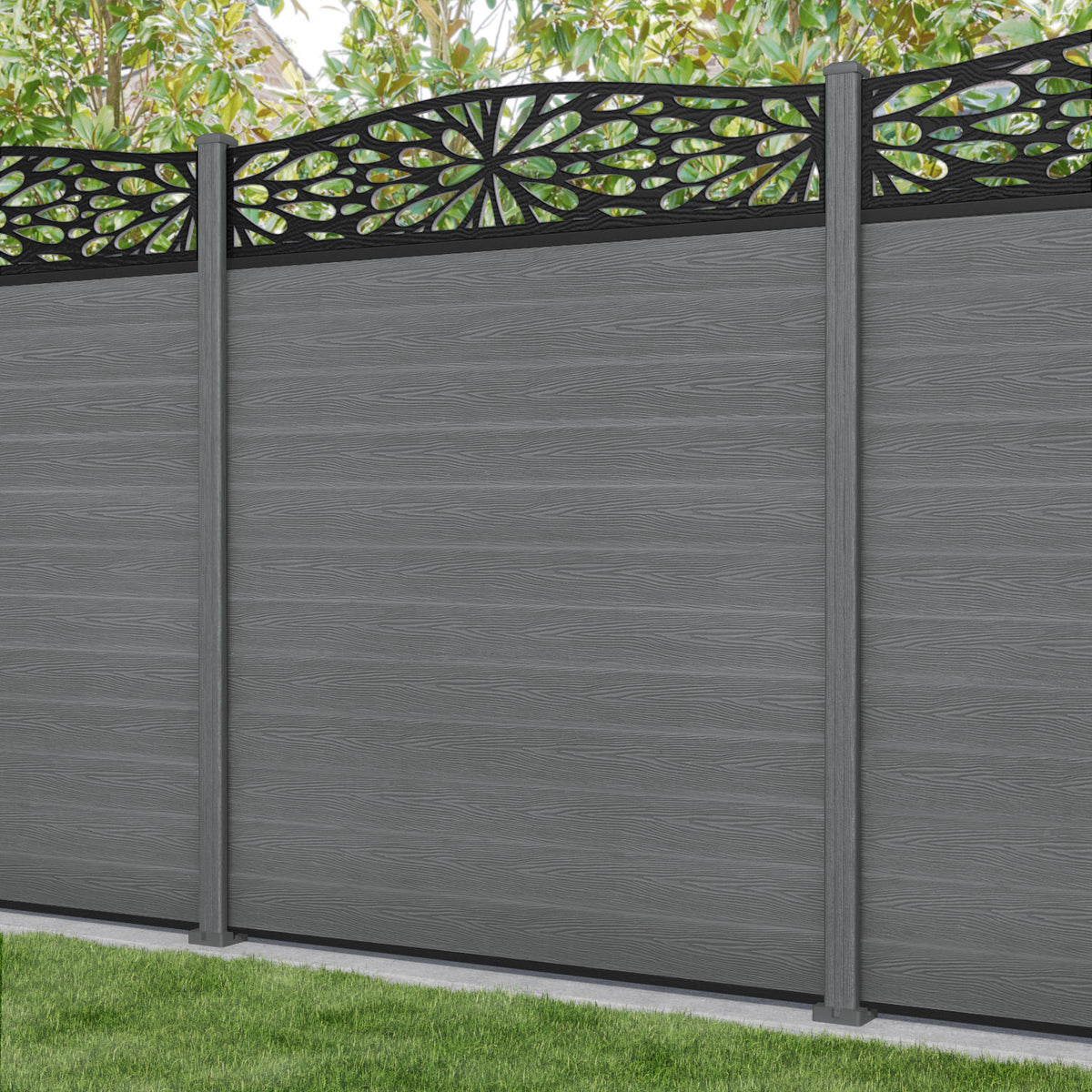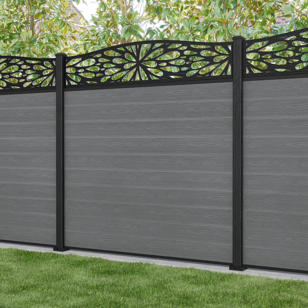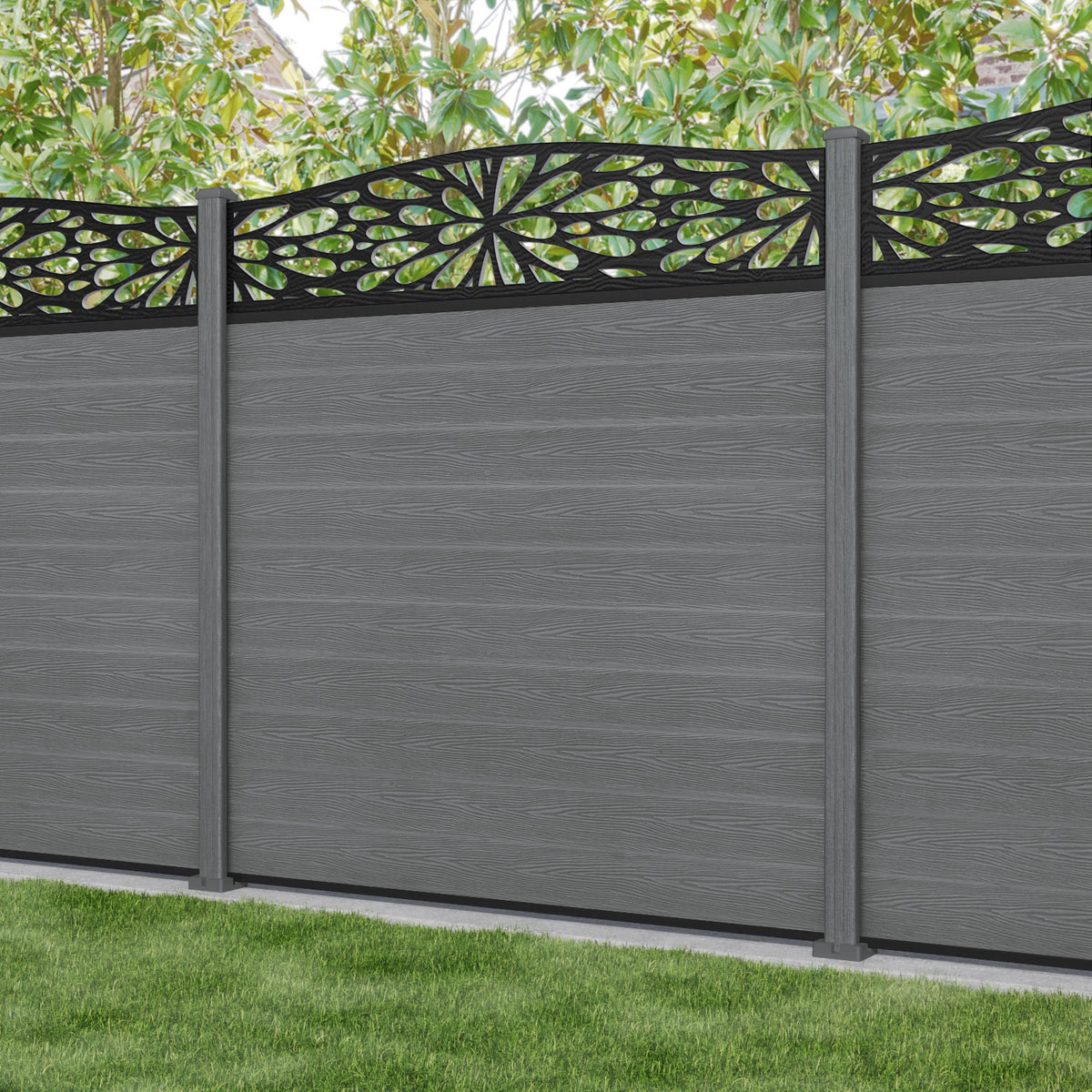 Classic Blossom Curved Top Fence Panel Mid Grey - with our composite posts