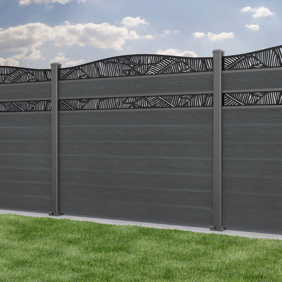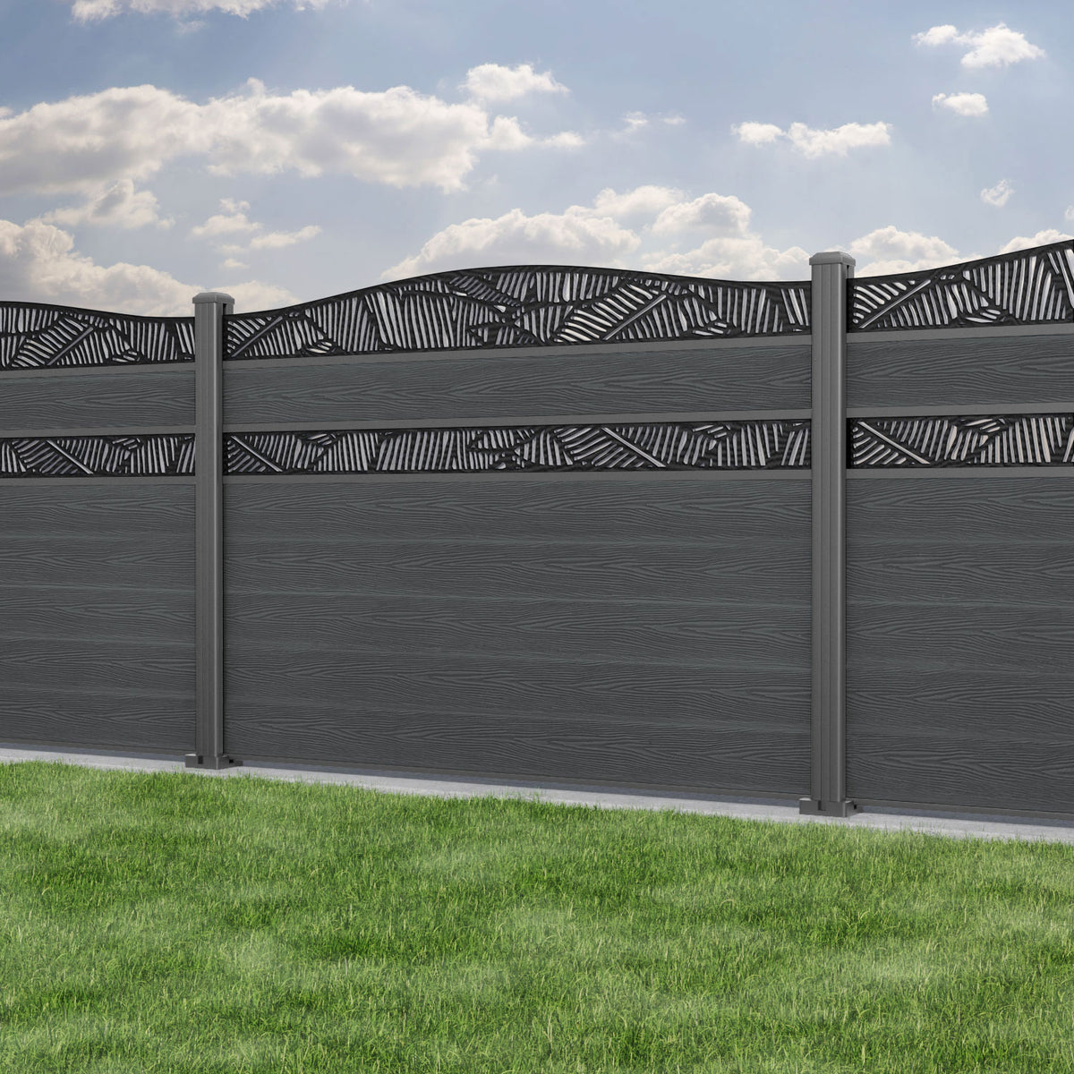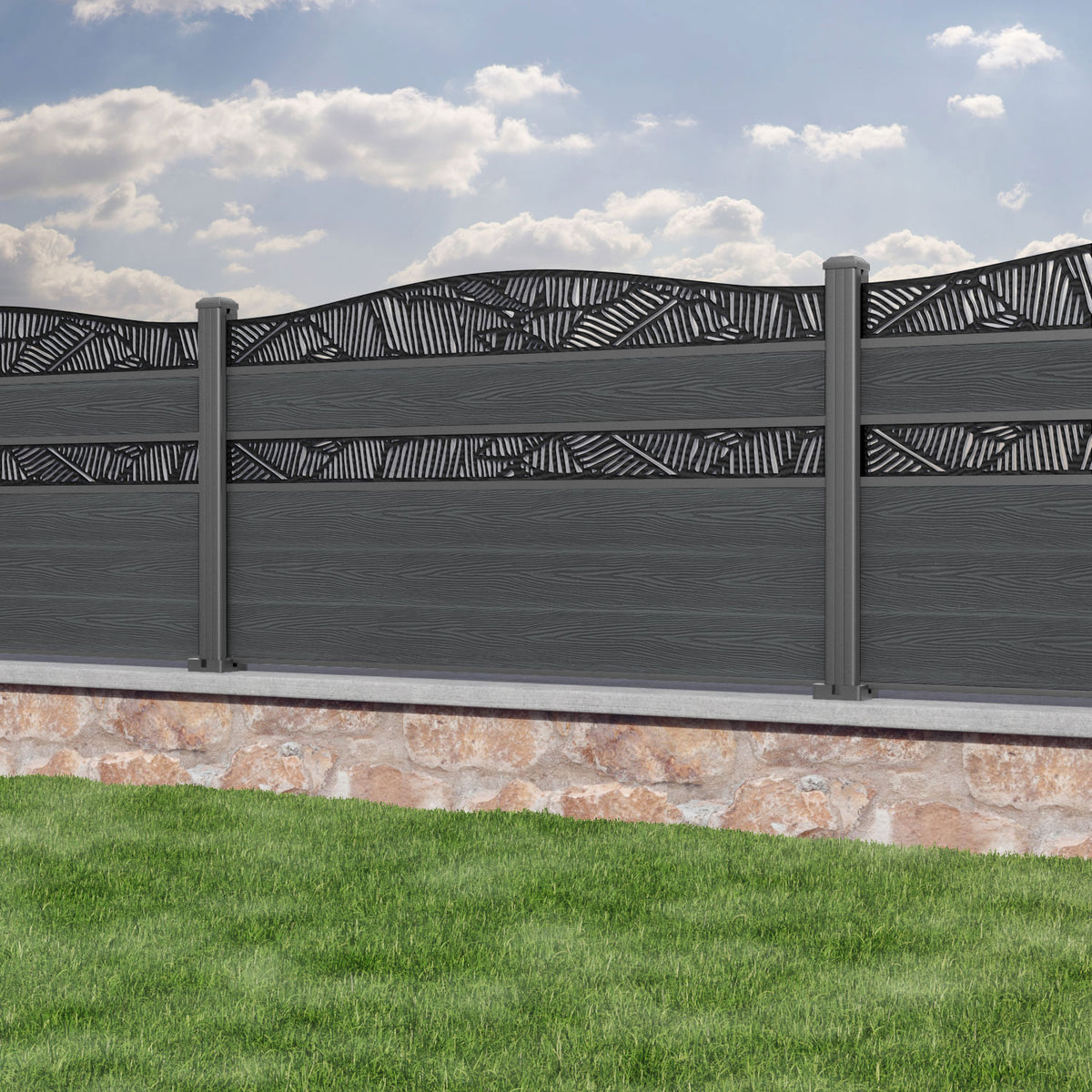 Classic Feather Curved Top Split Screen Fence Panel Dark Grey - with our aluminium posts