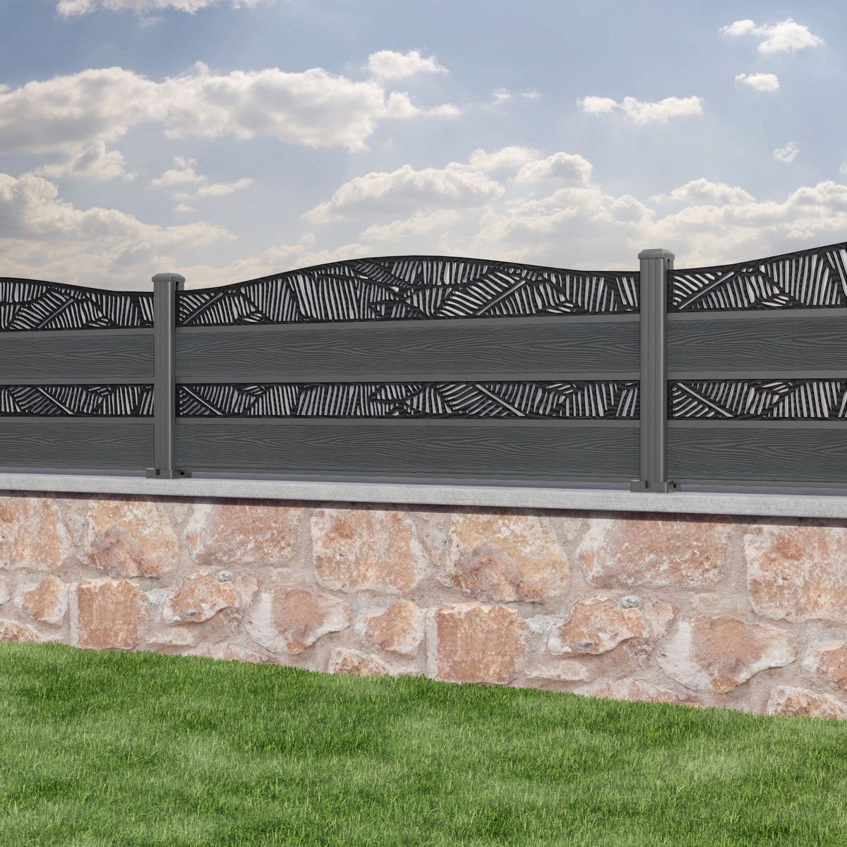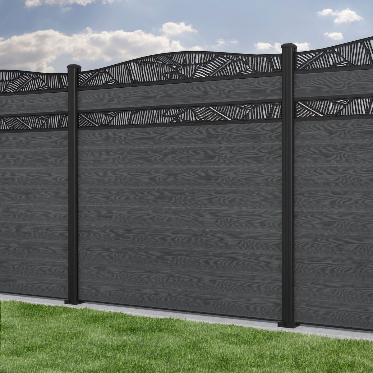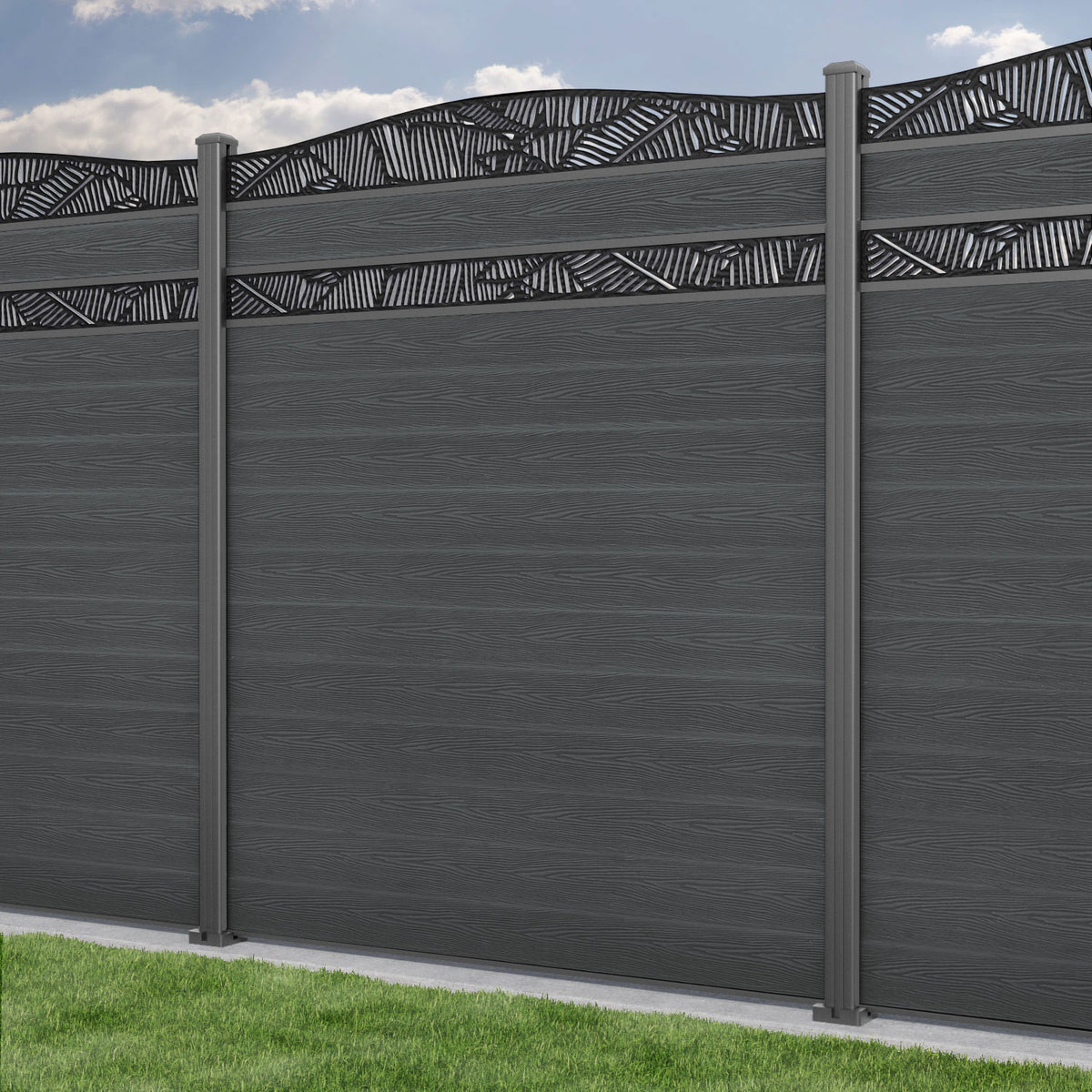 Classic Feather Curved Top Split Screen Fence Panel Dark Grey - with our aluminium posts