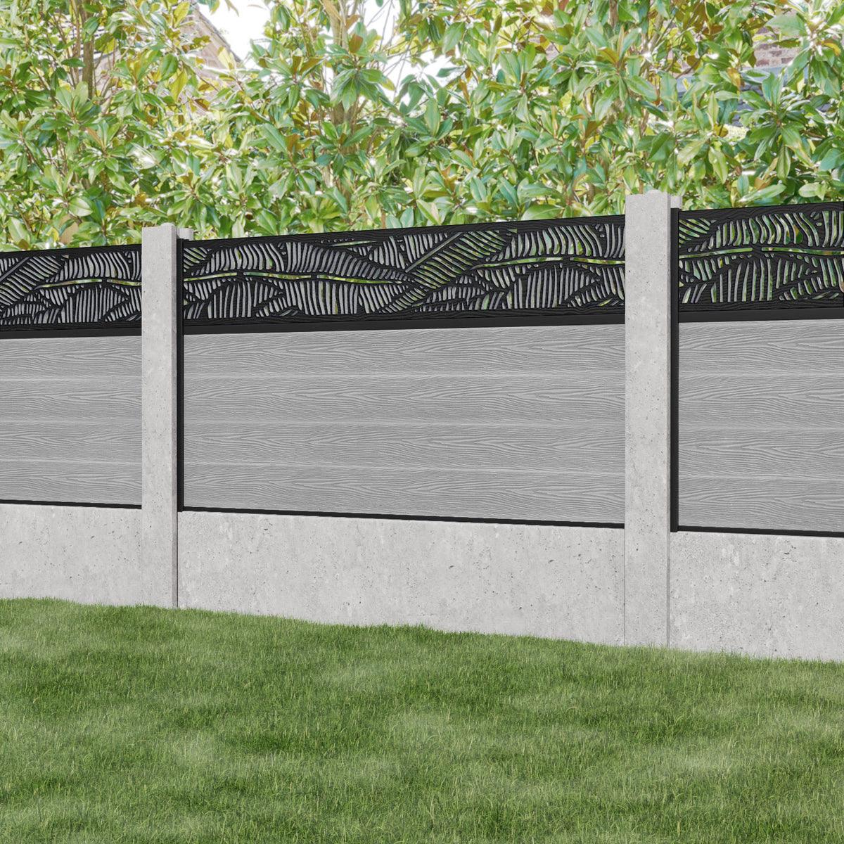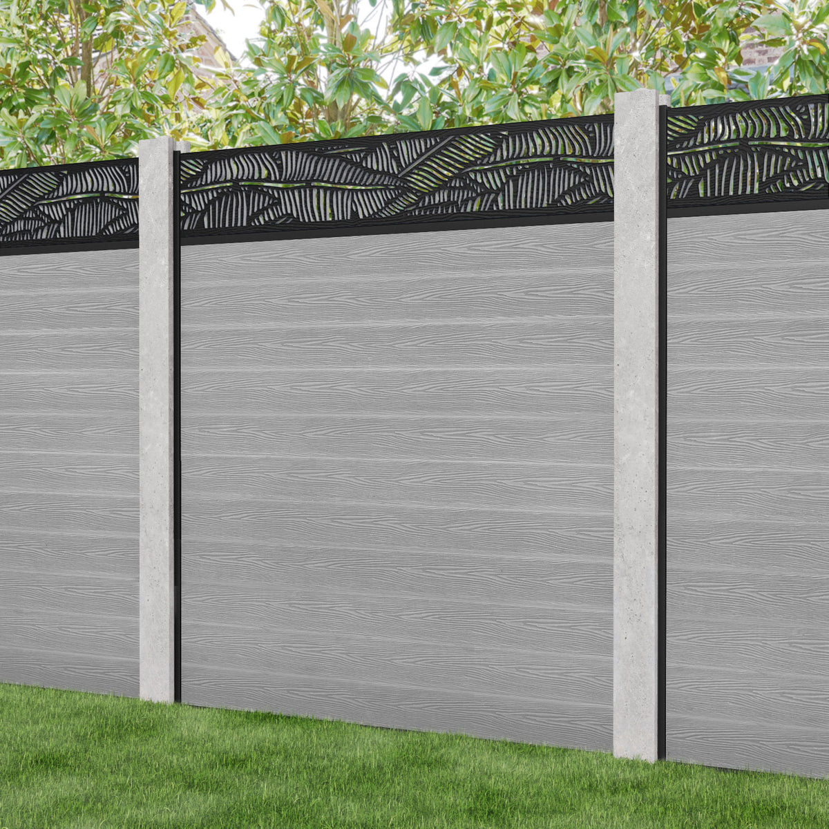 Our Feather premium composite fence screens, 18mm thick light grey fence slats and high-grade composite channels are the perfect choice if you have existing concrete posts. Create an elegant, versatile, and eco-friendly fencing solution. Not only is this fencing responsibly sourced, it is also durable, long-lasting and requires no maintenance or painting.