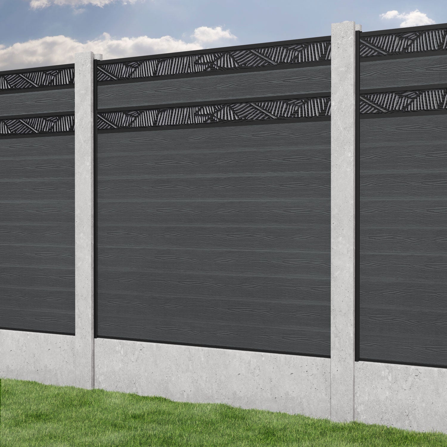 Classic Feather Split Screen Fence Panel Dark Grey - for existing concrete posts