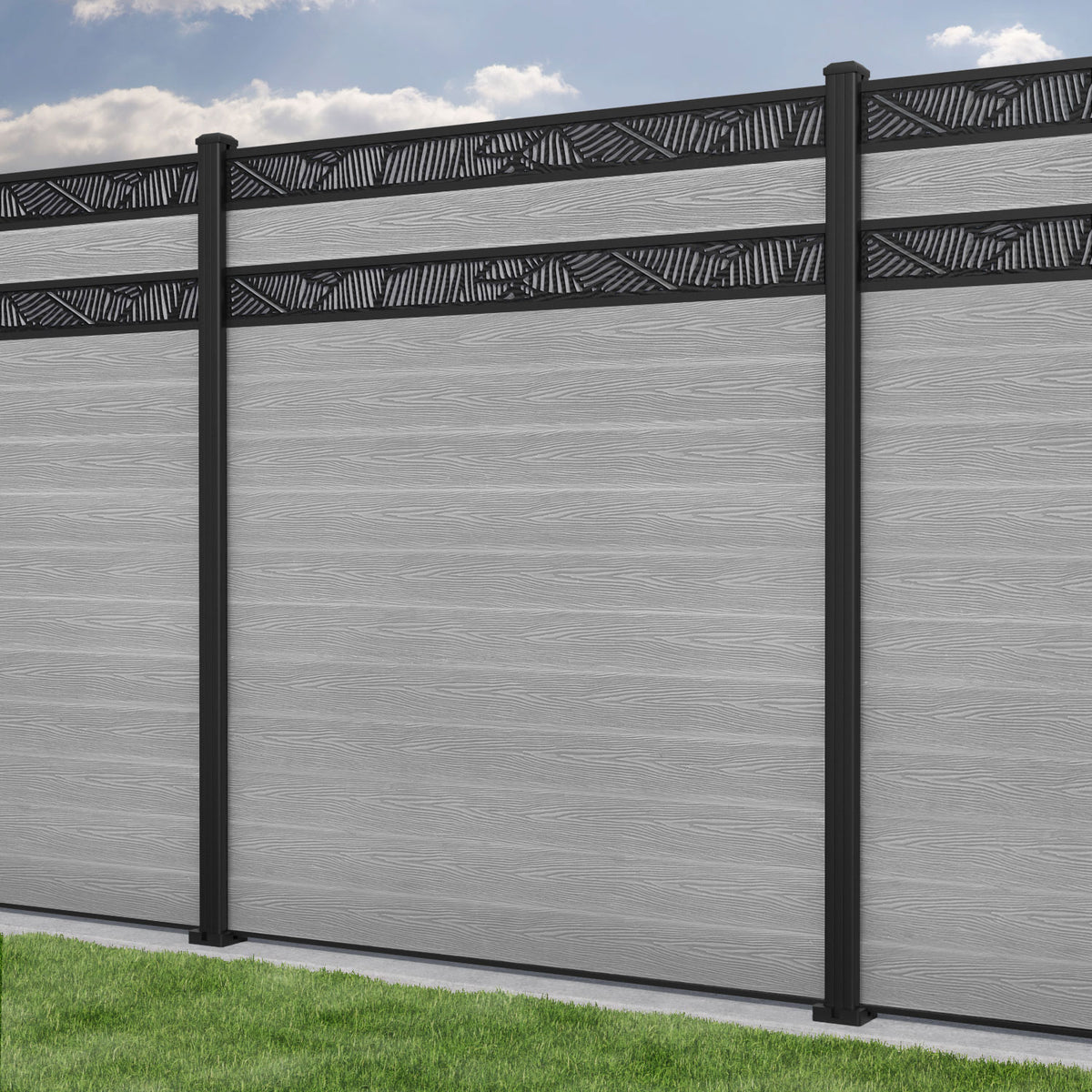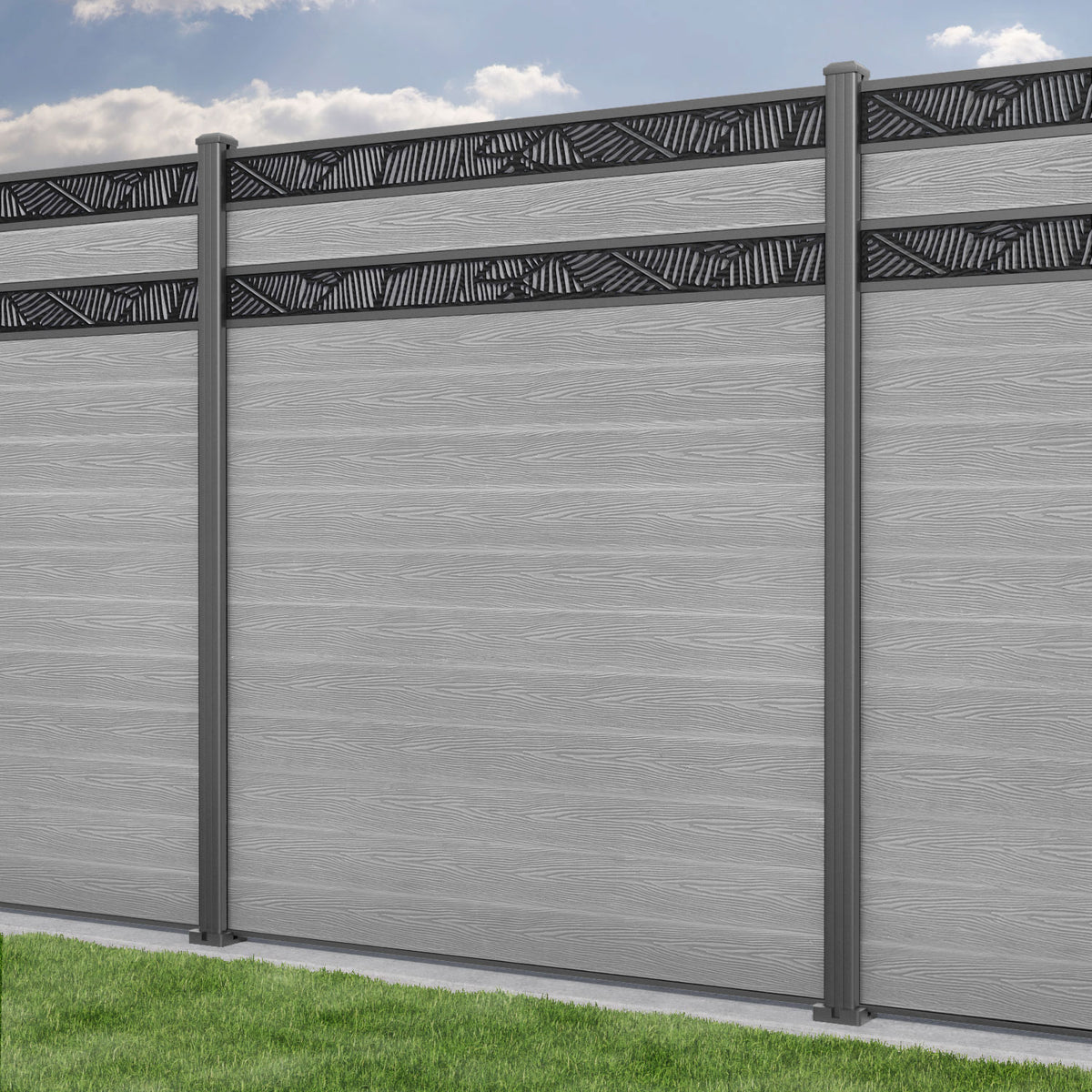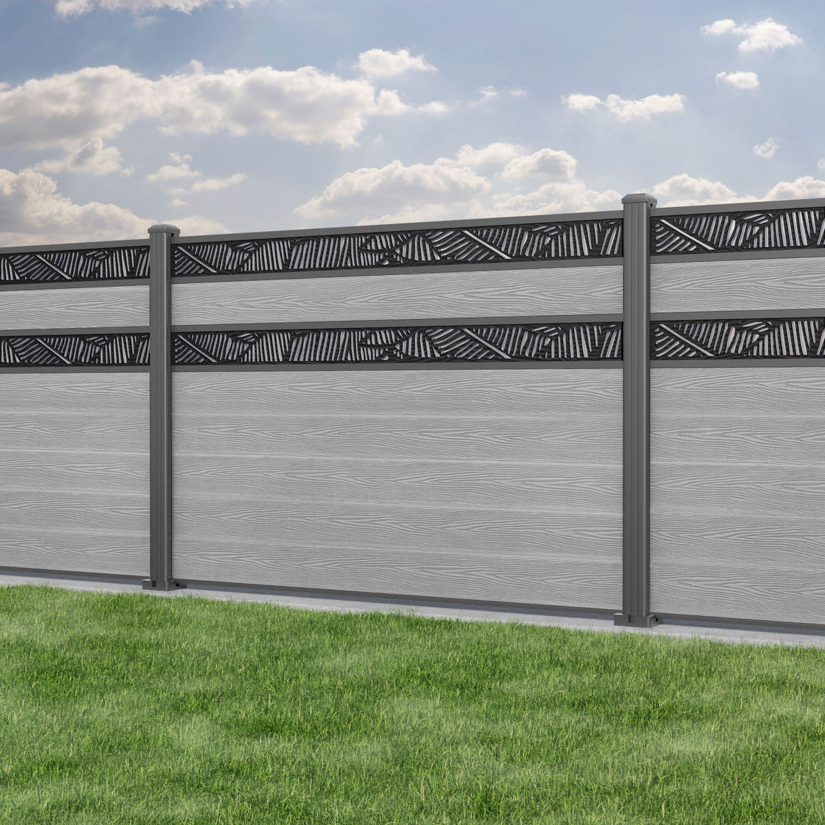 Classic Feather Split Screen Fence Panel Light Grey - with our aluminium posts