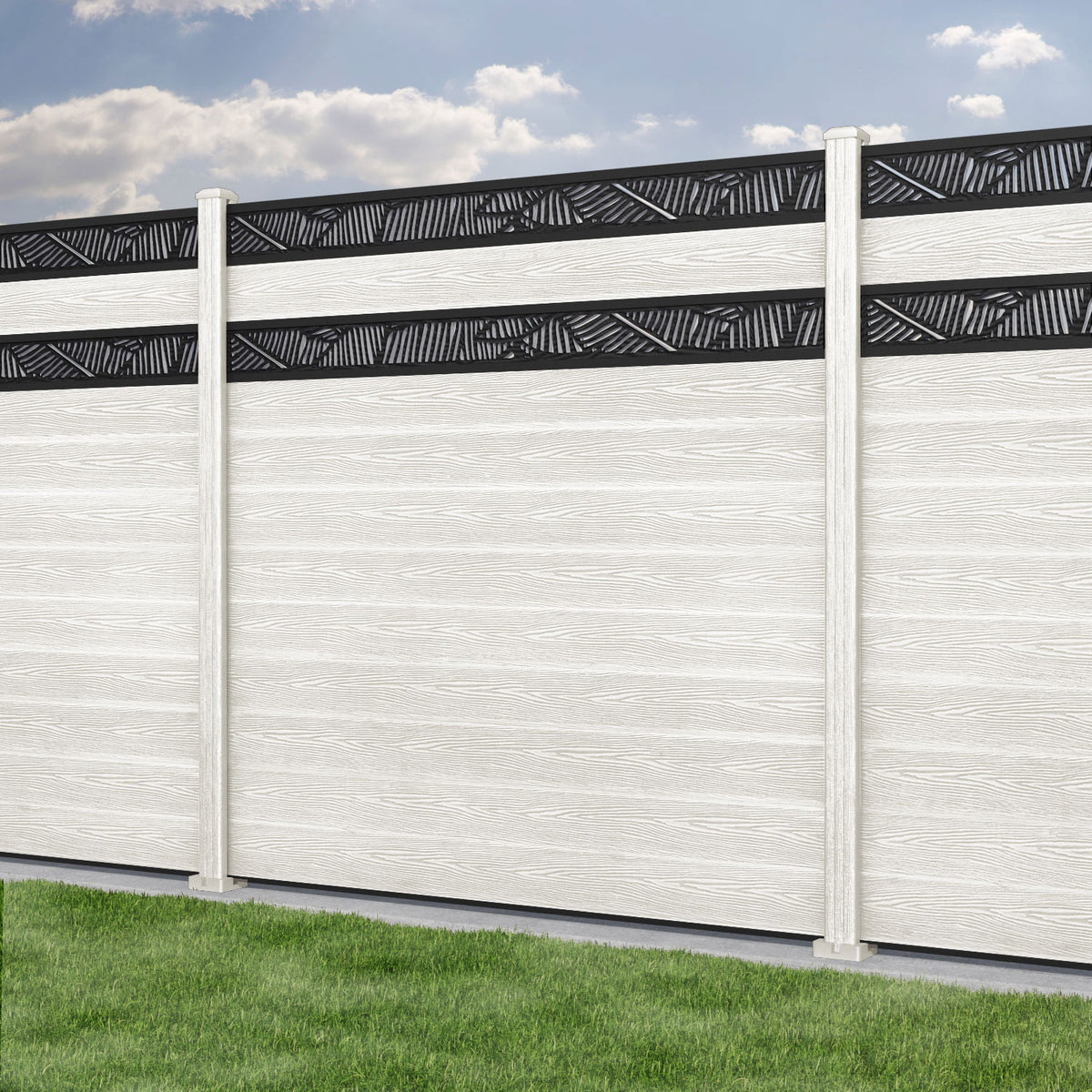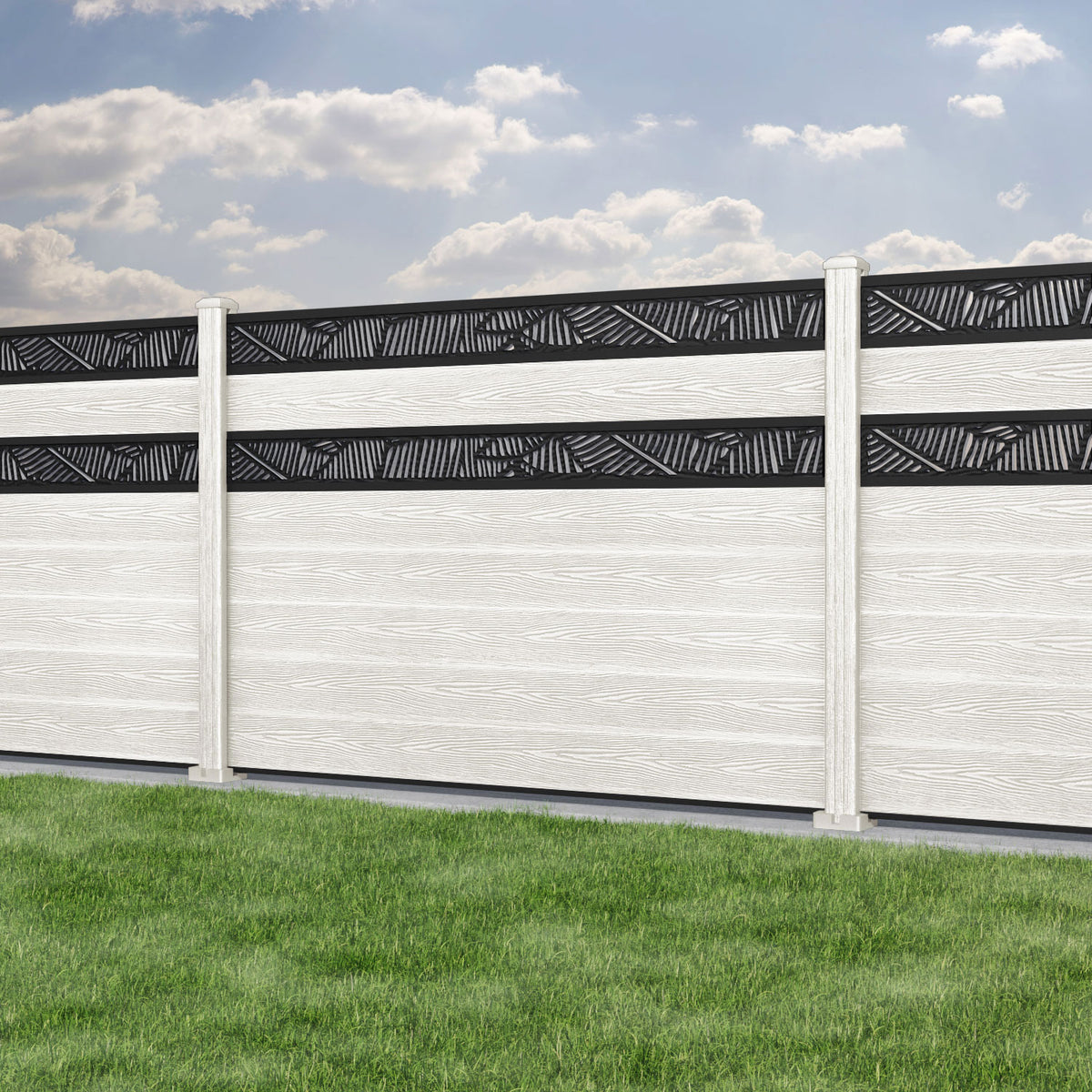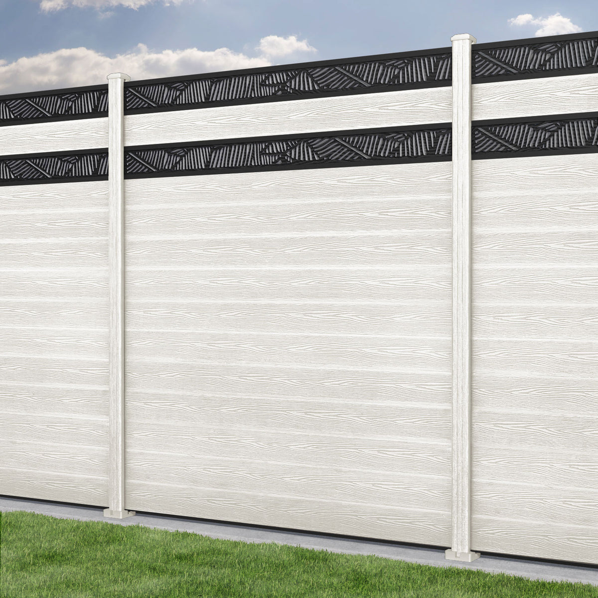 Classic Feather Split Screen Fence Panel Light Stone - with our composite posts