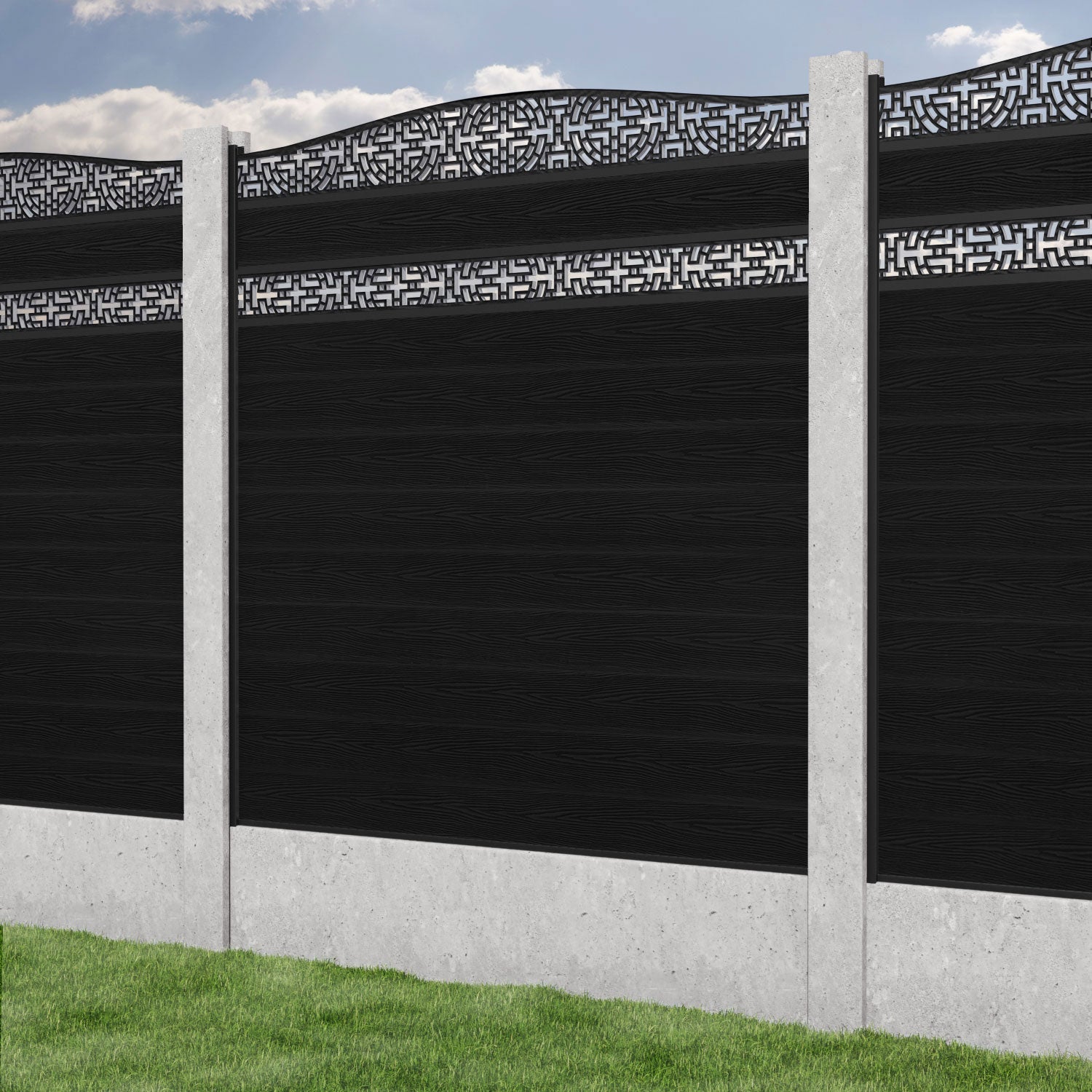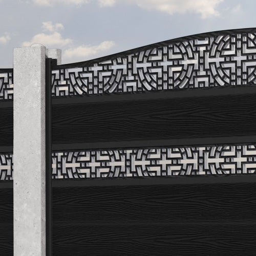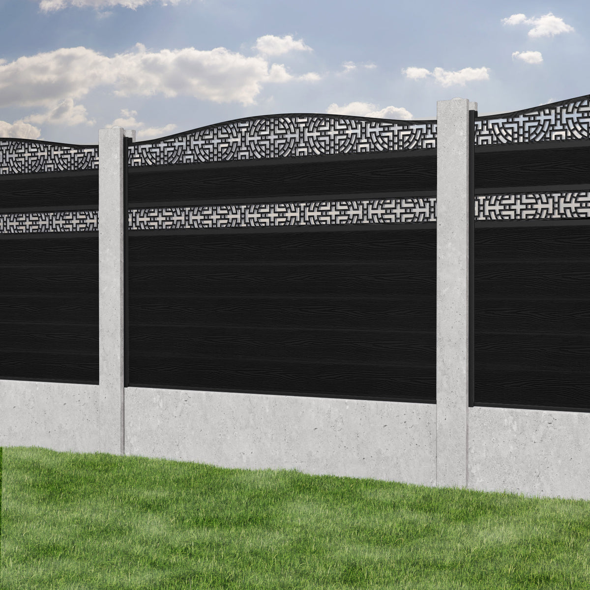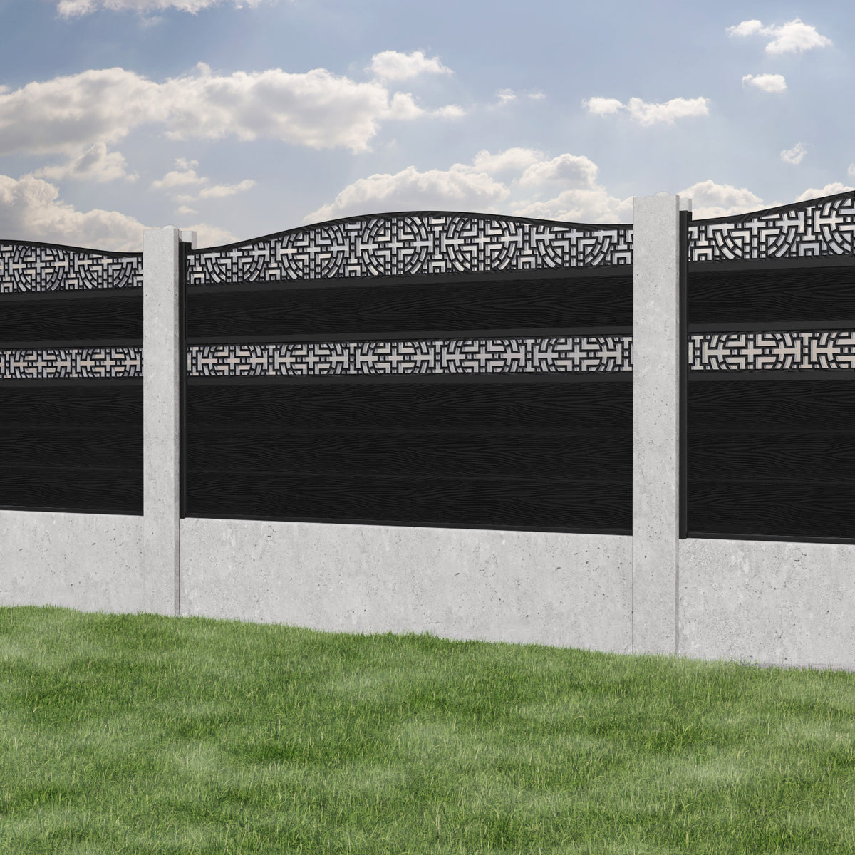 Classic Kumo Curved Top Split Screen Fence Panel Black - for existing concrete posts
